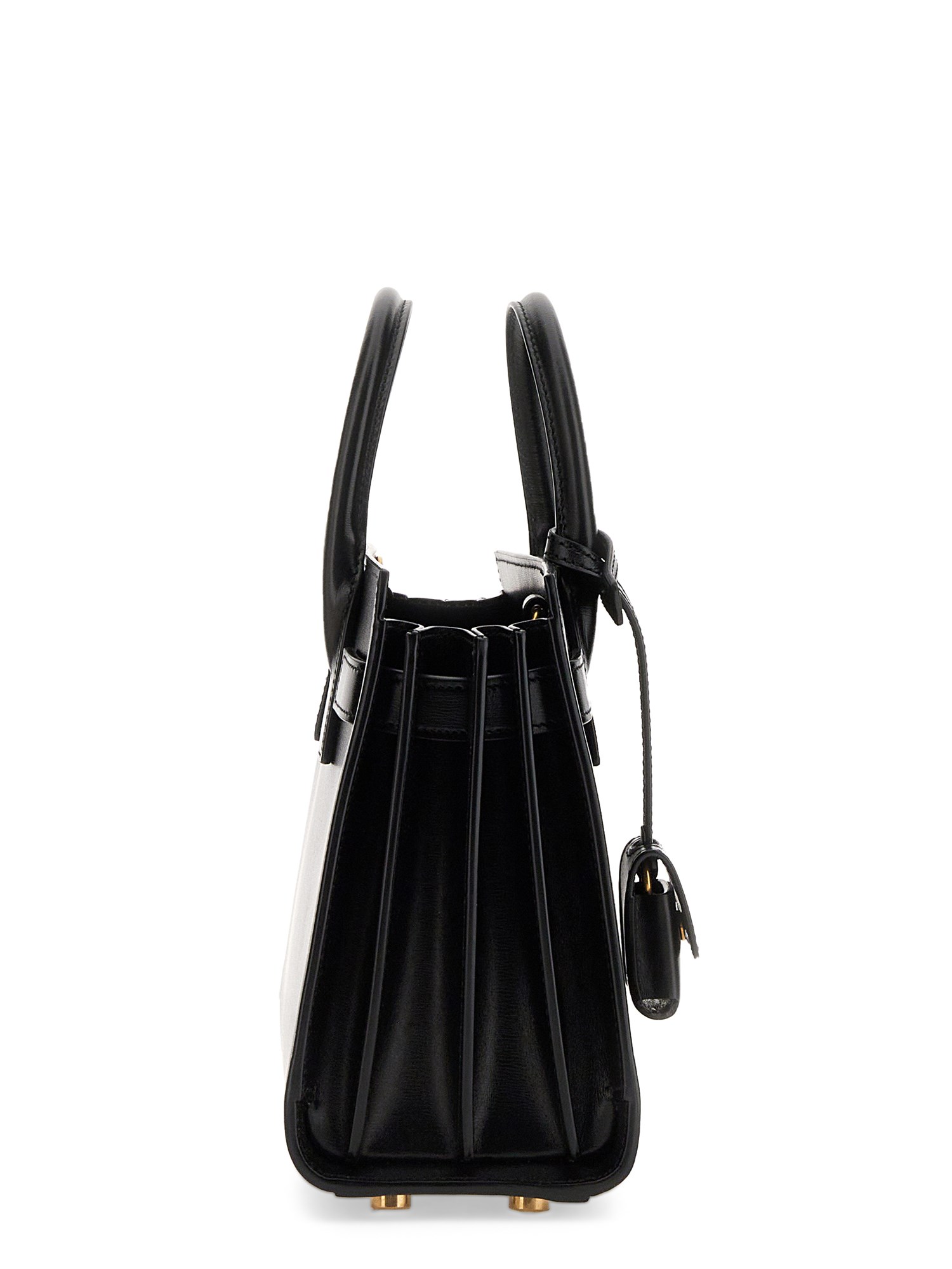 Introducing the Nano Sac de Jour Bag, a compact and leather-lined marvel. Its defining features include accordion sides, snap tabs, and a stylish brass padlock. The adjustable strap offers versatile shoulder or crossbody wear. This exquisite bag also comes with a leather lining, light bronze brass hardware, a detachable padlock in a leather case, and five sturdy metal feet.