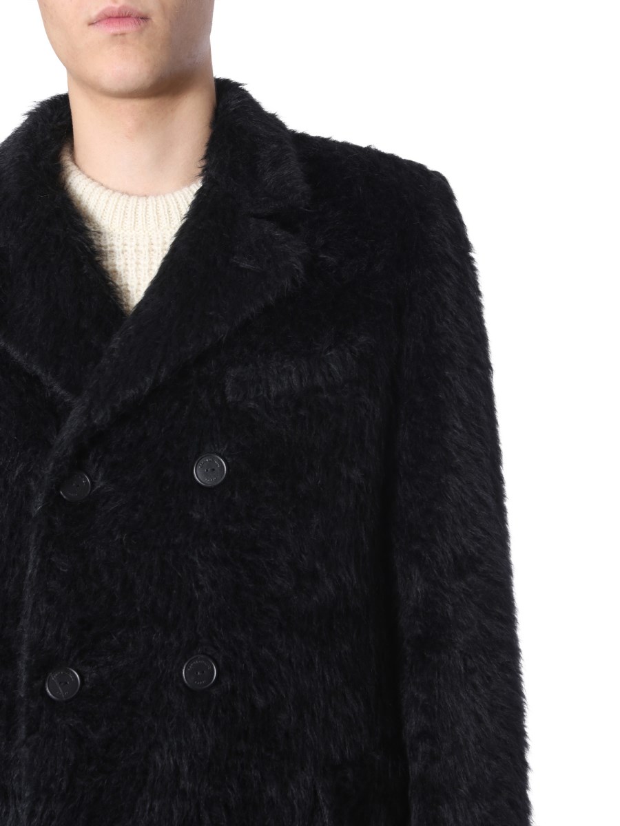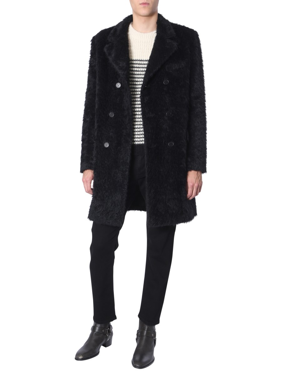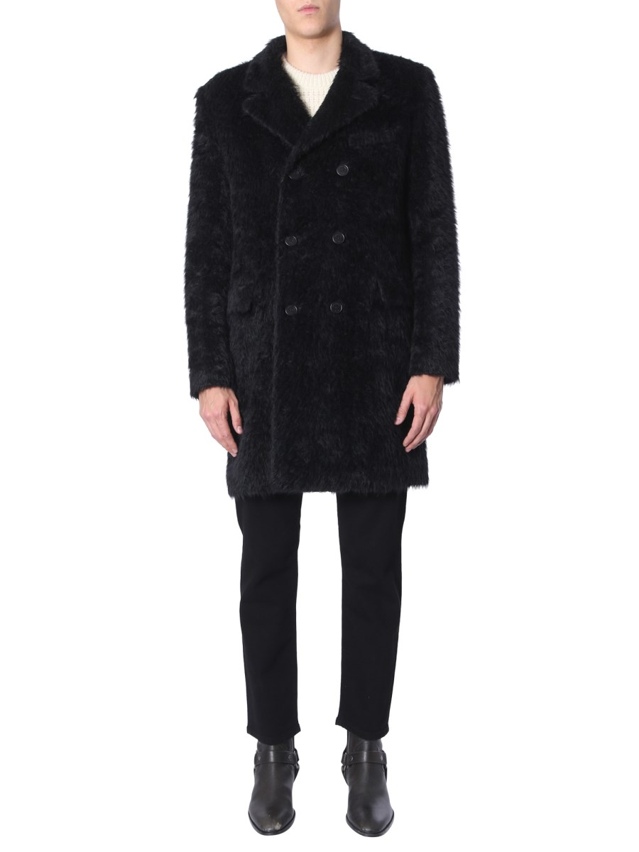 Keep yourself warm and cosy by wearing this double chest rive gauche coat from Saint Laurent. The coat is made from a blend of alpaca and virgin wool that ensures utmost comfort. It features a double chest button closure with multiple pockets to carry your phones and wallet easily. With a soft and smooth texture, the jacket is best for everyday use.