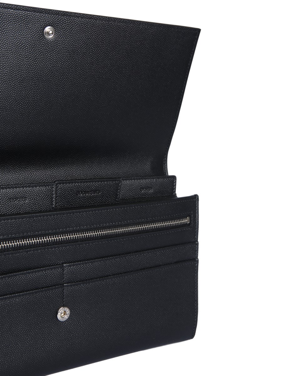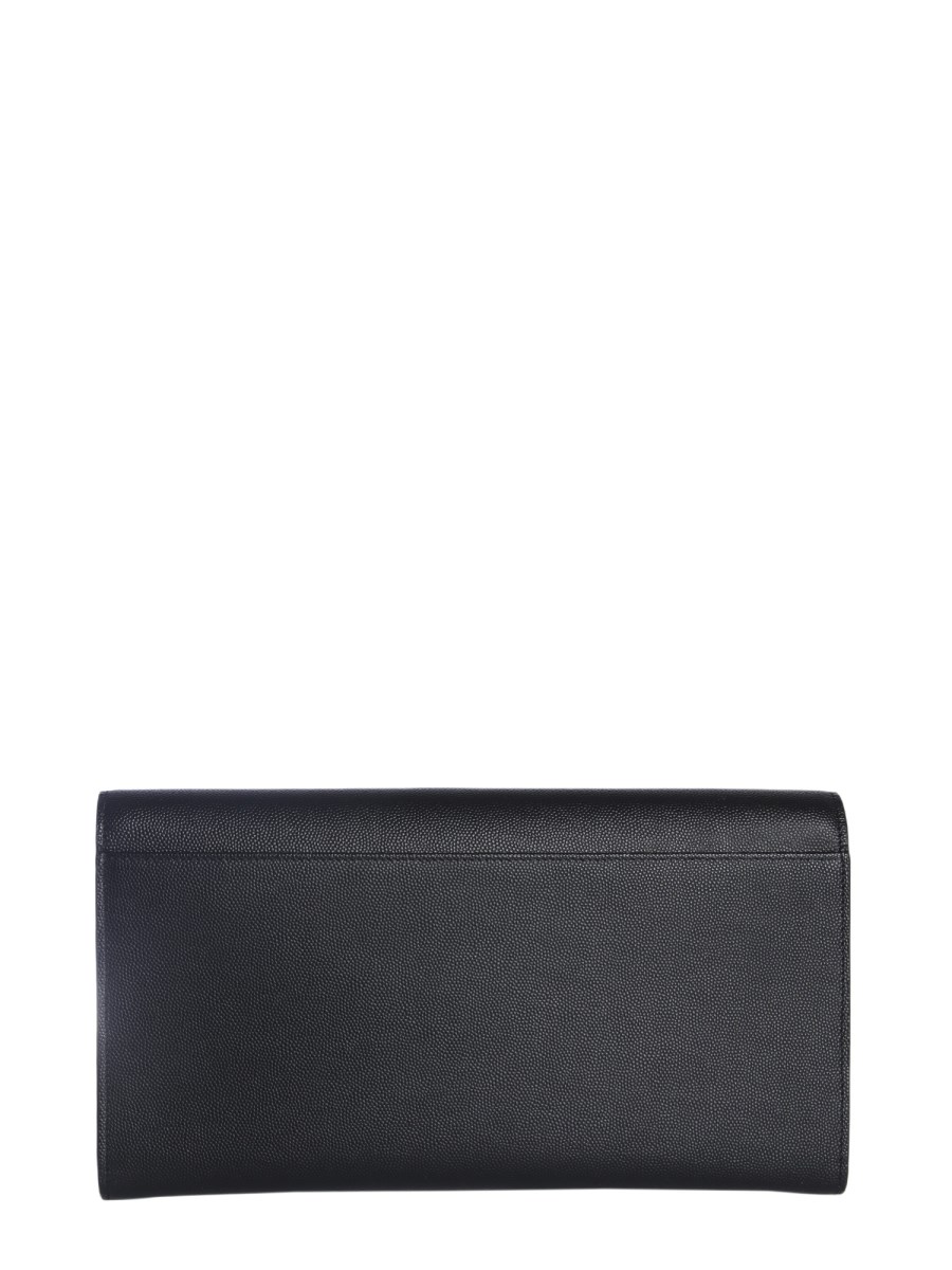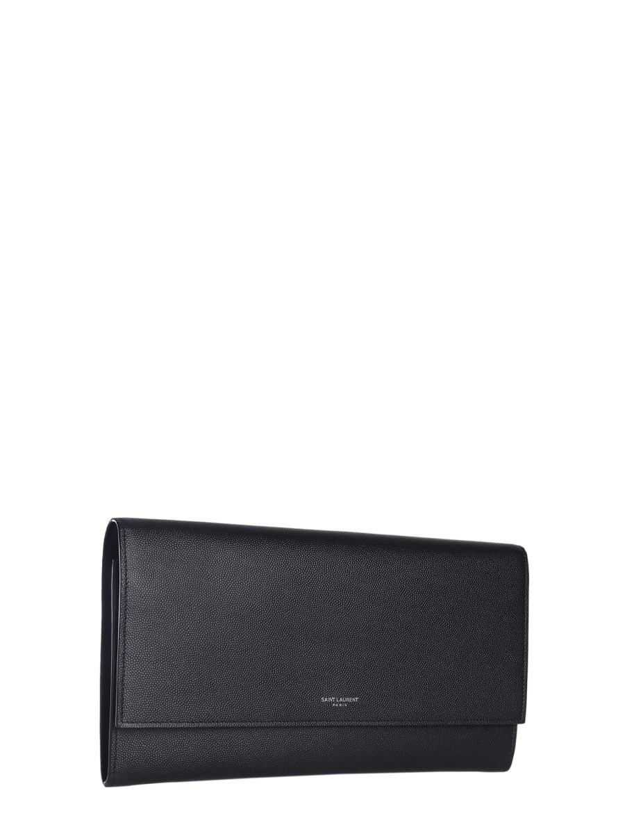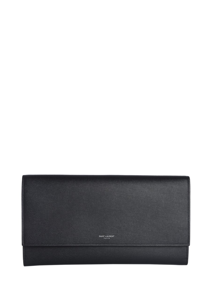 Organize your cards and money with ease by investing in the Saint Laurent briefcase travel bag. It comes with a flap and press button closing. The bag has four compartments for easy organization, ten slots to hold your credit or debit cards, and another pocket. Made with 100% calf leather, the bag is both durable and stylish.