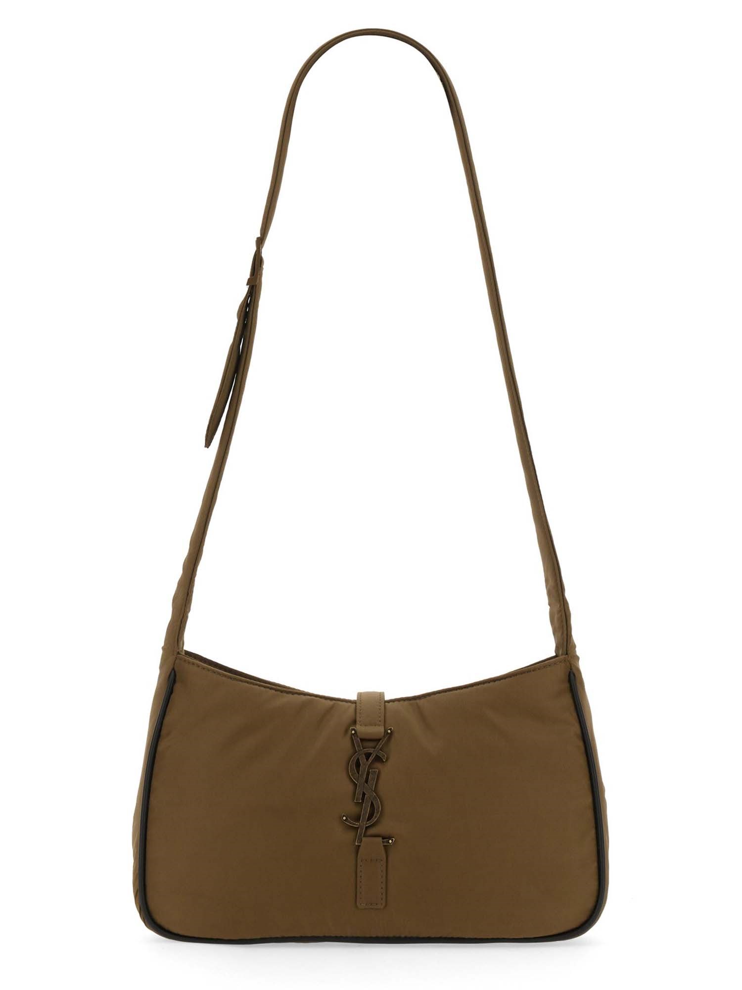 This nylon shoulder bag from Saint Laurent is made of a durable nylon fabric with a hook closure, a nylon lining, and a polyamide shoulder strap. It is a lightweight and stylish option for carrying your belongings to work or school. The bag features a polyamide shoulder strap and a hook closure that can be adjusted to fit the desired length.
