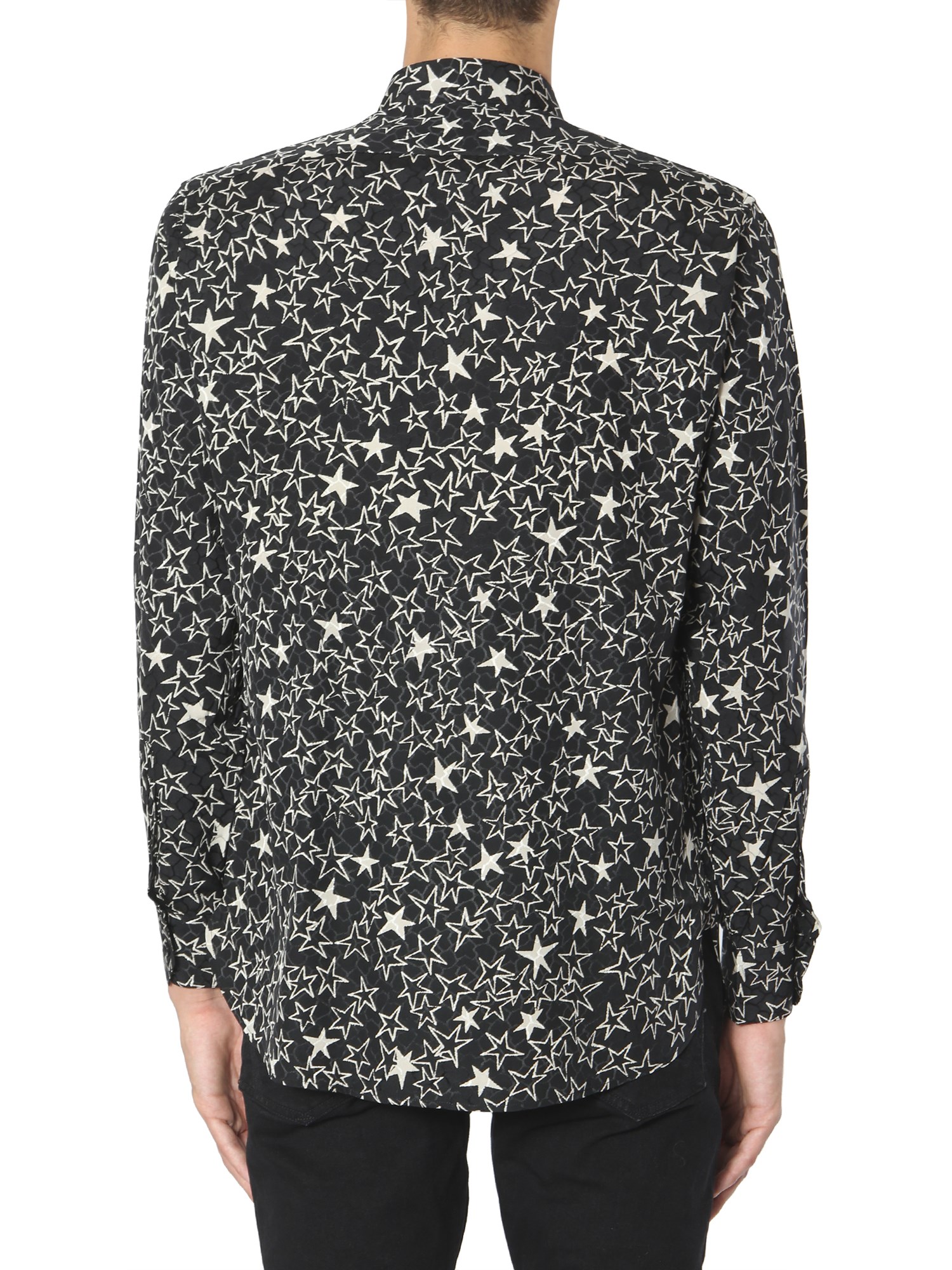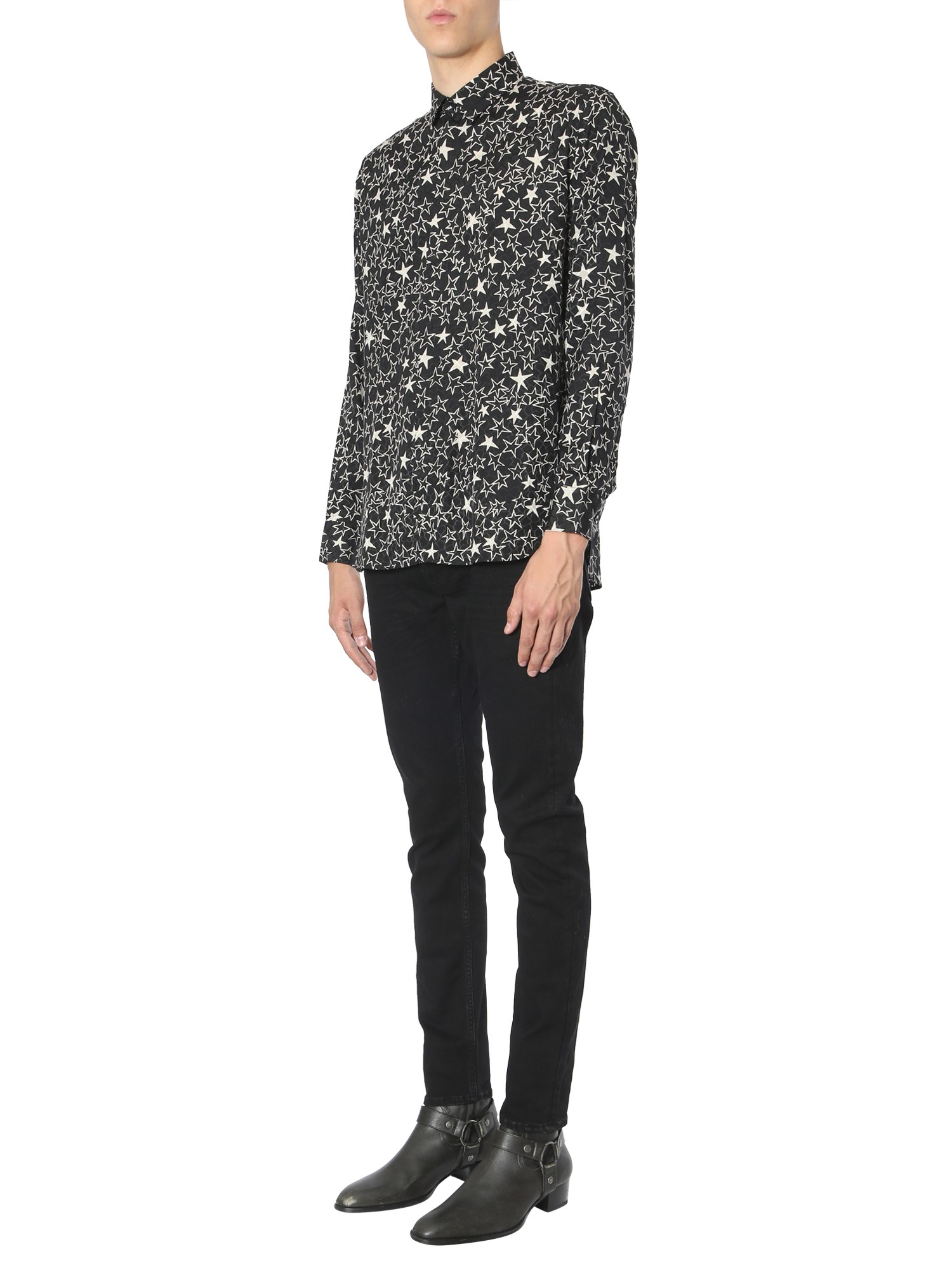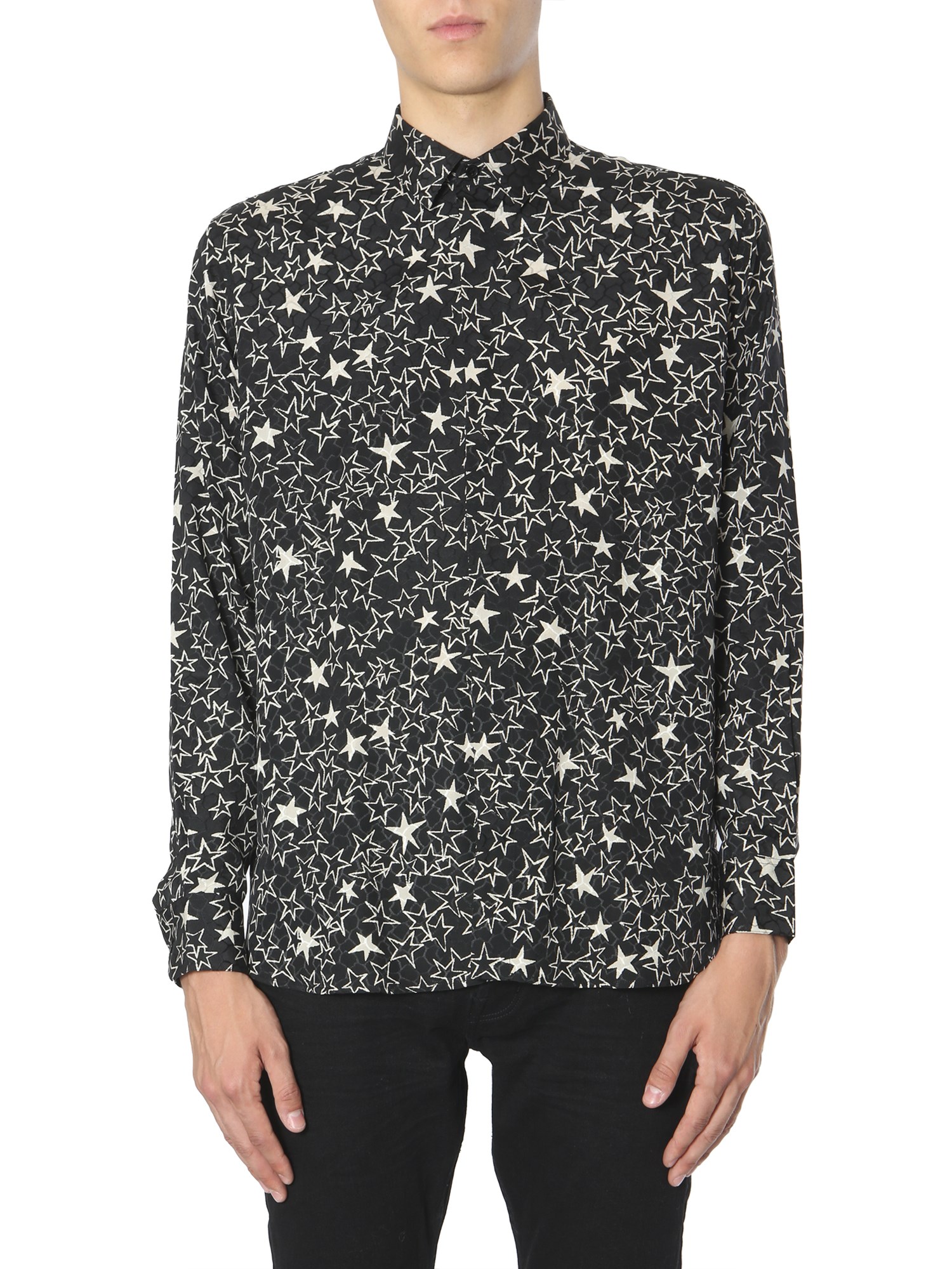 Add variety to your wardrobe with this Yves collar shirt from the house of Saint Laurent. The shirt has a starry print all over on the surface that perfectly complements its bold colour scheme. Made from fine quality silk, this shirt is soft and comfortable. You can pair it with black jeans and sneakers for a trendy look.
