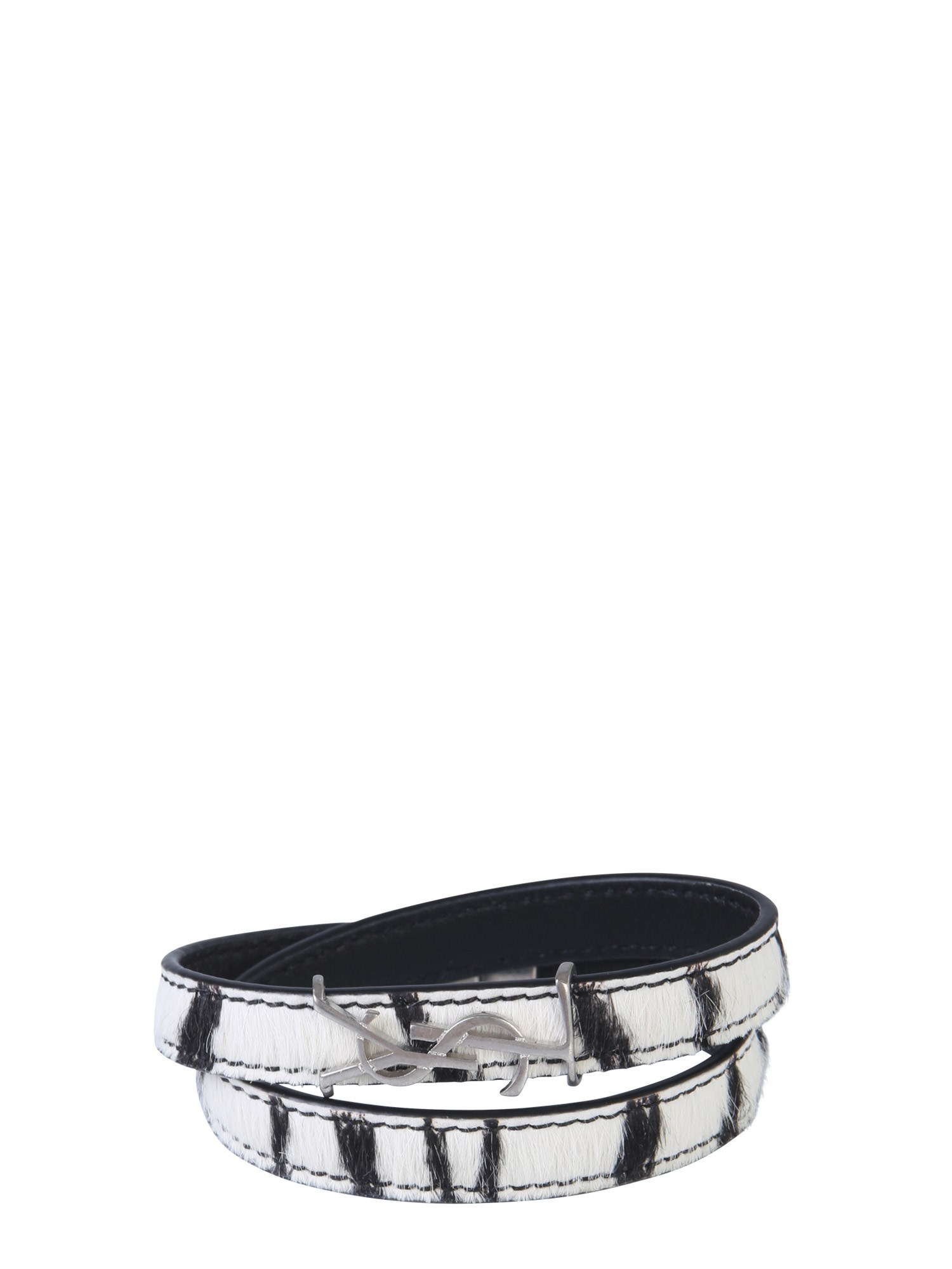 OPYUM LEATHER BRACELET WITH DOUBLE TURN LOCK IN ZEBRA PONY EFFECT