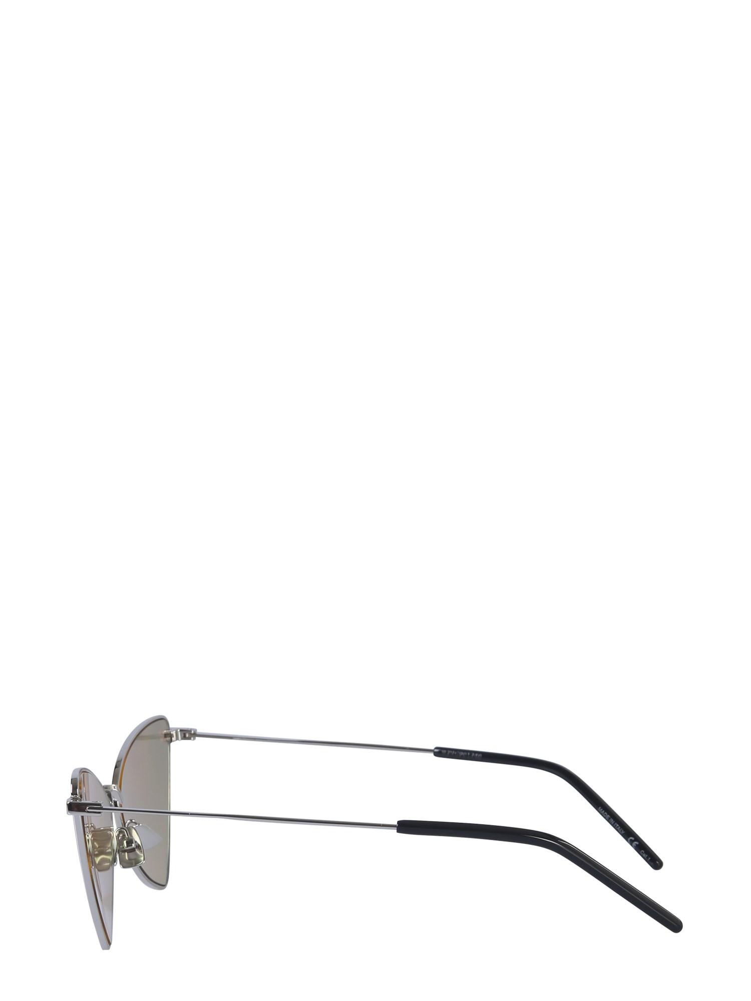Jazz up your casual look with these SL 303JER sunglasses from Saint Laurent. They are made of 100% metal that is sure to last for long. These triangle sunglasses will surely highlight your personality. The sunglasses are easy to clean and durable. The soft nose bridge sits comfortably.
