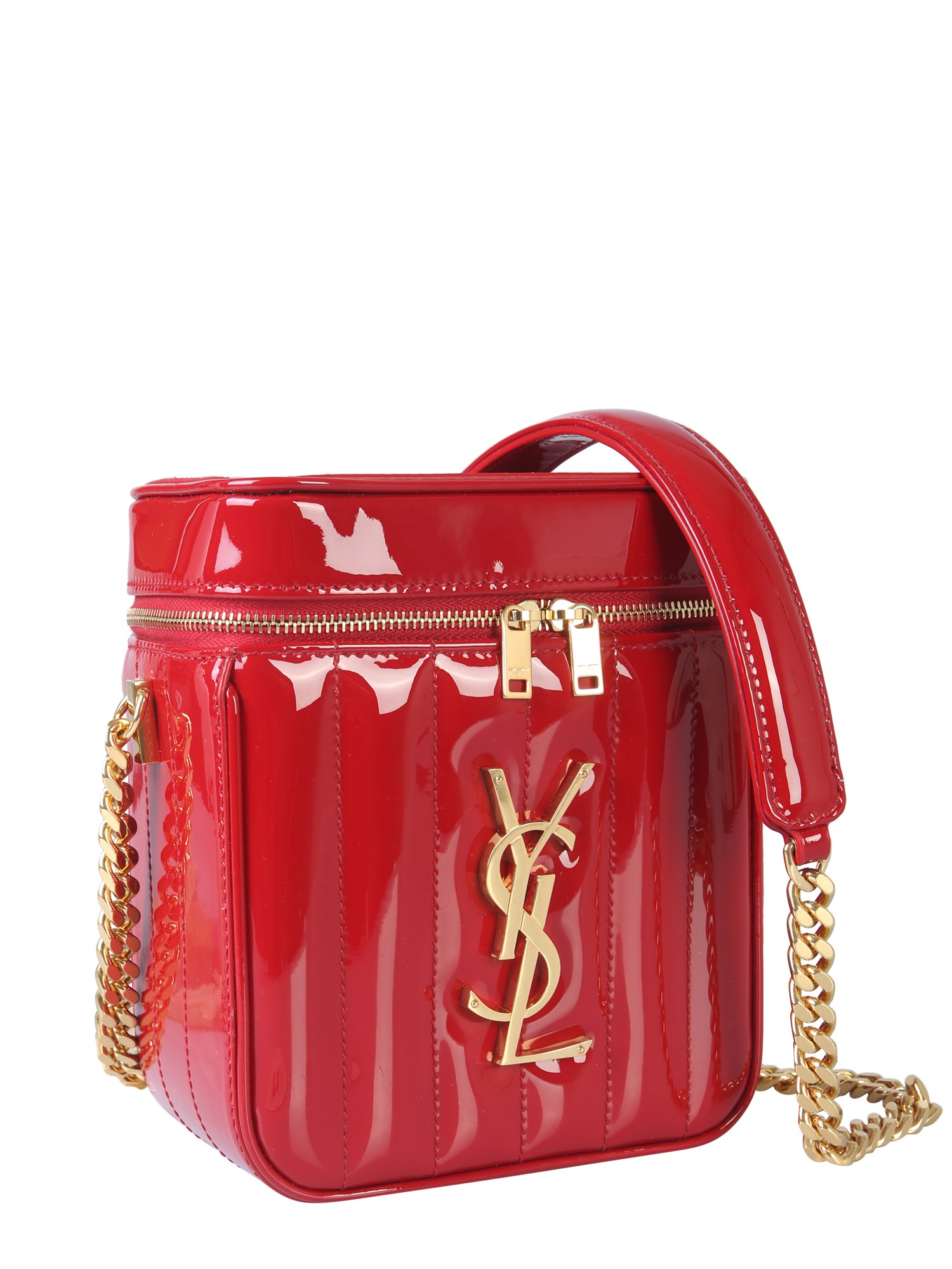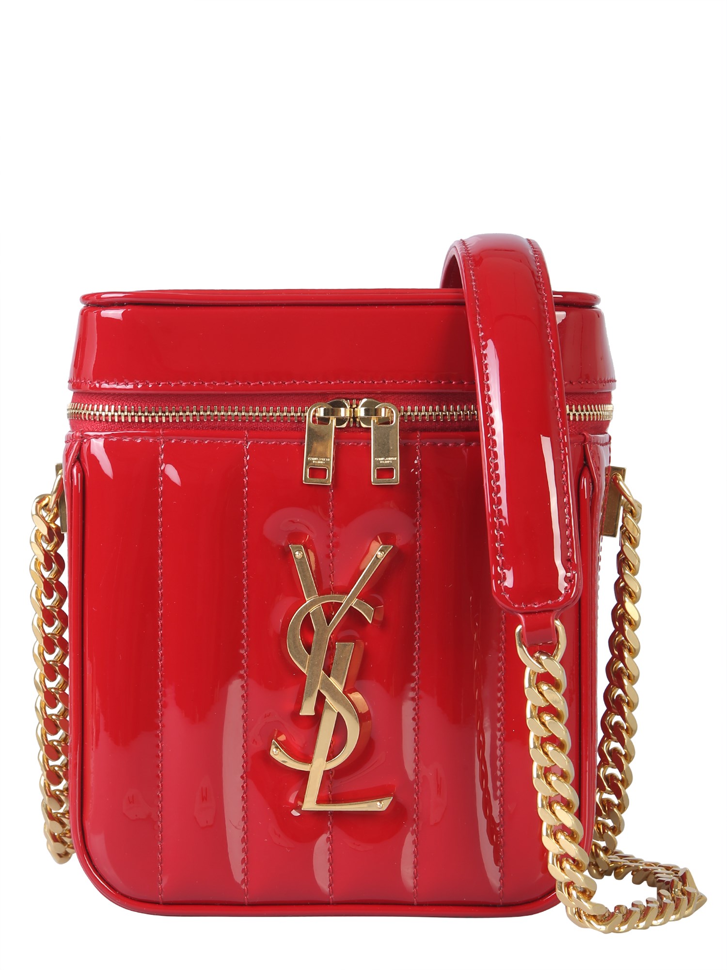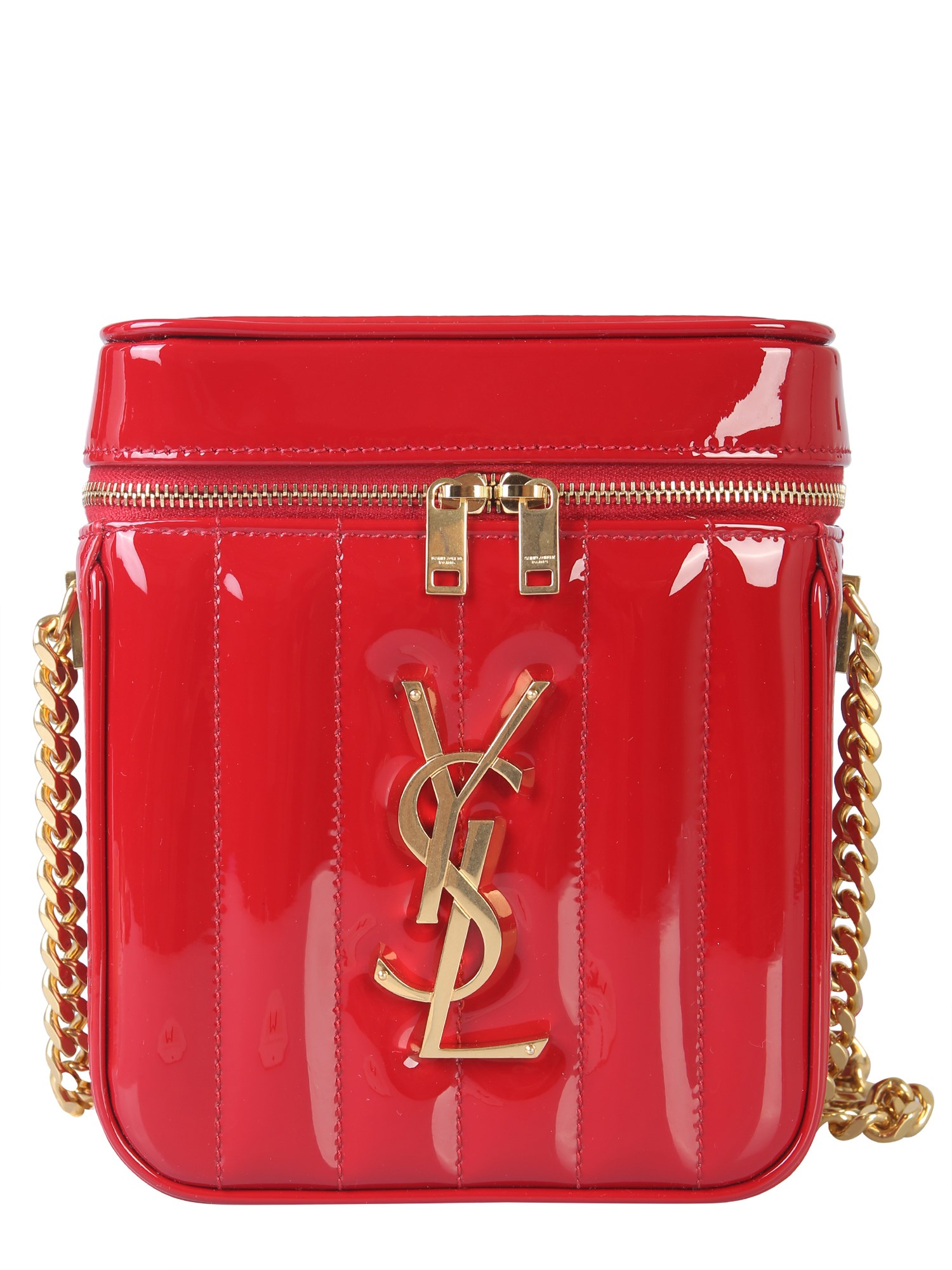Be a trendsetter when it comes to accessorising with this Vicky vanity bag from Saint Laurent. The front quilted pattern is accented with a shiny monogram logo for an attractive touch. The glossy finish at surface adds character to its design. It has a zip closure that opens up to a spacious interior to keep your essentials.