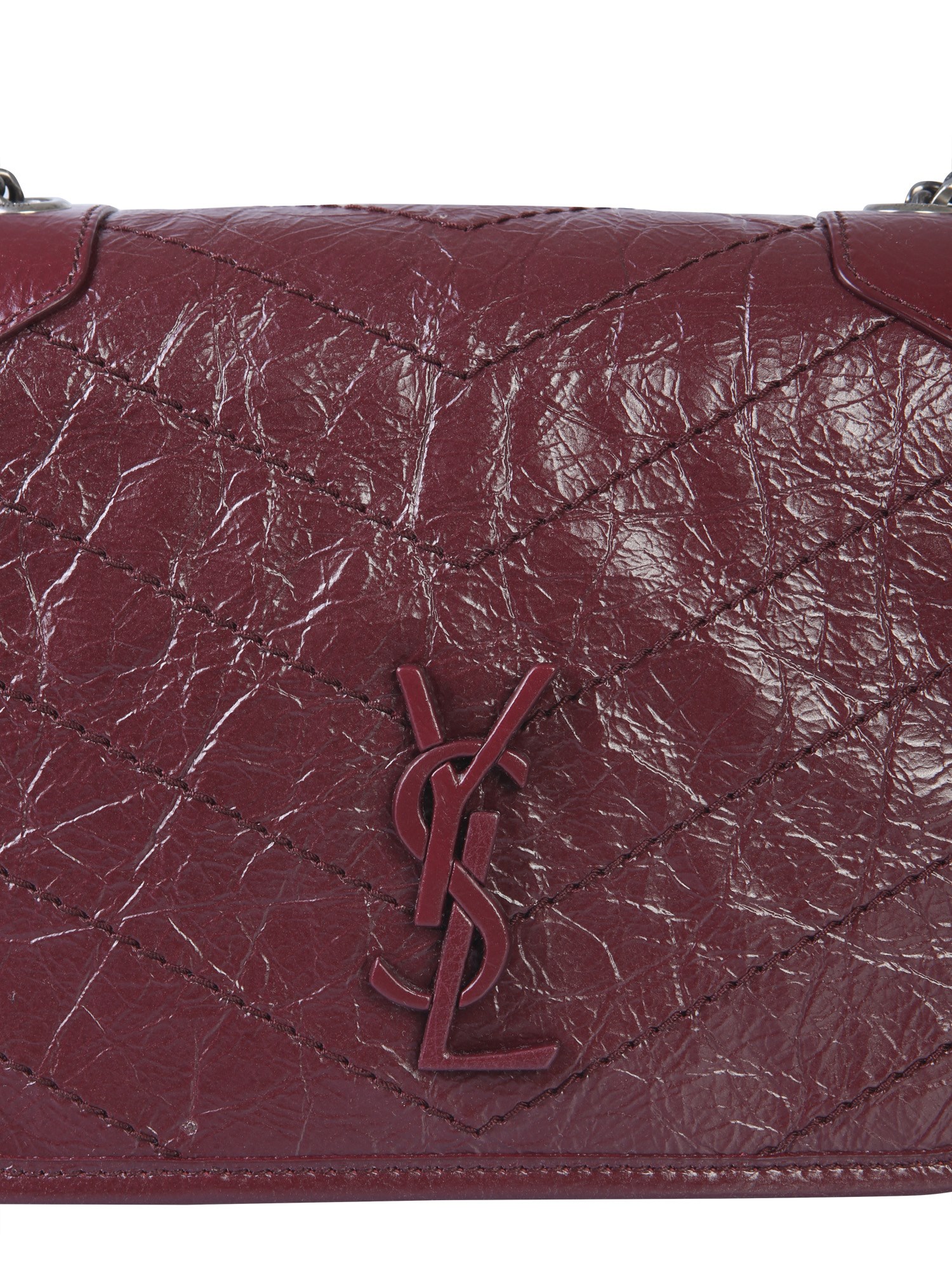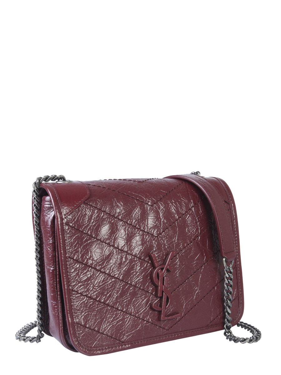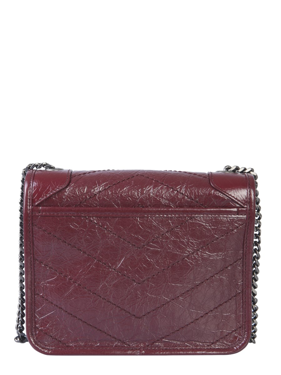 Carry your essentials without any compromise with style in the shoulder bag from Saint Laurent. This bag has a chain handle that makes it easy for you to carry it anywhere you go. The bag has four pockets inside for proper organization of stuff. The magnetic closure ensures safety. This bag is made of pure calf leather for wear-resistance.