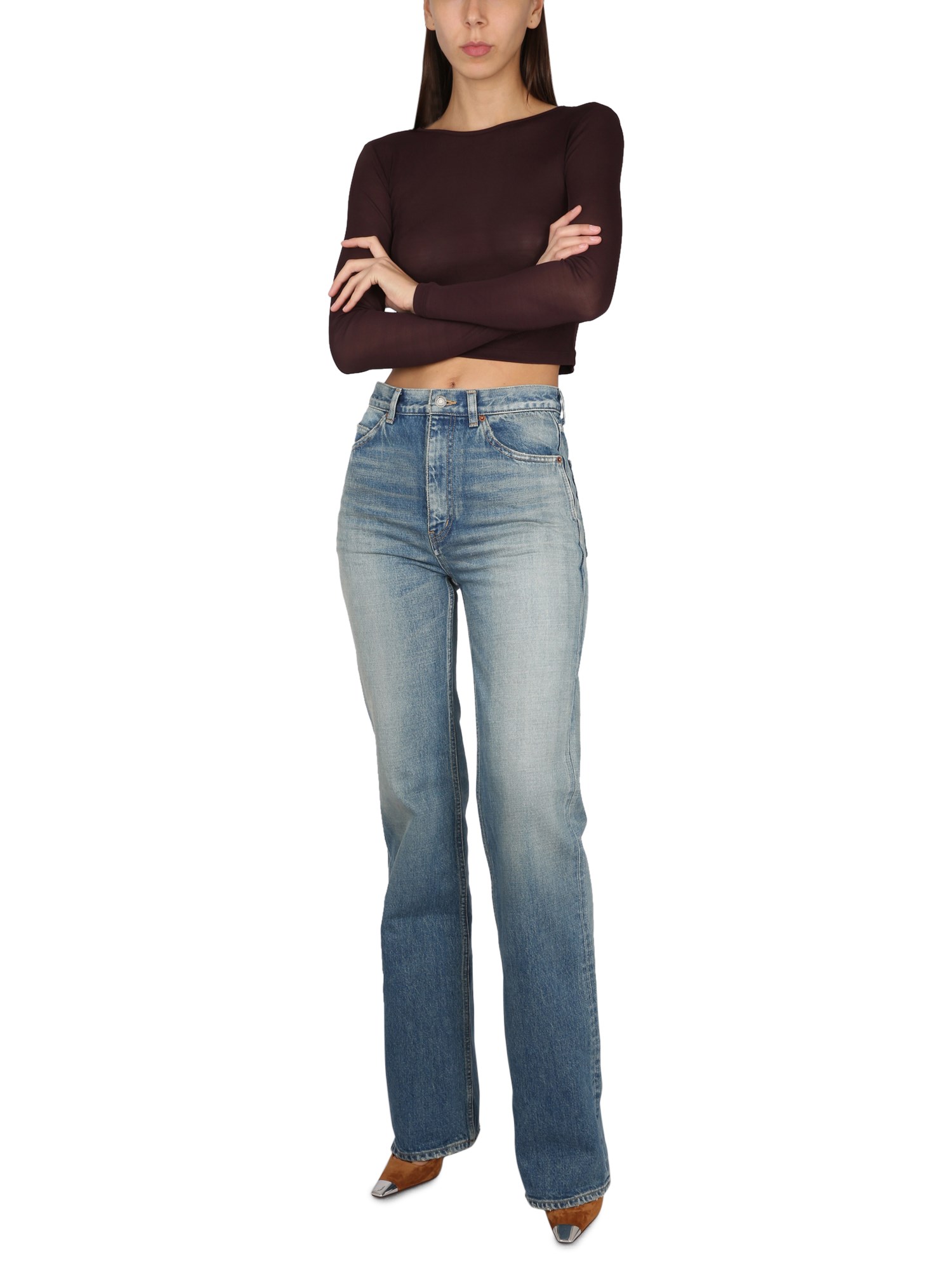 - HIGH WAIST- FIVE POCKETS- STRAIGHT LEG- 100% COTTON- THE MODEL IS 180 CM TALL AND WEARS SIZE 27