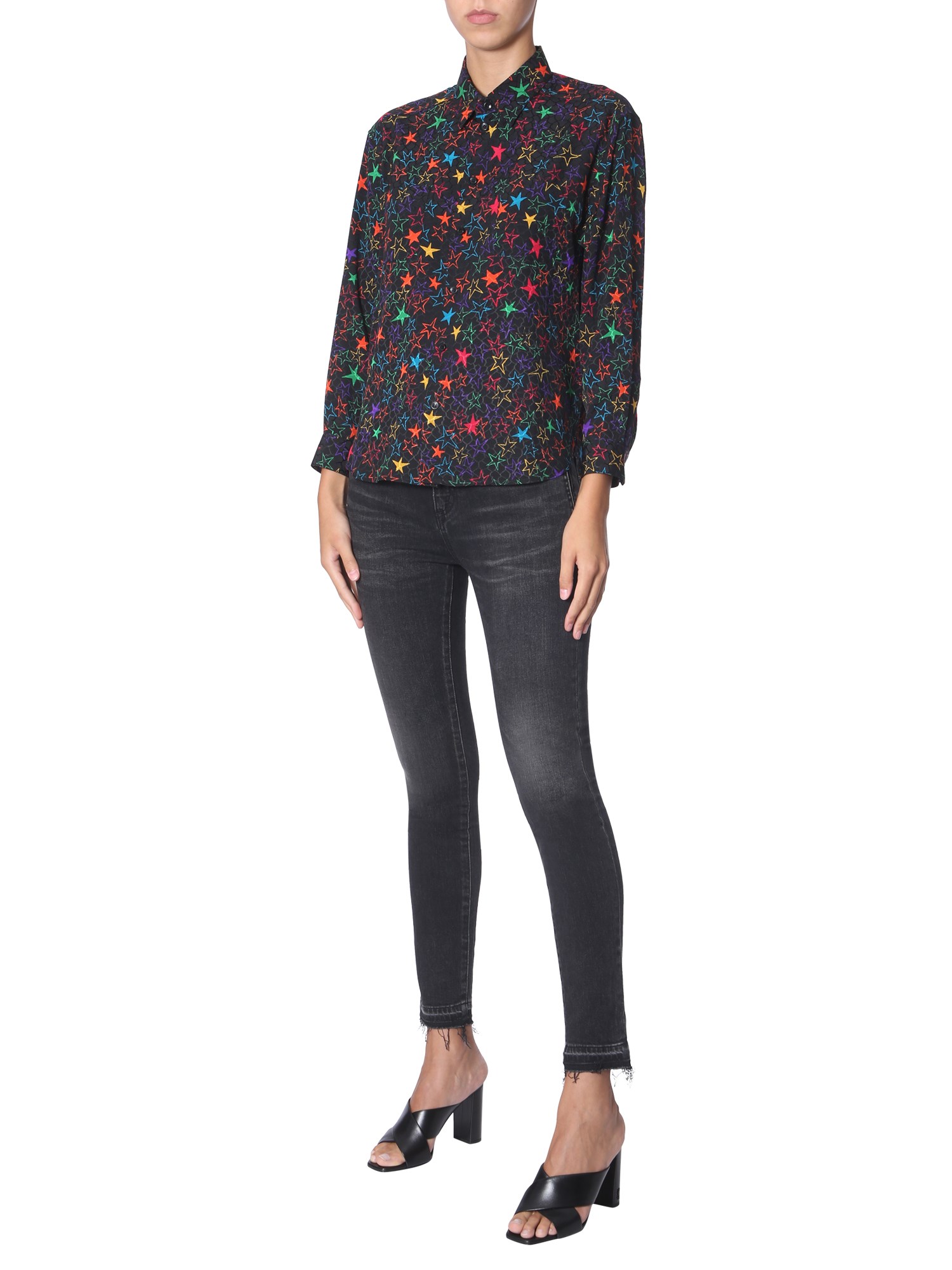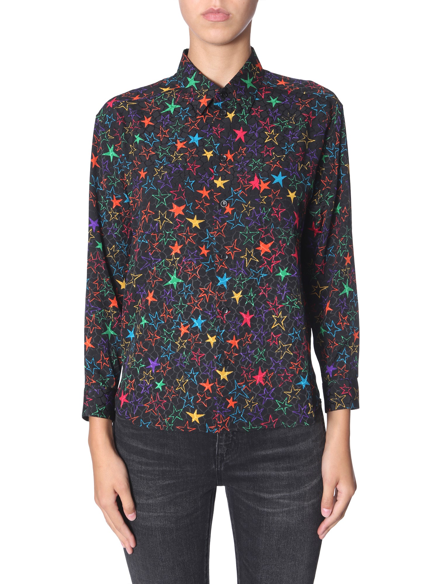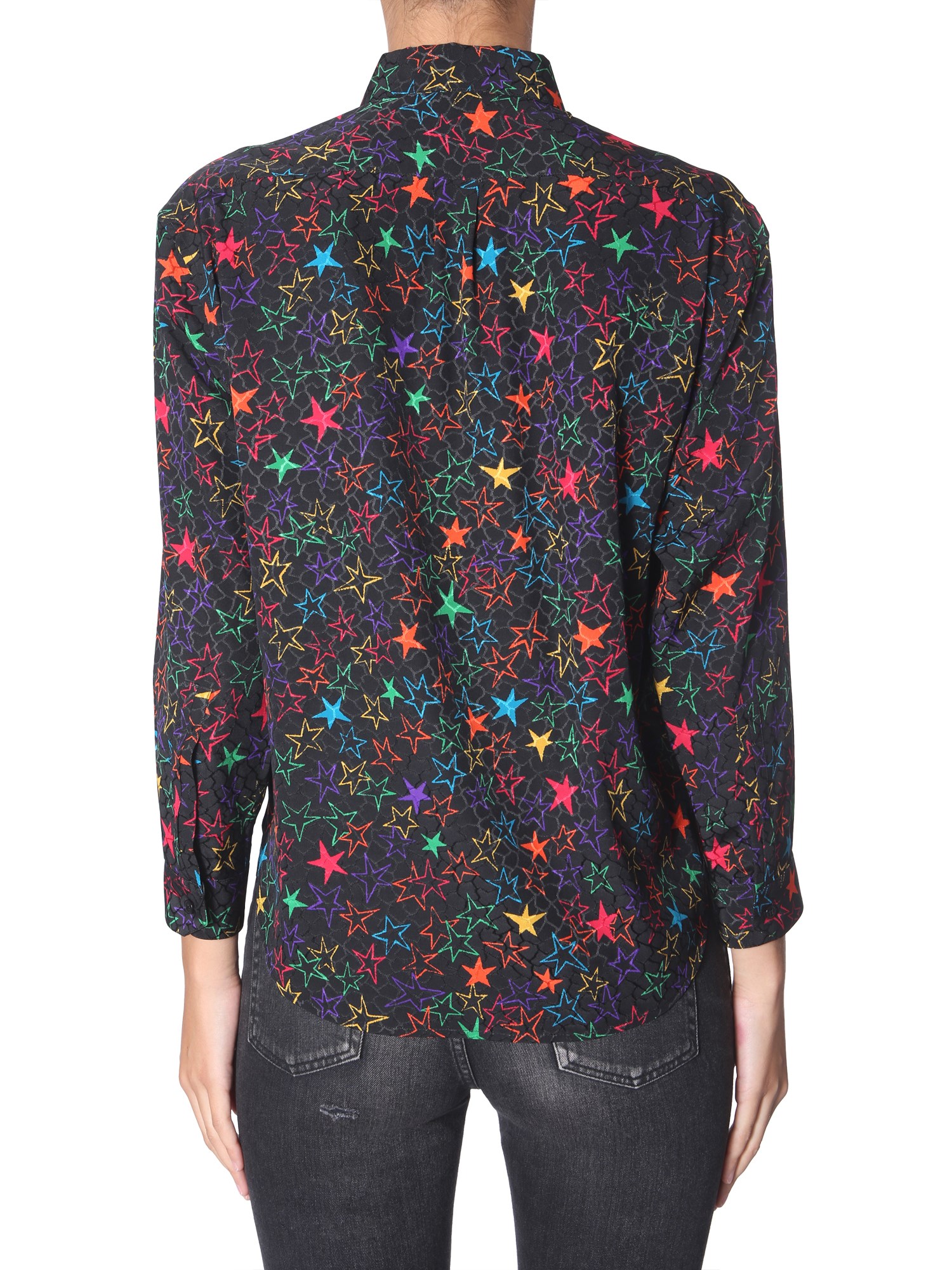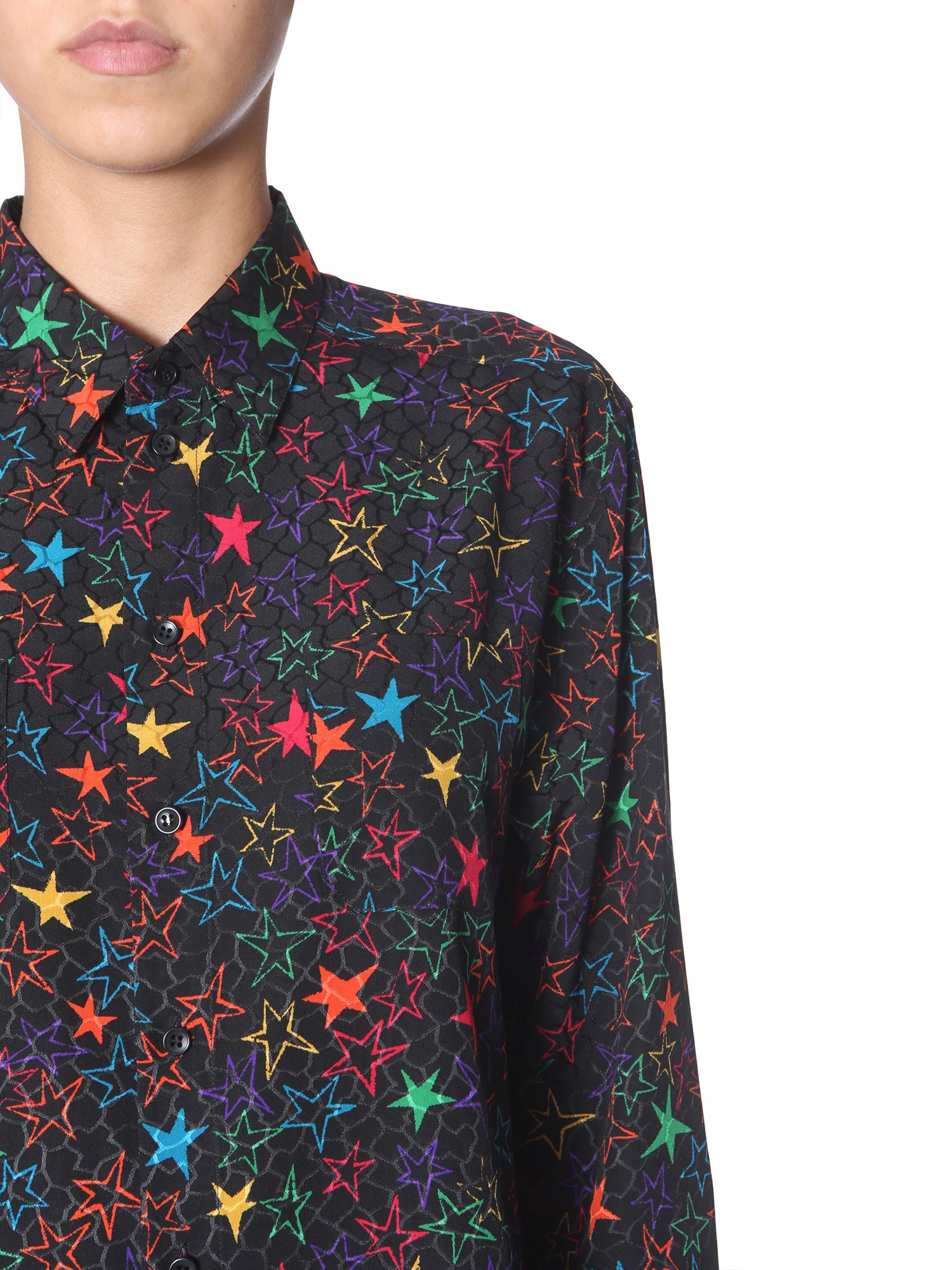 Create a lasting impression on everyone with the silk shirt from Saint Laurent. The shirt is made of pure silk fabric that is soft and smooth in texture. The multicolour star printed surface gives it a unique and attractive appeal. Its classic collar and button-down closure make it apt for all casual occasions.