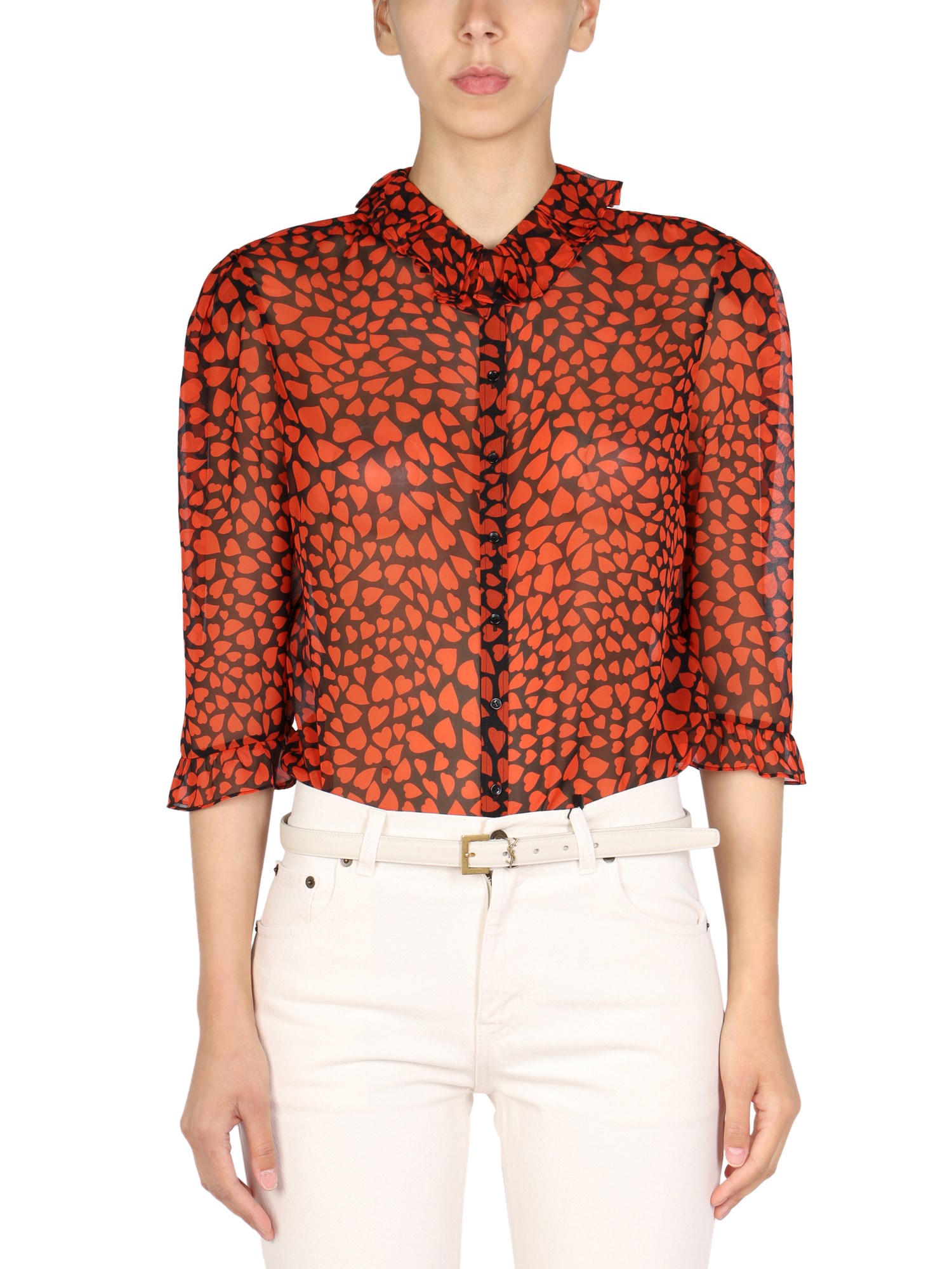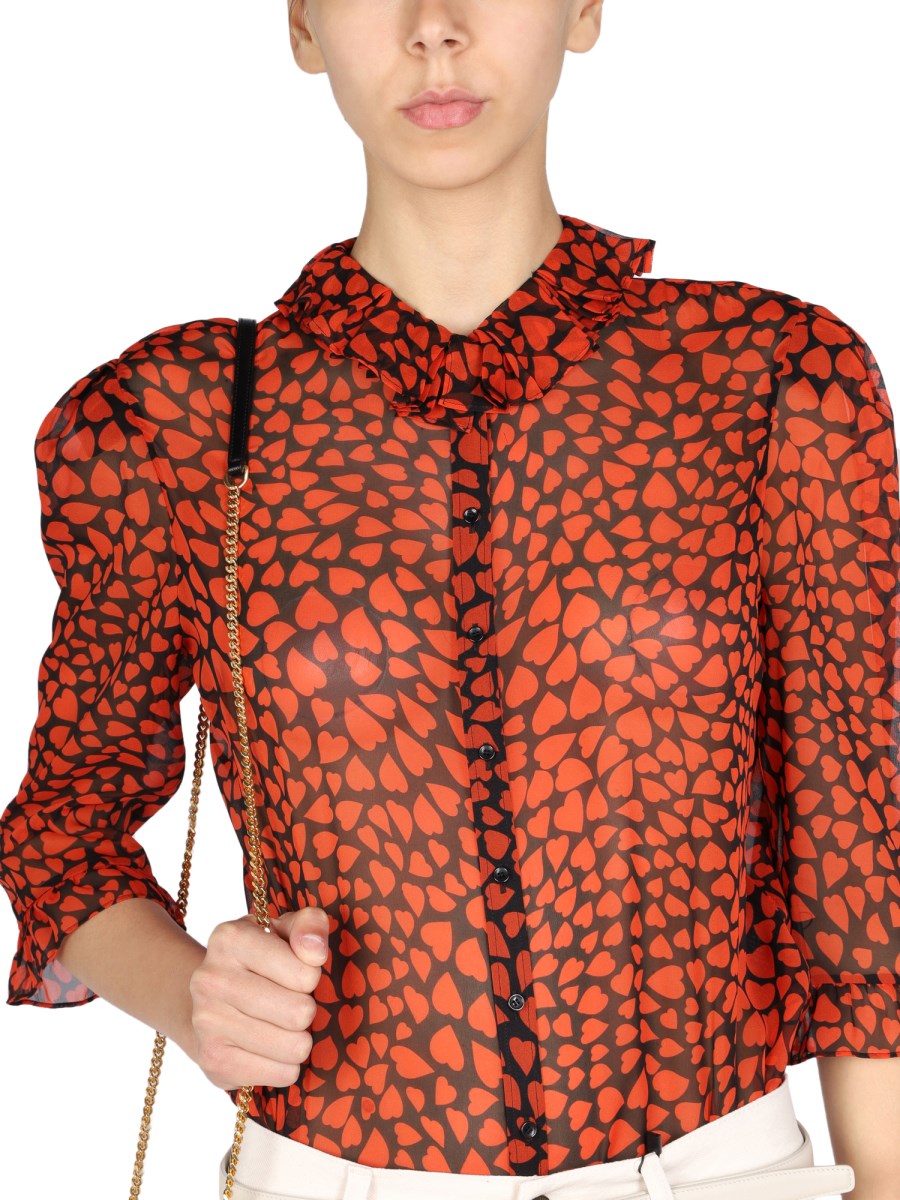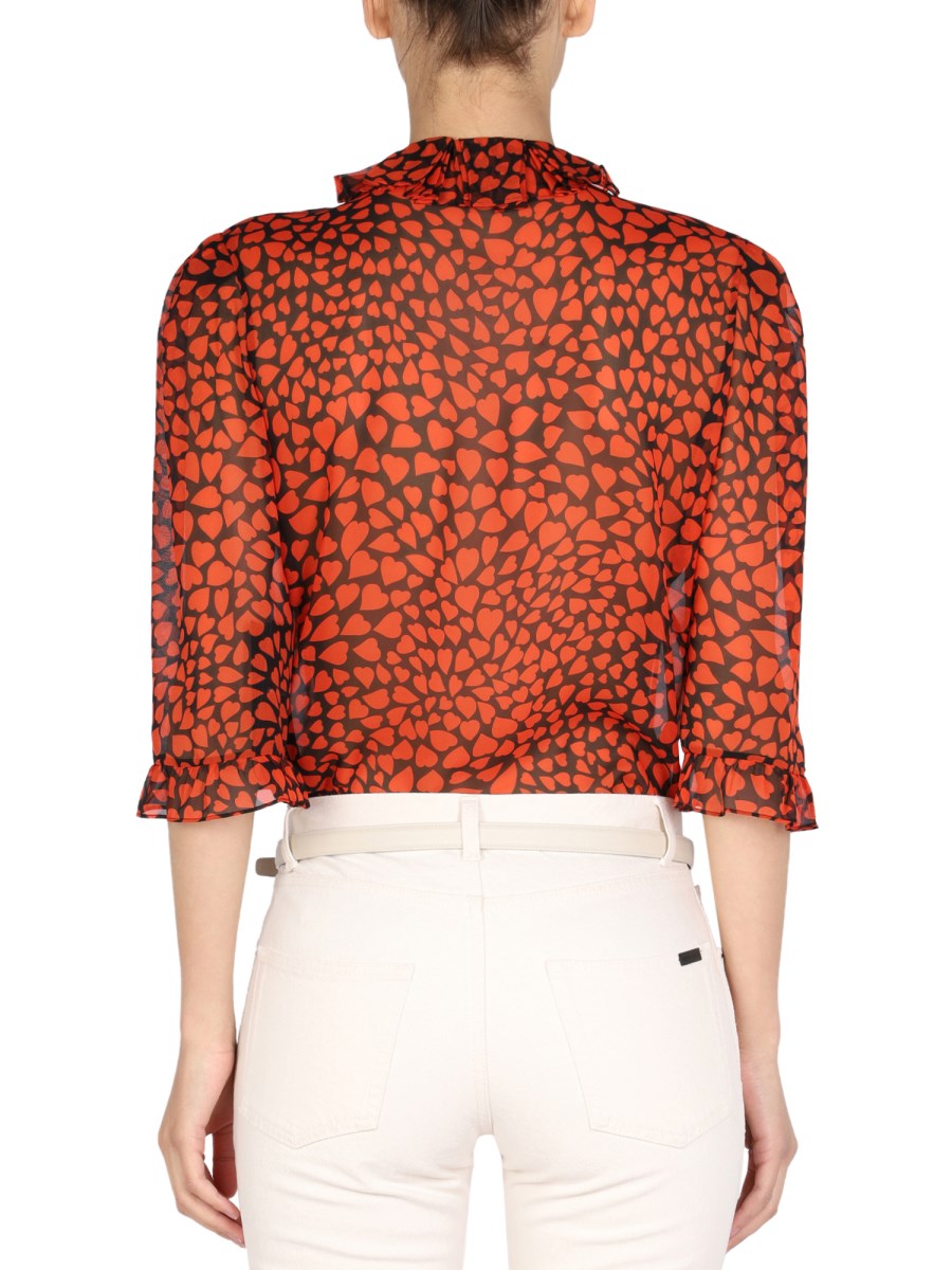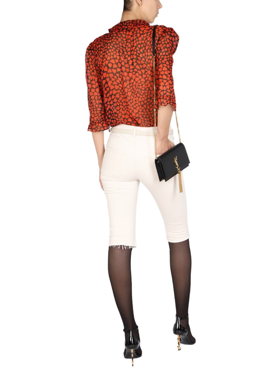 - MANDARIN RUCHING COLLAR- FRONT BUTTON CLOSURE- RUCHING CUFFS - 90% COTTON, 10% POLYAMIDE- MODEL IS 185 CM TALL AND WEARS SIZE 38 FR