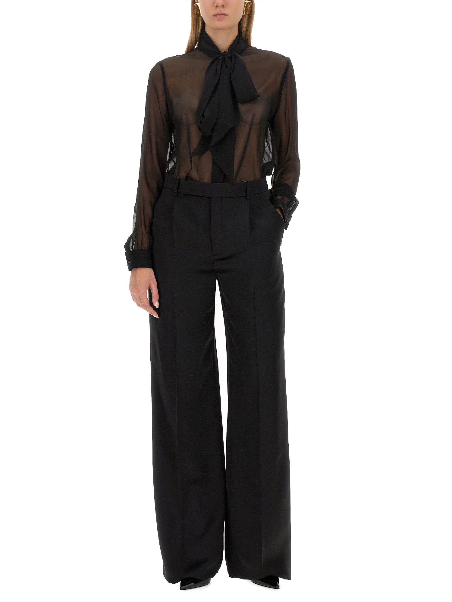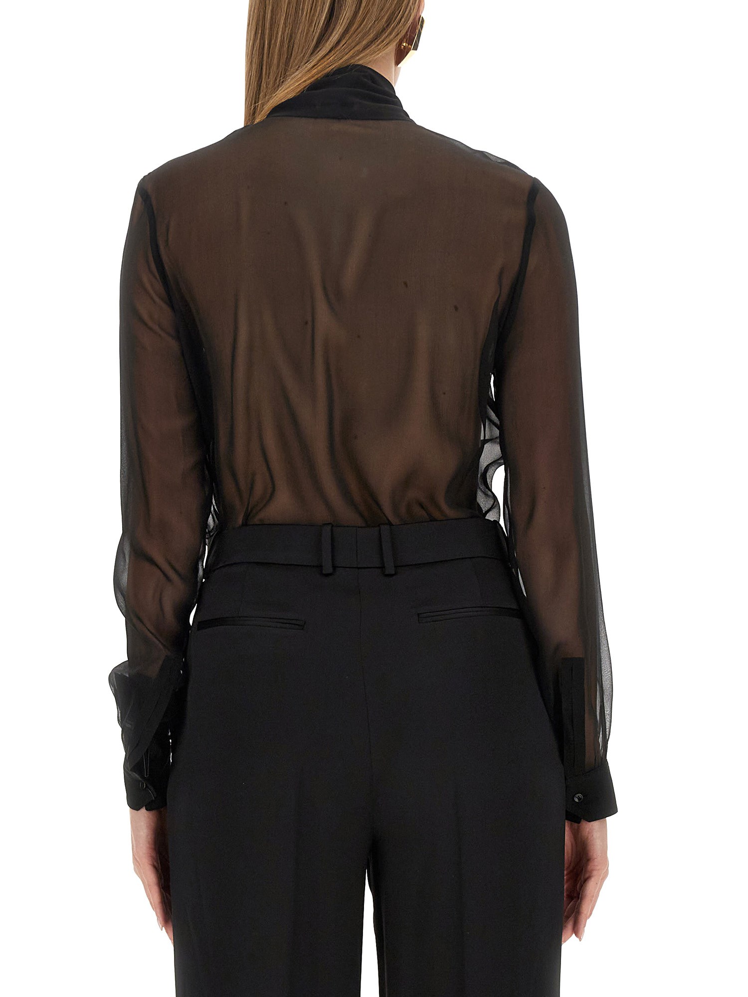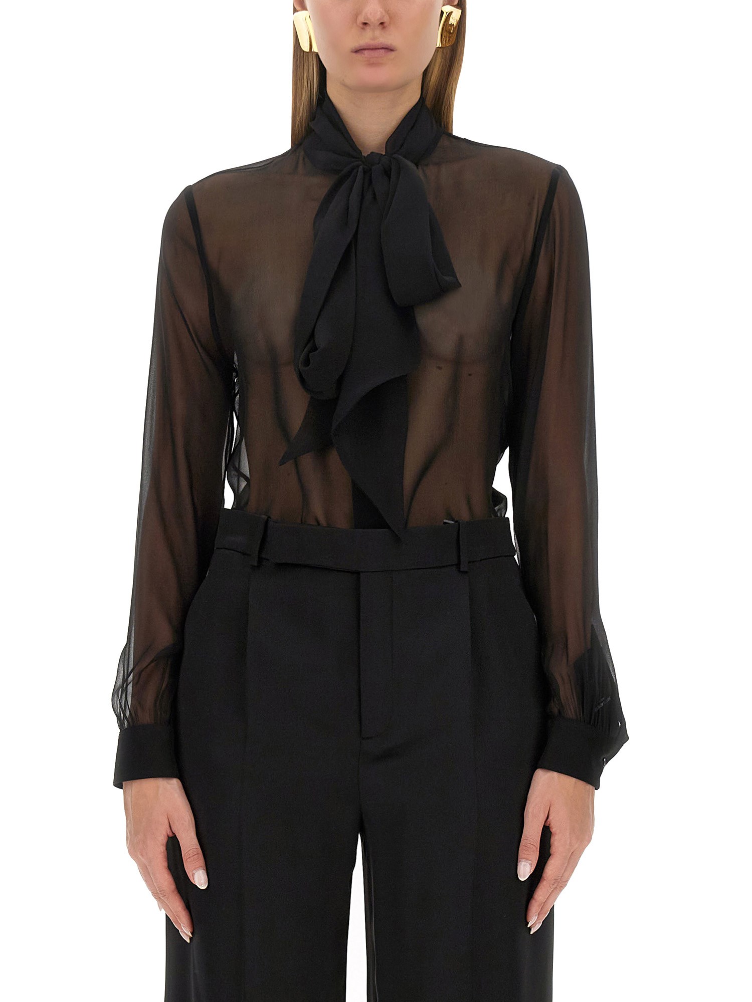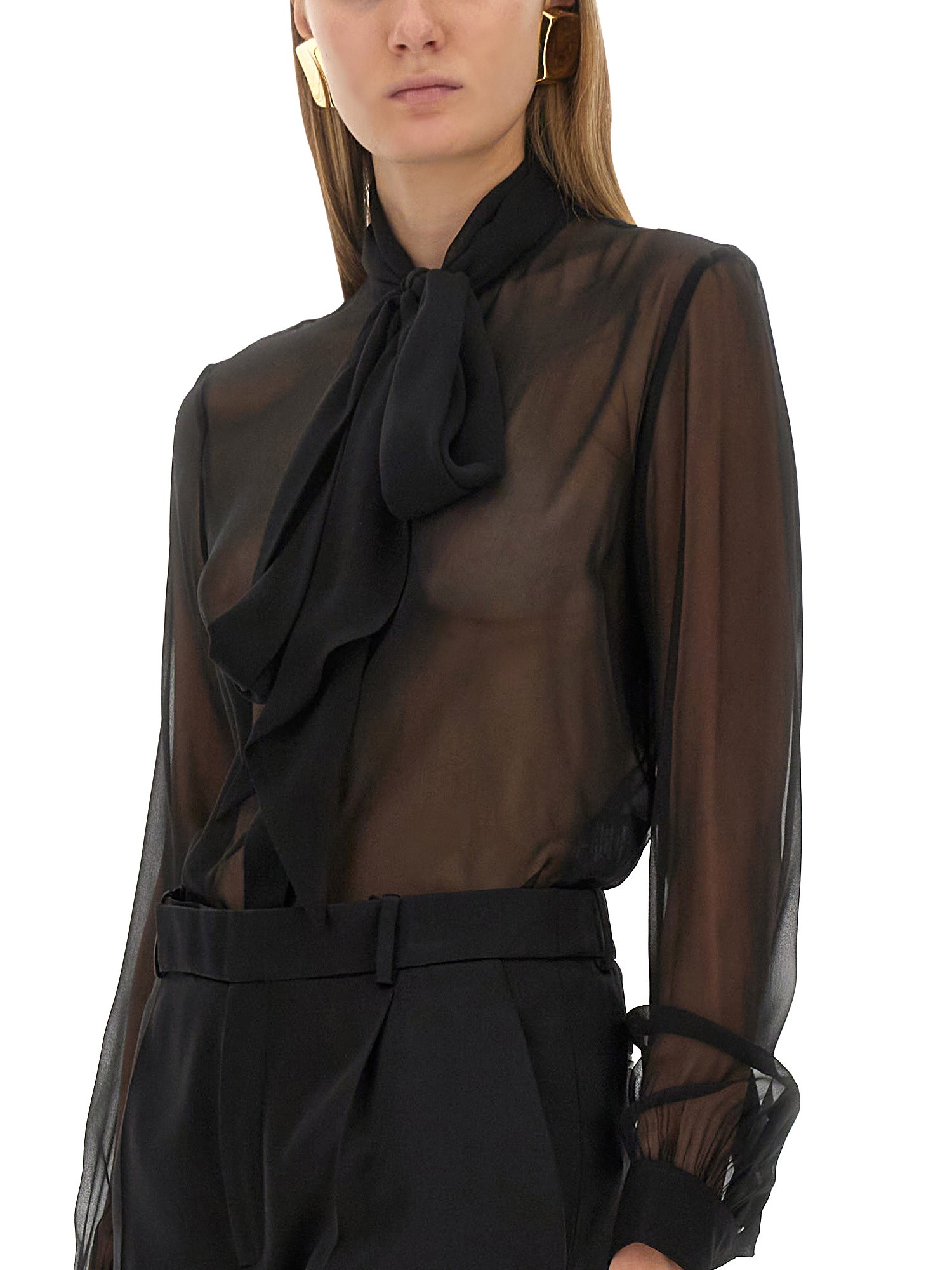 BLOUSE WITH LAVALLIERE COLLAR IN CREPE MUSLIN