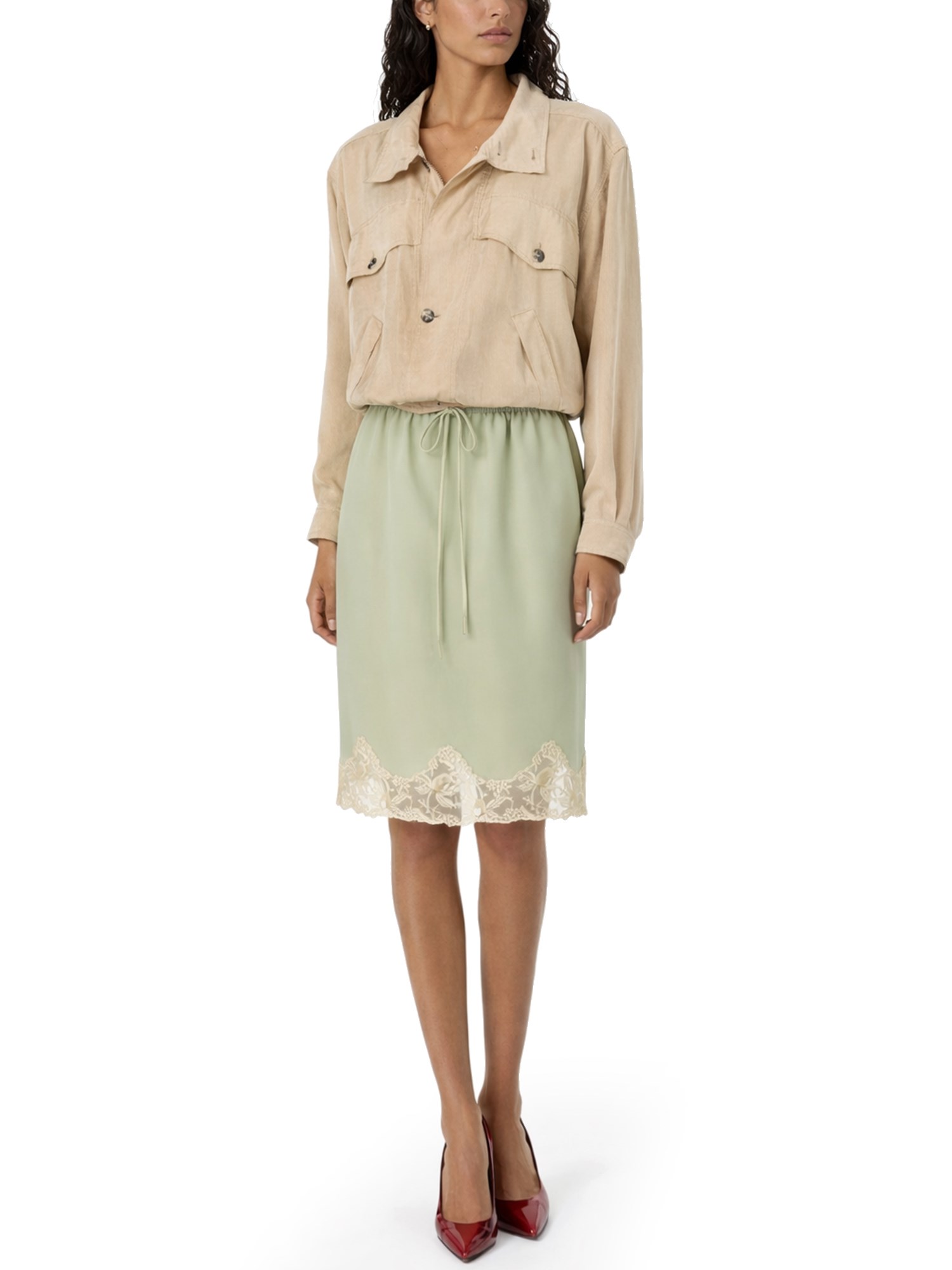 GONNA MIDI IN SETA CON PIZZO E COULISSE IN VITA