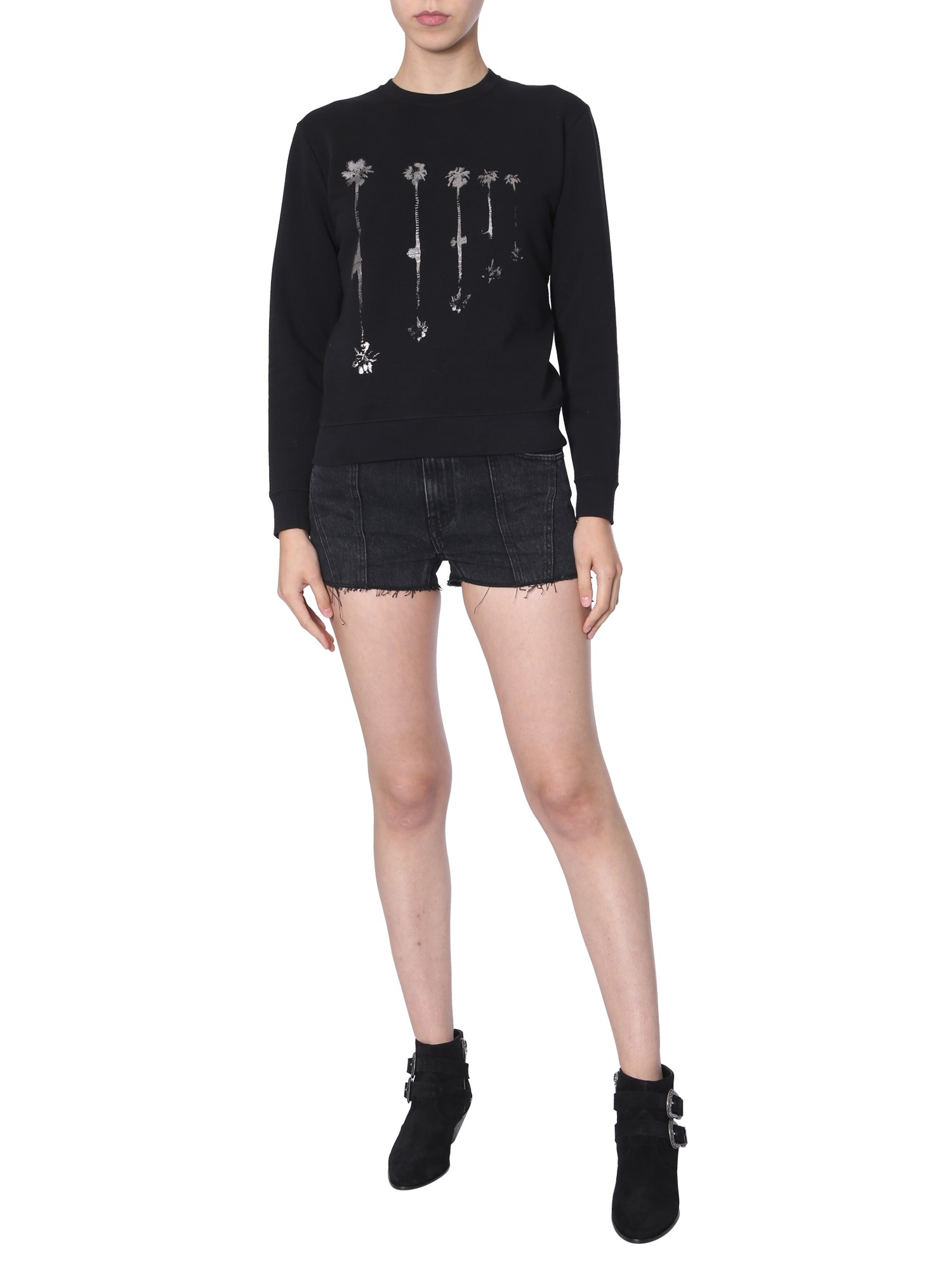 This winter, keep yourself warm and cosy by wearing this sweatshirt neck from the house of Saint Laurent. Tailored from 100% cotton, the sweatshirt has brushed interior that feels soft against your skin. It features ribbed hem on the cuffs and neckline to add a finishing touch to its design.
