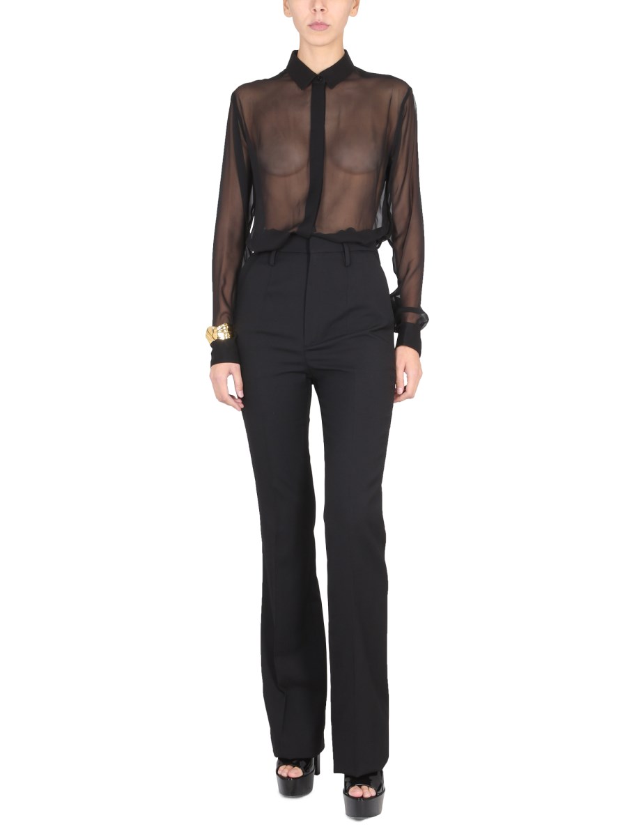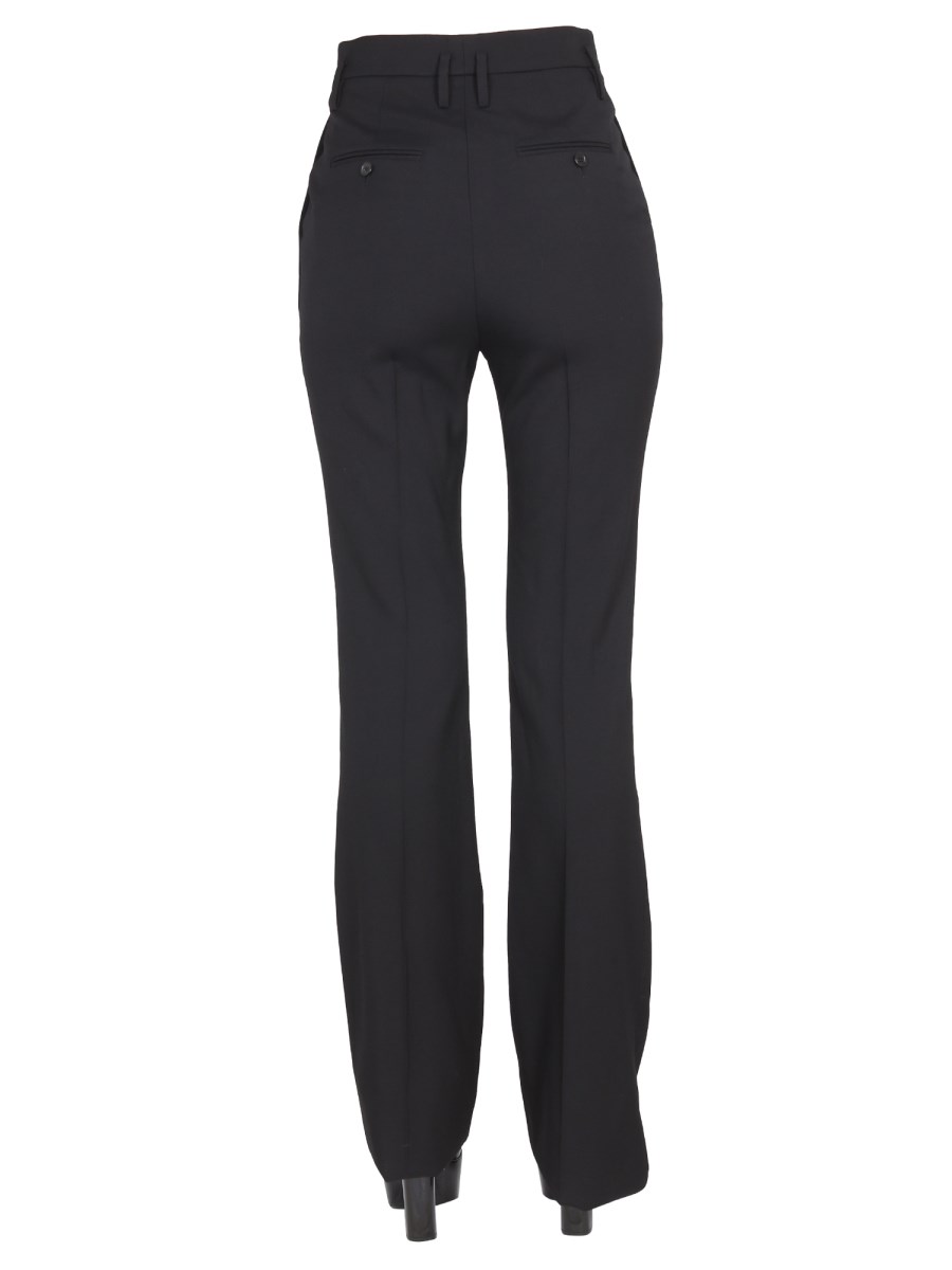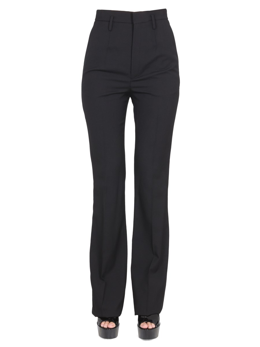 When the cold weather sets in, it's time to pull out your favourite black wool-tailored pants from Saint Laurent. These tailored pants are perfect for winter, featuring a modern black hue, a fitted high waist, and a button closure. They are tailored to look good with all your favourite shoes and jackets.