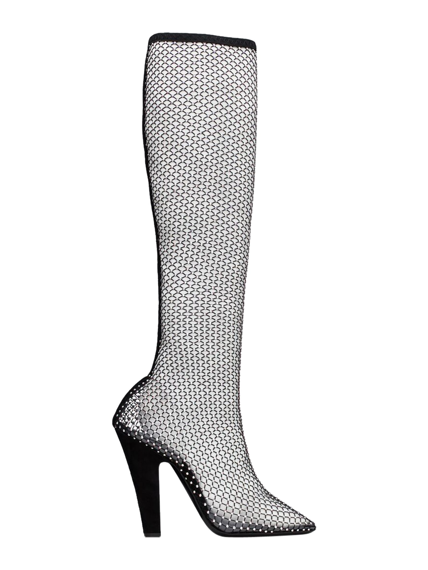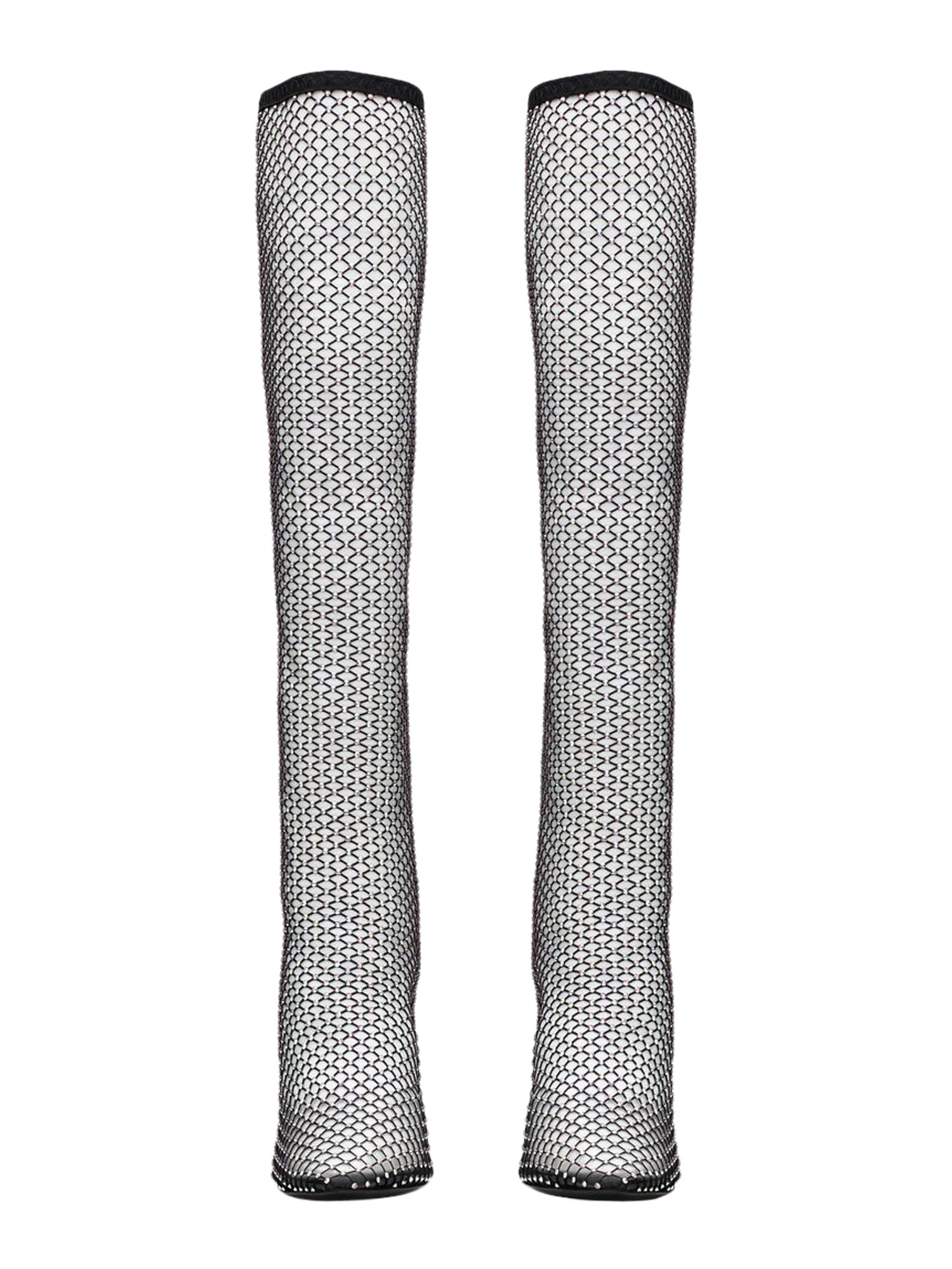 - THIN COATED HEEL: 11 CM- RHINESTONES MESH UPPER - ALMOND TIP- LEATHER SOLE- 93% METALLIC LUREX, 7% POLYURETHANE- MADE IN ITALY