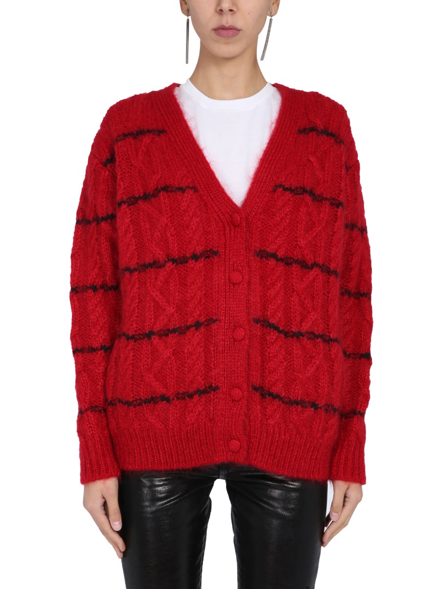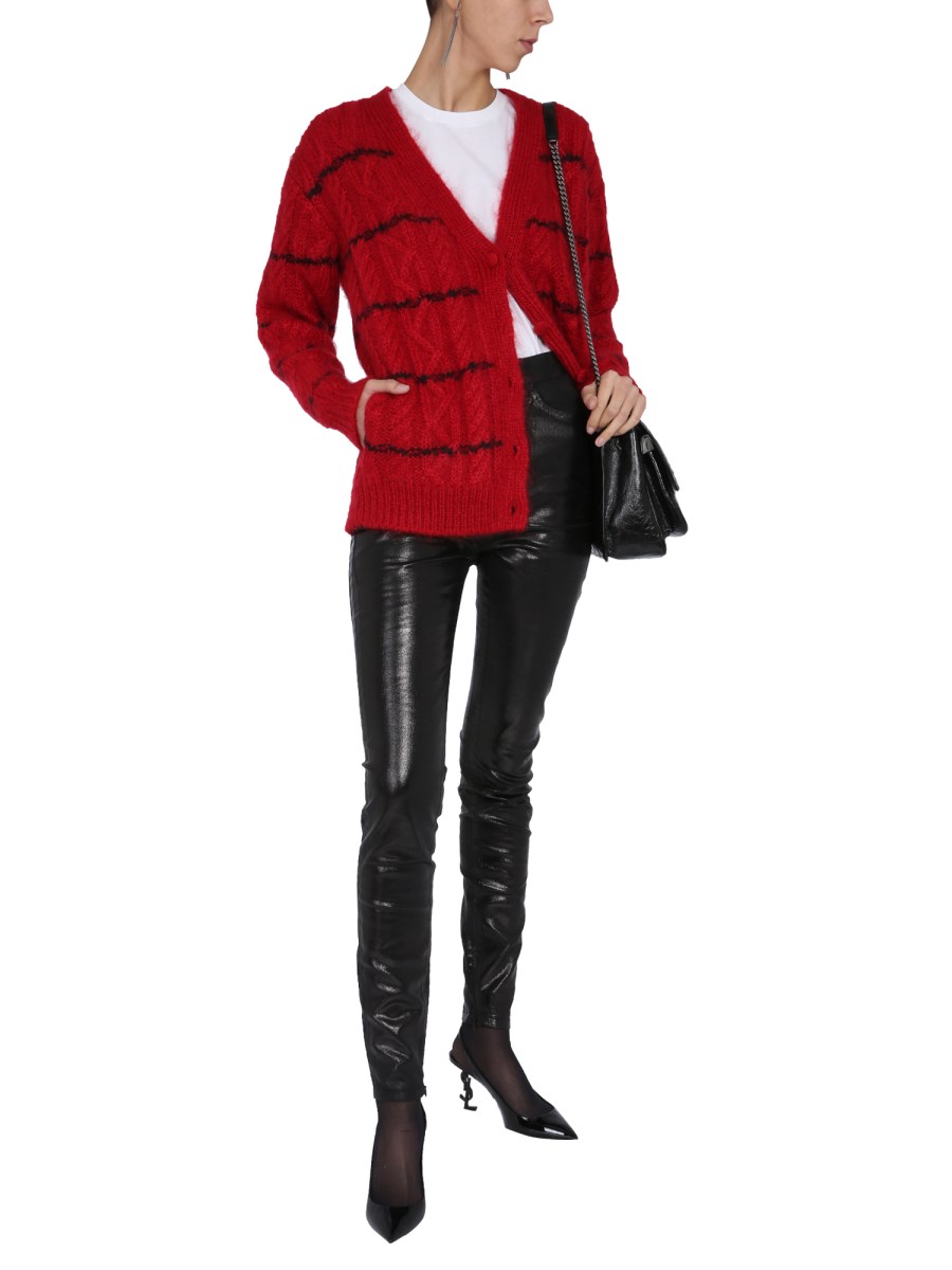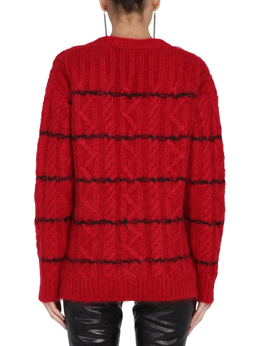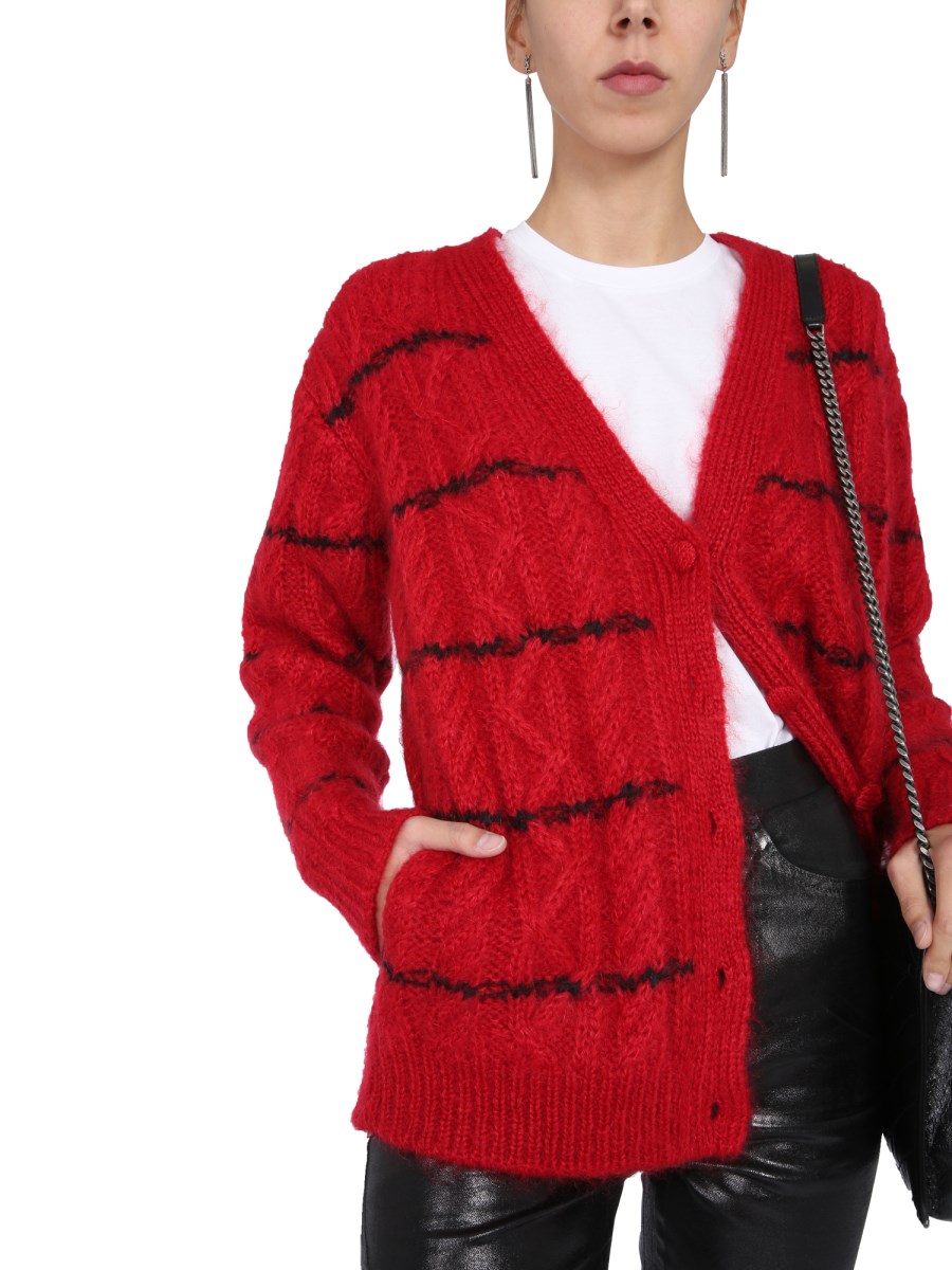 You'll rule the day with this Saint Laurent's sophisticated and beautiful Mohair Cardigan. The V-neck, covered button closure, stripped pattern, braided, and two side pockets are all features of this stylish cardigan. It's made of a mohair, silk, and polyamide blend, so it'll keep you warm and stylish. For every occasion, this oversize fit cardigan goes with anything in your closet.