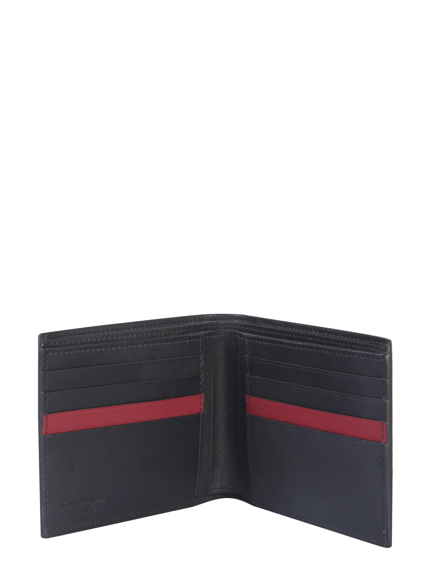 Keep your cards and cash safe while roaming around the city with this iconic print wallet from Salvatore Ferragamo. The wallet comes with a logoed surface with matching seam lines for a contemporary finish. It has five document pockets, eight card slots and one banknote compartment. You can gift this wallet on special occasions.