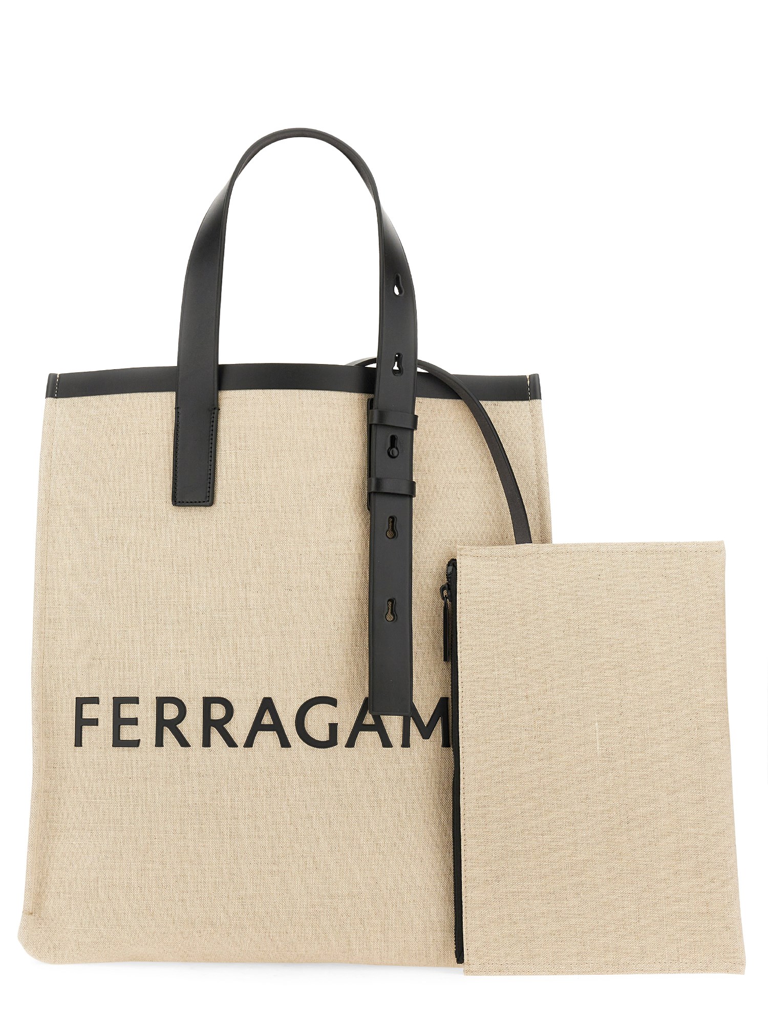 This tote bag from Ferragamo is the perfect accessory for any occasion. With its spacious interior, you can comfortably carry all your essentials such as your phone, wallet, keys, and even a tablet or small laptop. The durable double handles provide a sturdy grip, ensuring that you can confidently carry your belongings wherever you go.