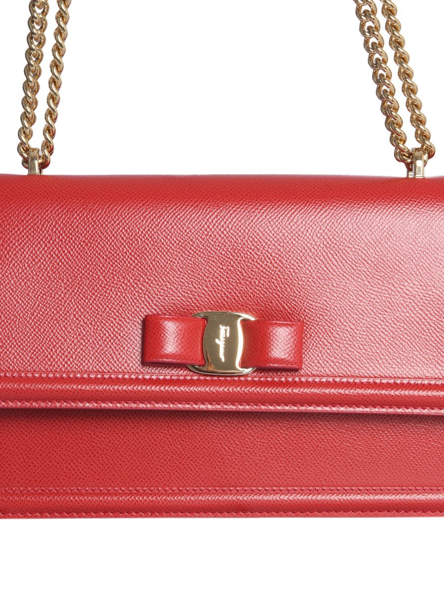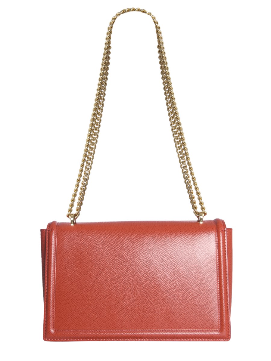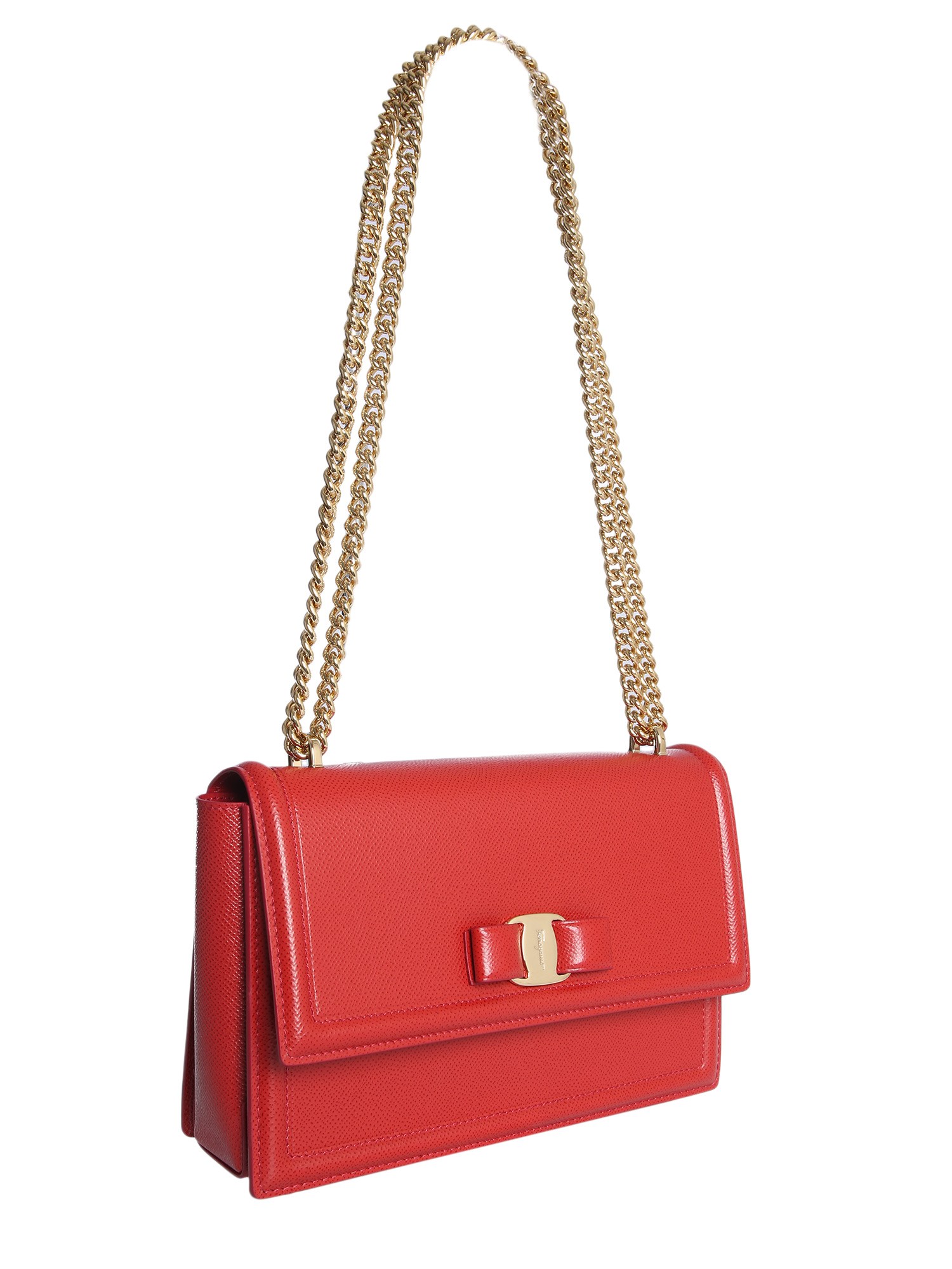 Perfection meets creativity with this bag by the popular brand Salvatore Ferragamo. It is made of synthetic leather, thus lending it a chic appeal. Furthermore, it comes with a long chain strap that lets you carry the bag with ease. It has a click closure which offers a good level of safety.