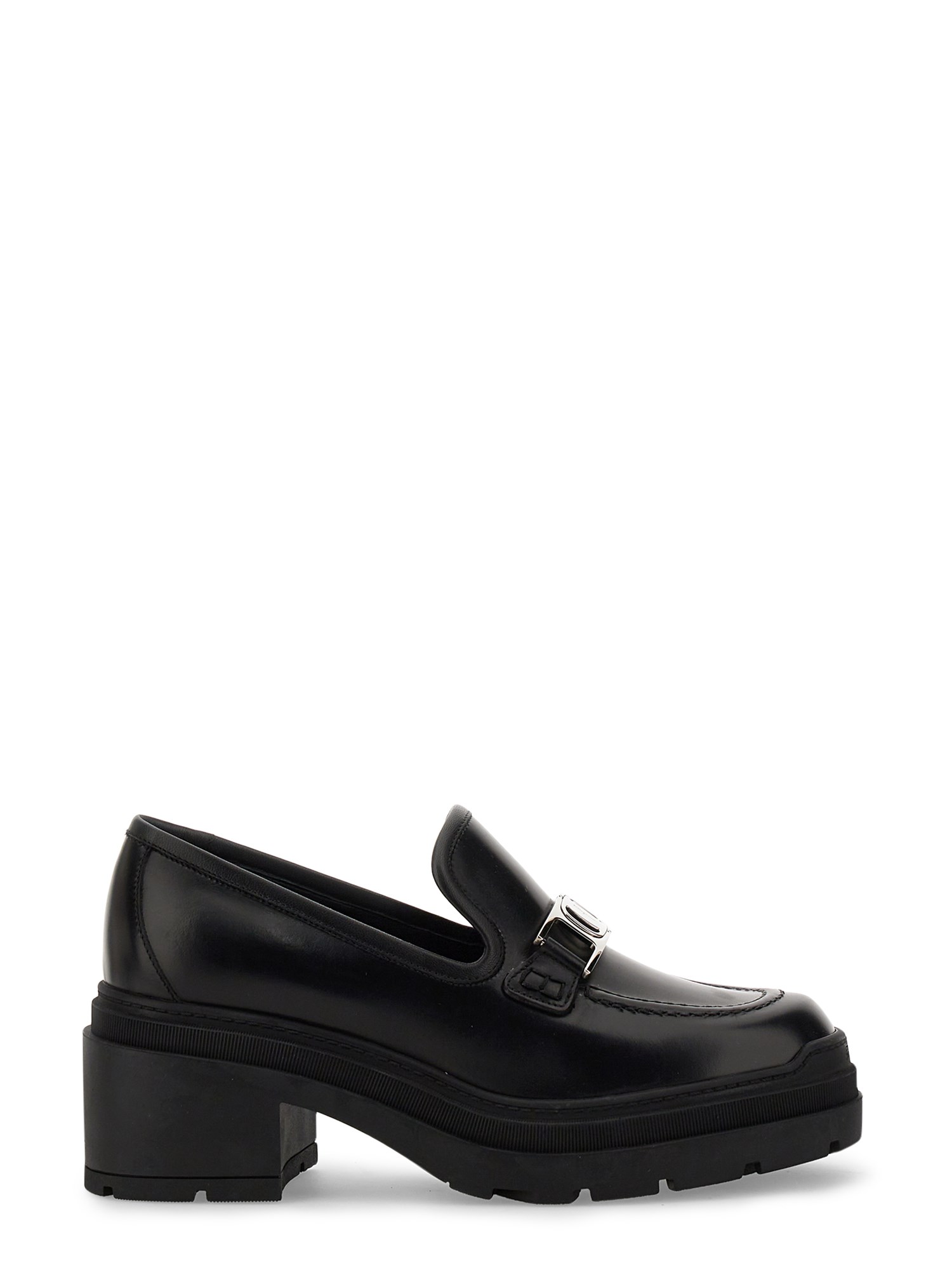 - LEATHER UPPER WITH METAL VARA CHAIN DETAIL