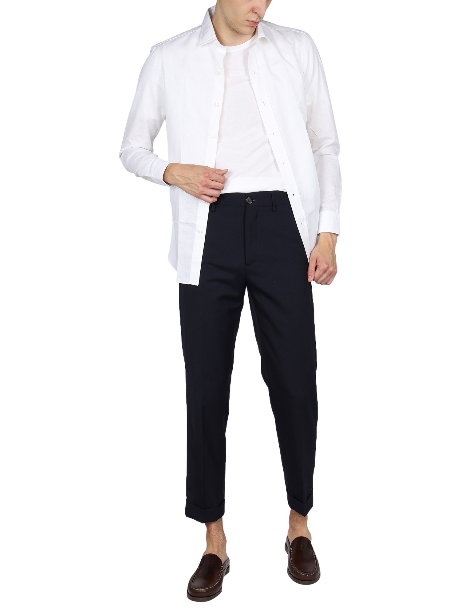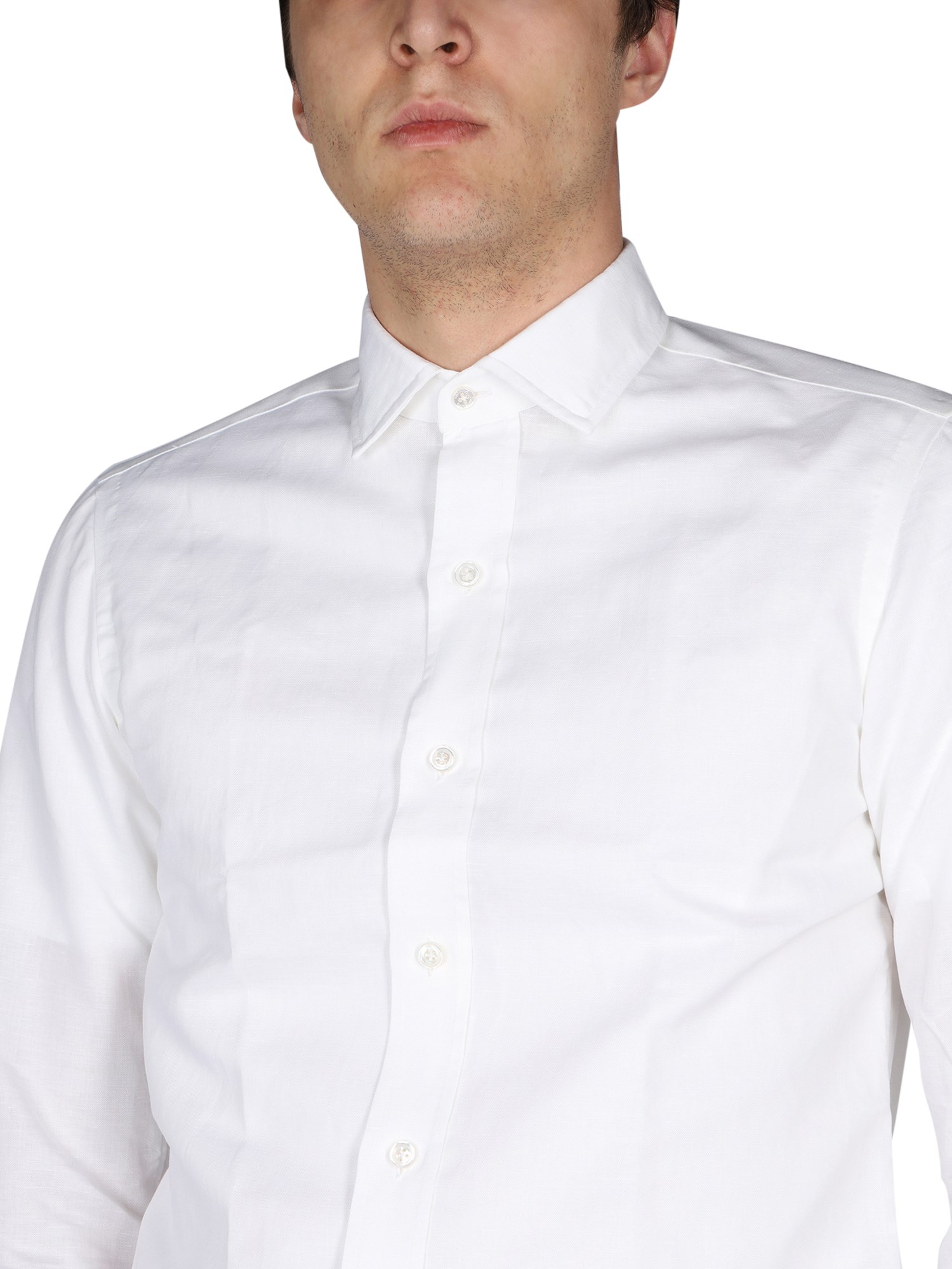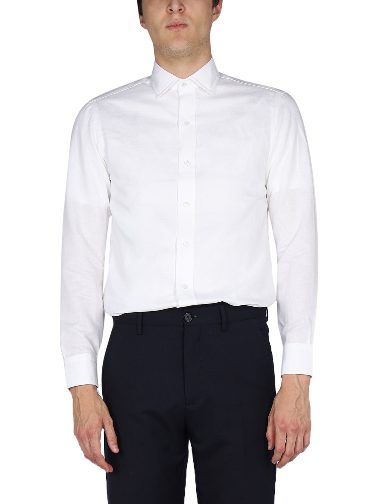 - CLASSIC COLLAR- FRONT BUTTON CLOSURE- 100% COTTON- MADE IN ITALY- MODEL IS 185 CM TALL AND WEARS SIZE 39