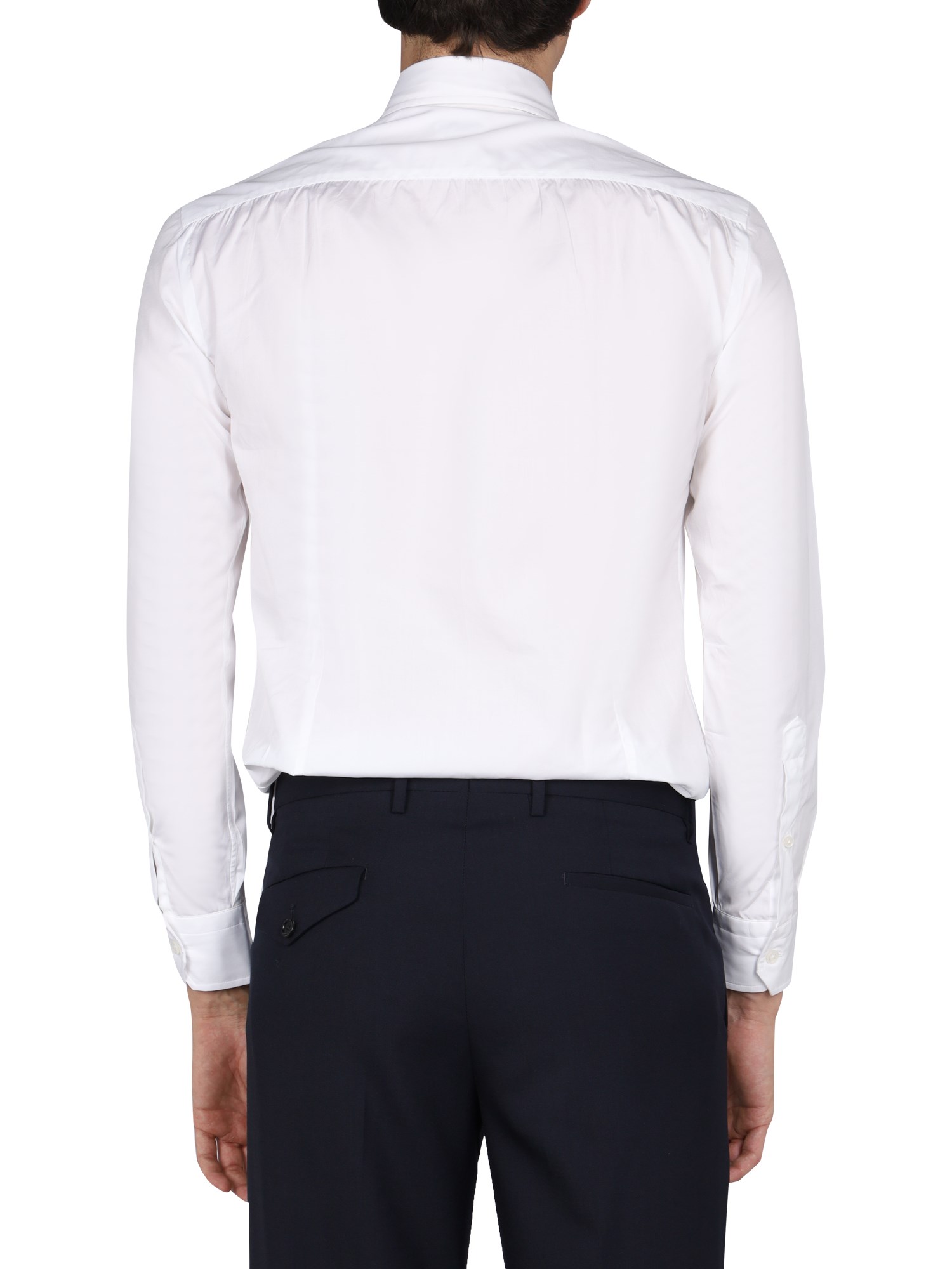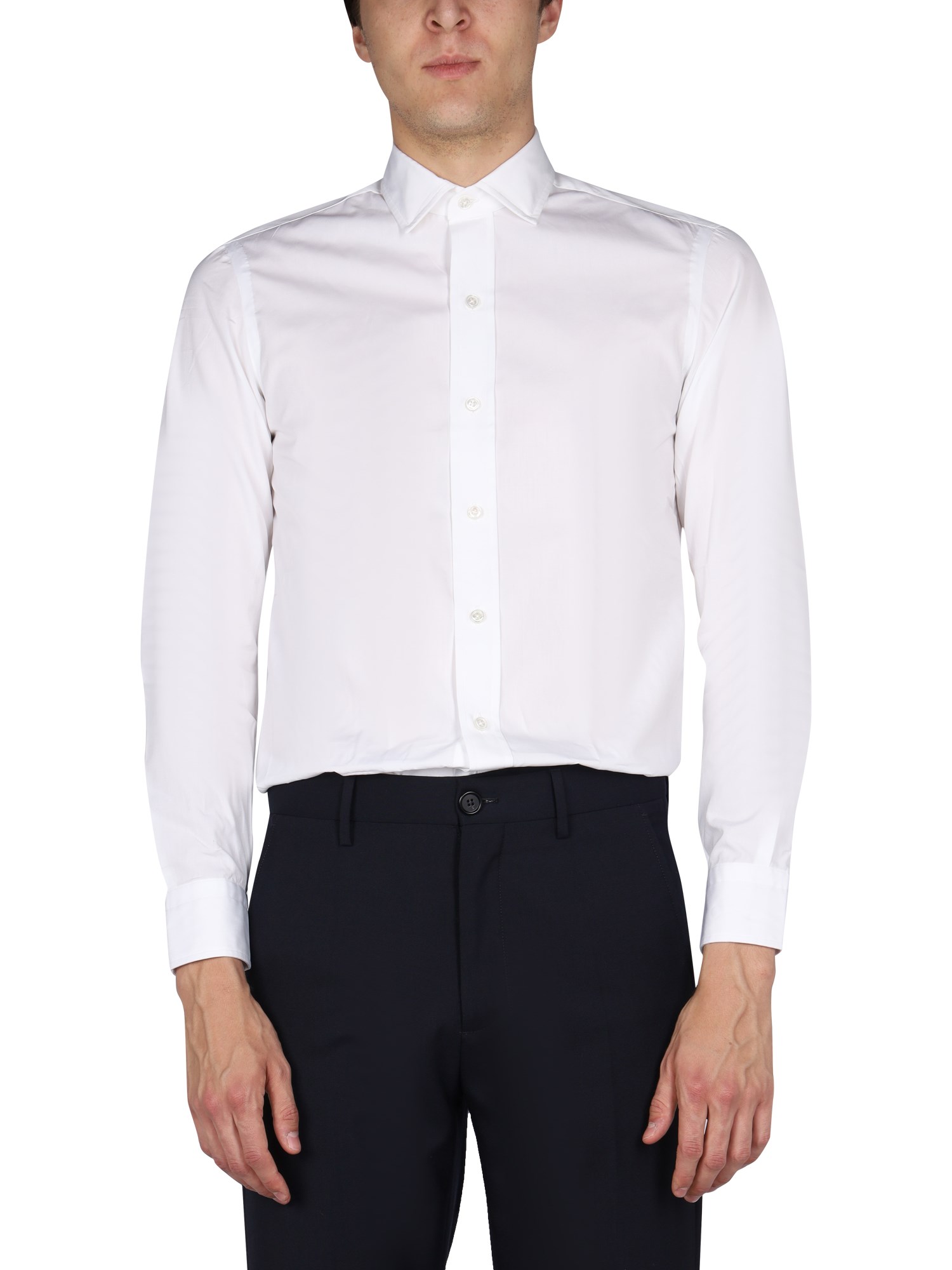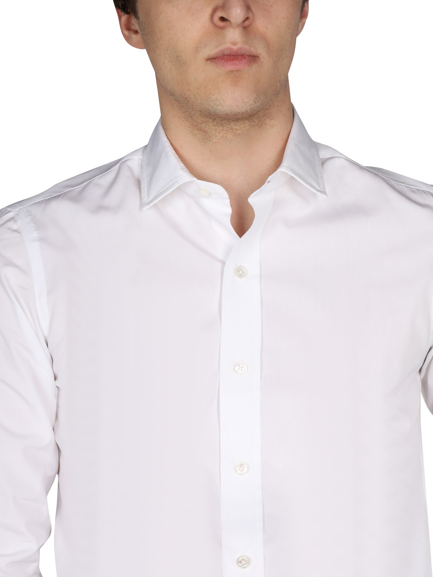 - CLASSIC COLLAR- FRONT BUTTON CLOSURE- 100% COTTON- MADE IN ITALY- MODEL IS 185 CM TALL AND WEARS SIZE 39
