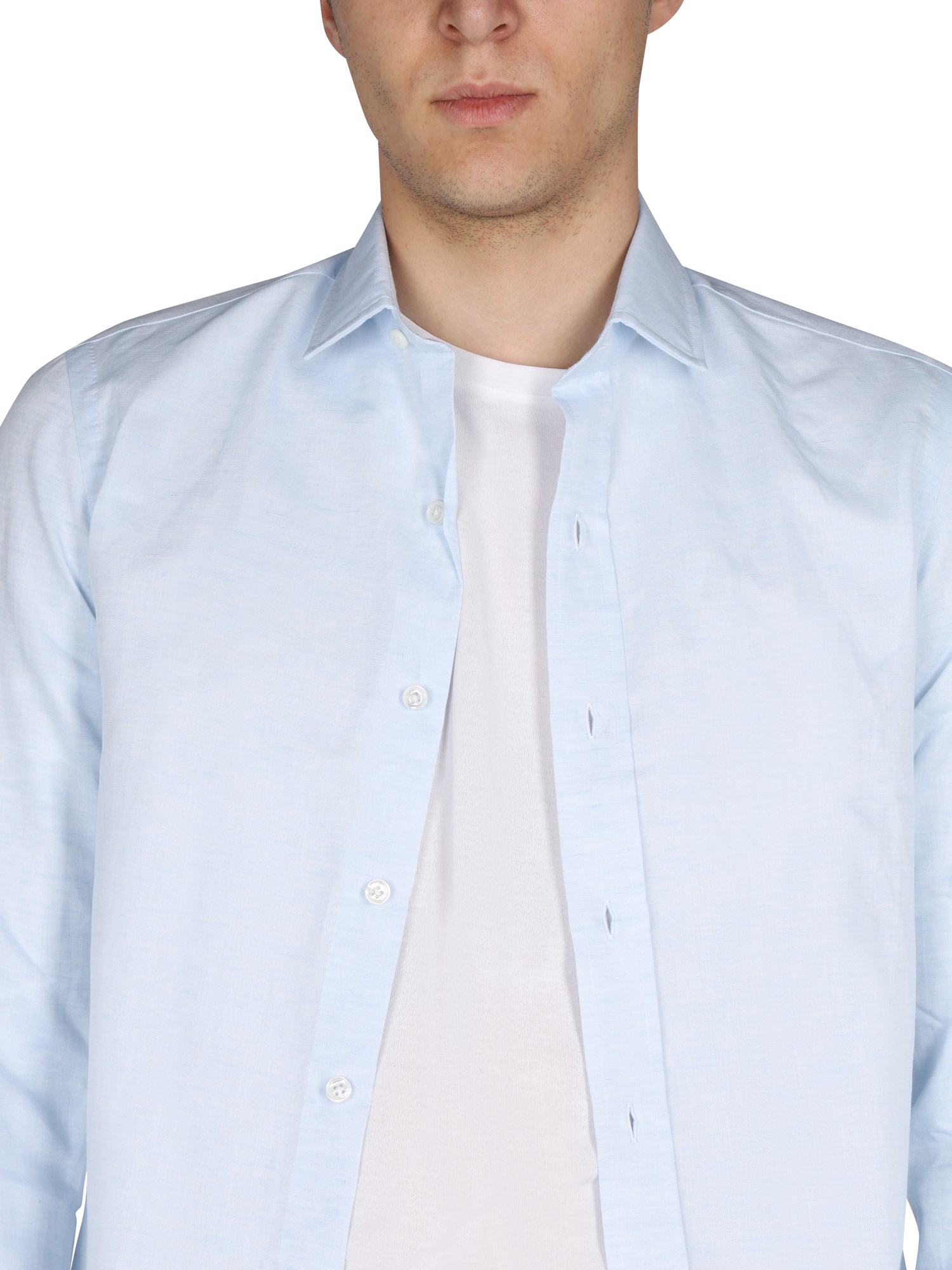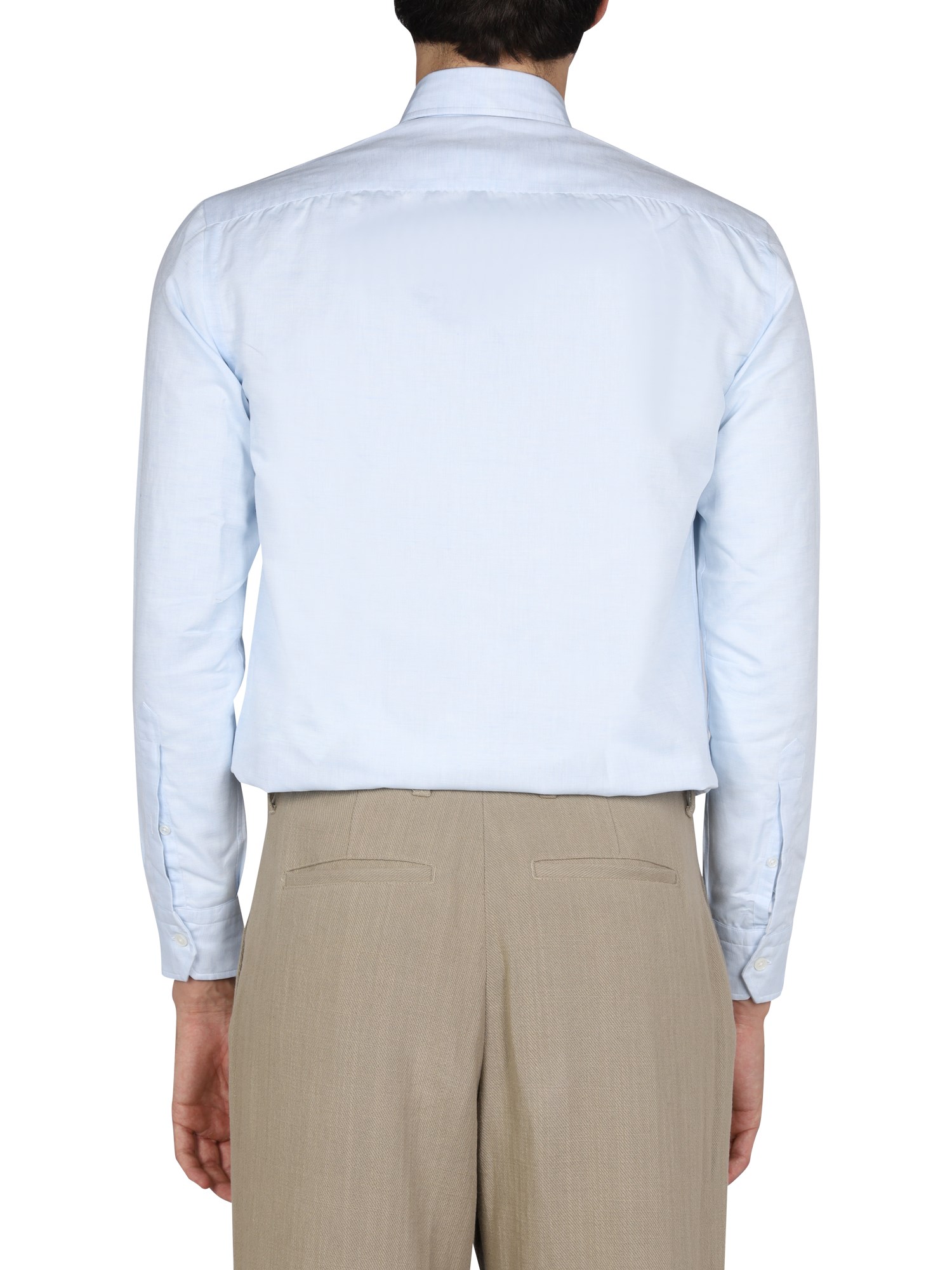 - CLASSIC COLLAR- FRONT BUTTON CLOSURE- 100% COTTON- MADE IN ITALY- MODEL IS 185 CM TALL AND WEARS SIZE 39