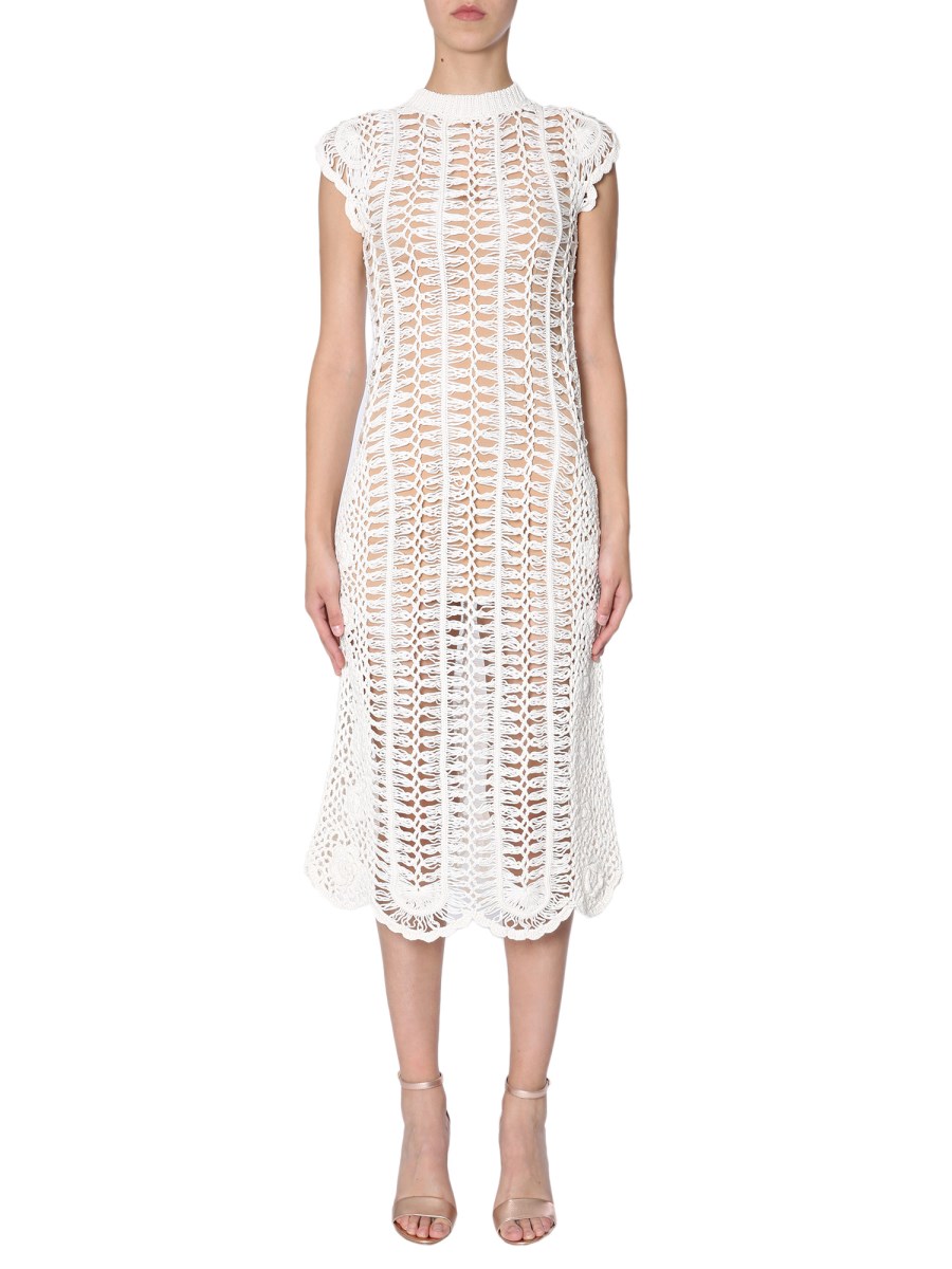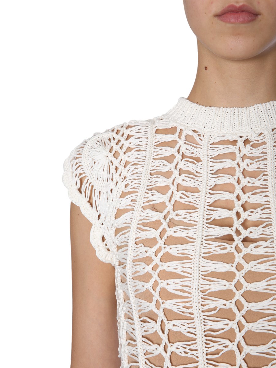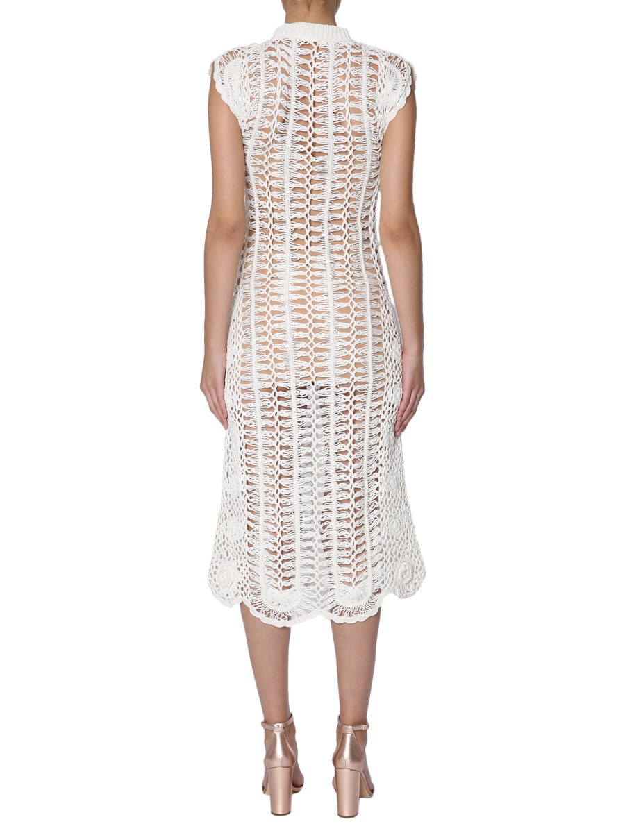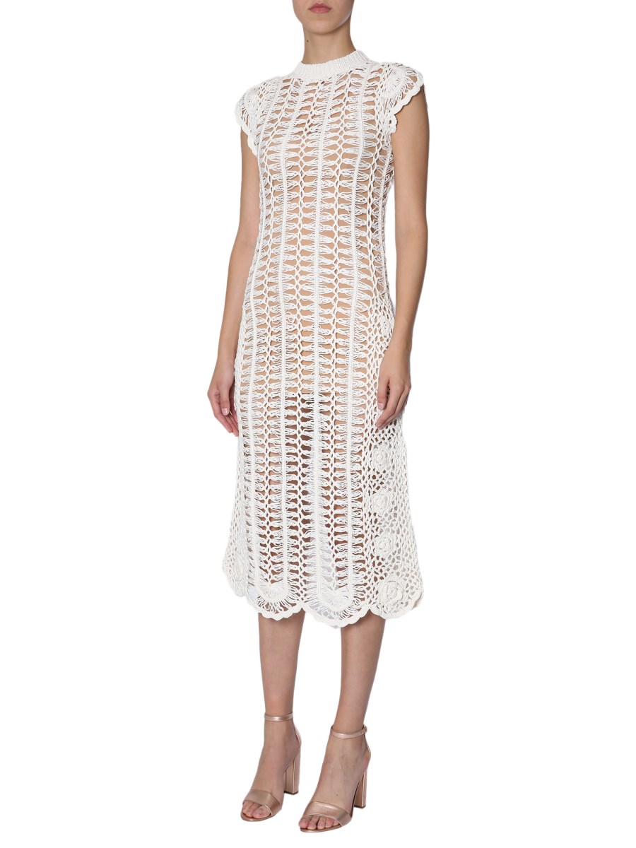 This long dress made of 100% cotton is a perfect blend of comfort and style. The lace crochet design of this long dress is nicely accentuated with the ribbed crew neck and short sleeves. A skin coloured underwear comes included with this long dress.