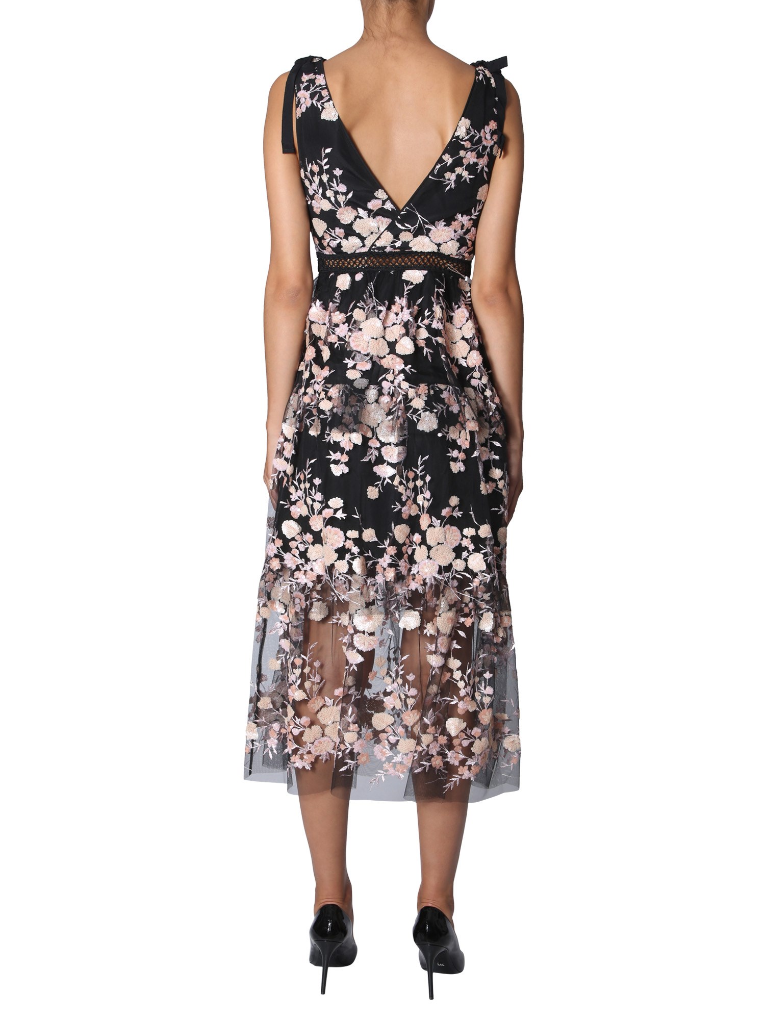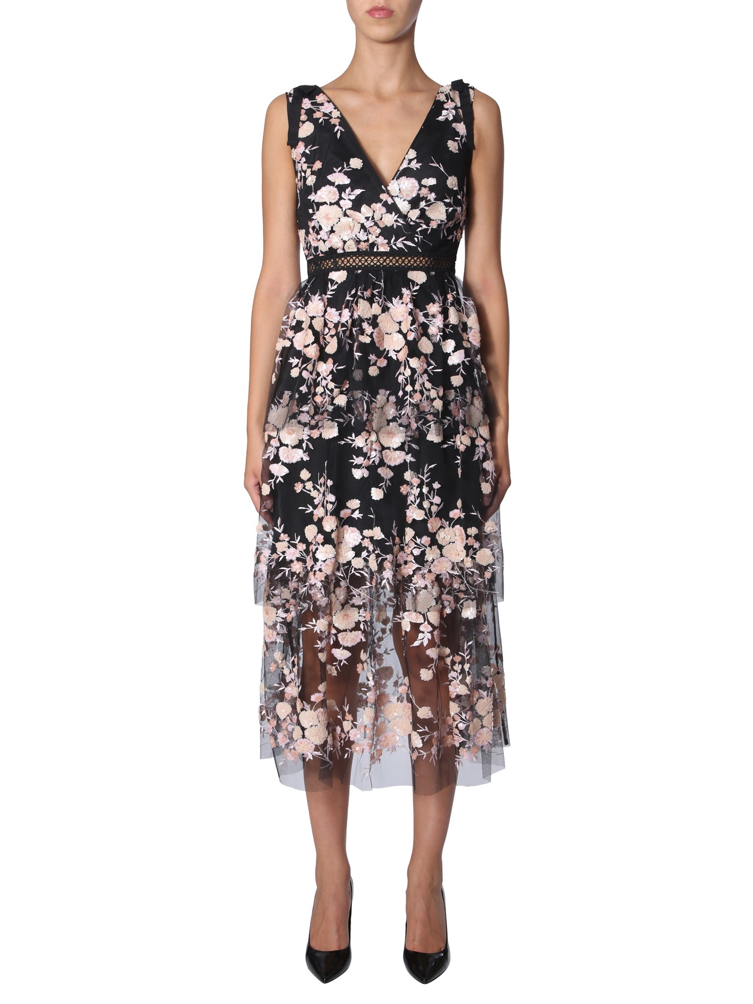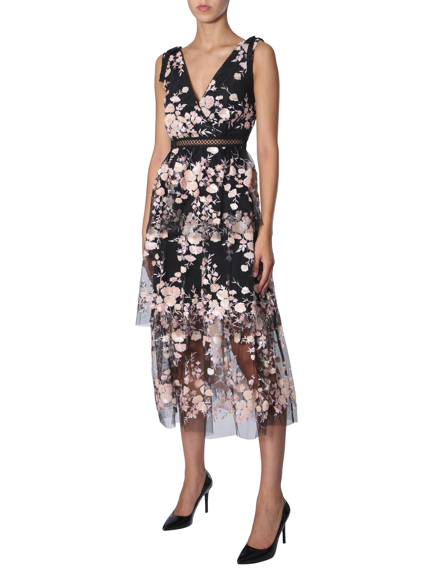The tulle dress from Self-Portrait is ideal to wear on the beach or for a casual walk around the streets on a sunny day. This dress has a floral embroidery and slit waist that give it an attractive finish. Made of 100% polyester, the dress is wrinkle- and shrink-resistant. Complement the dress with a long chain and complete the outfit.