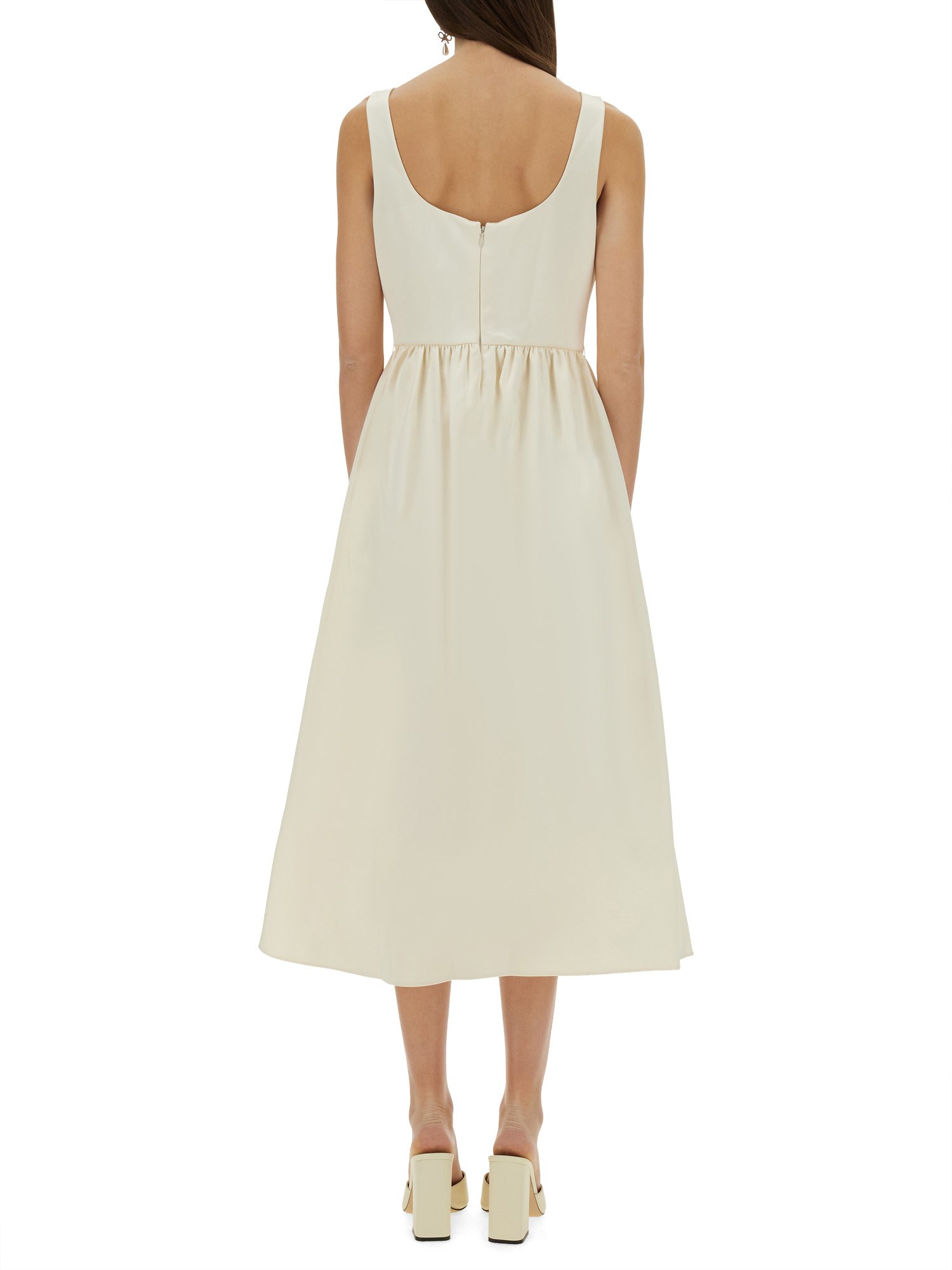 SATIN MIDI DRESS WITH FLORAL APPLIQUÉS