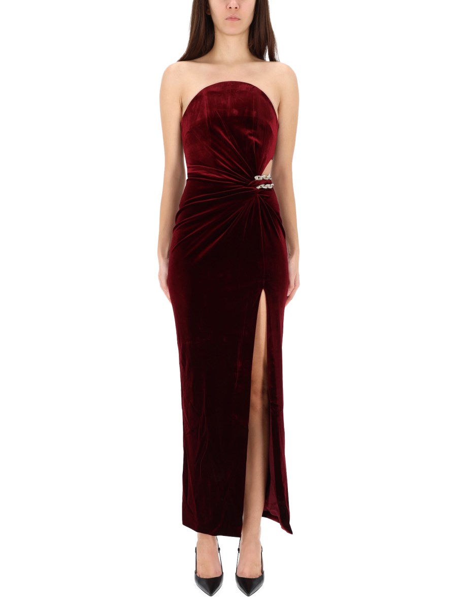 LONG VELVET DRESS WITH LEG SLIT