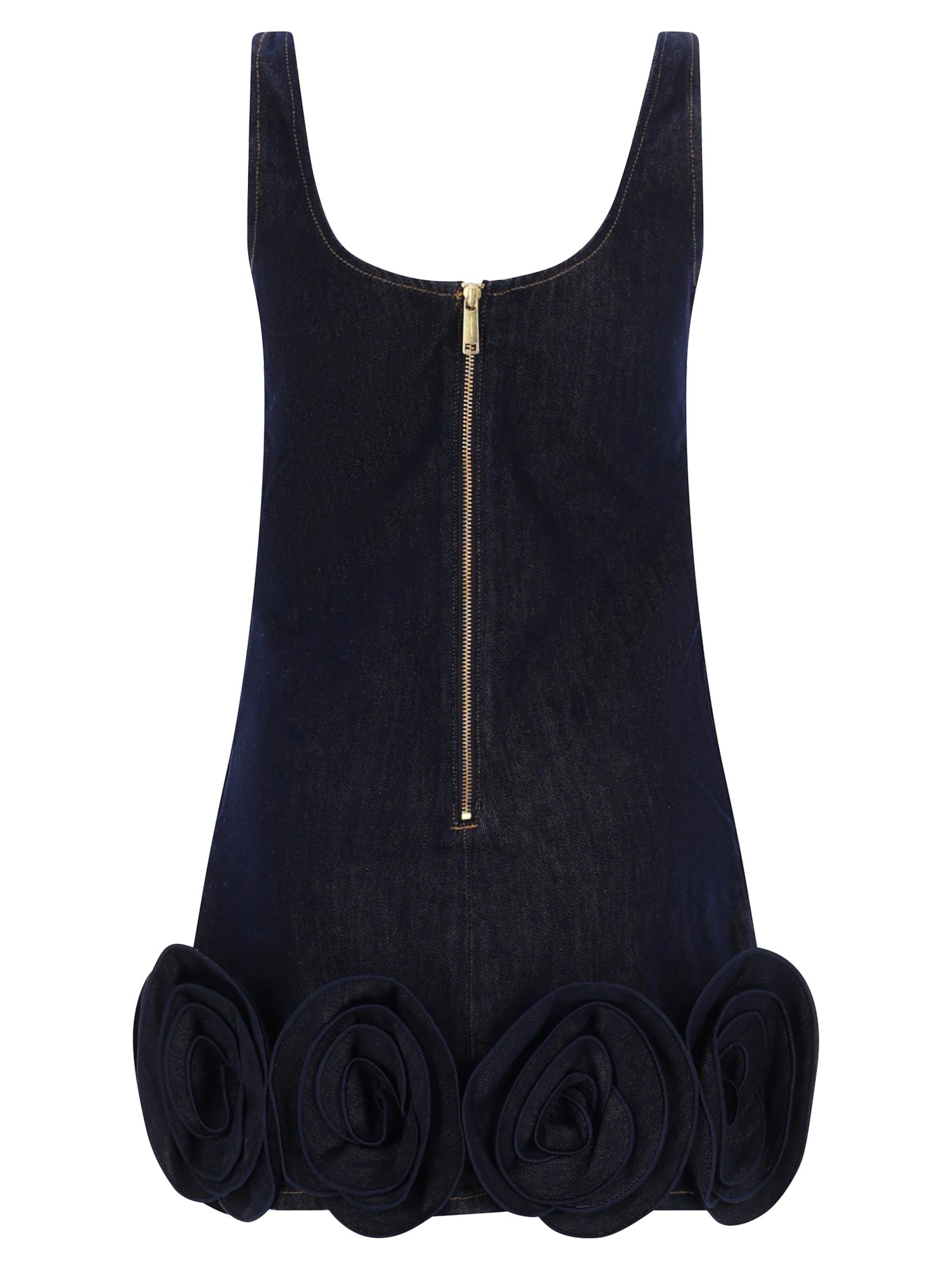 COTTON DENIM MINI DRESS WITH 3D FLORAL DETAILS
