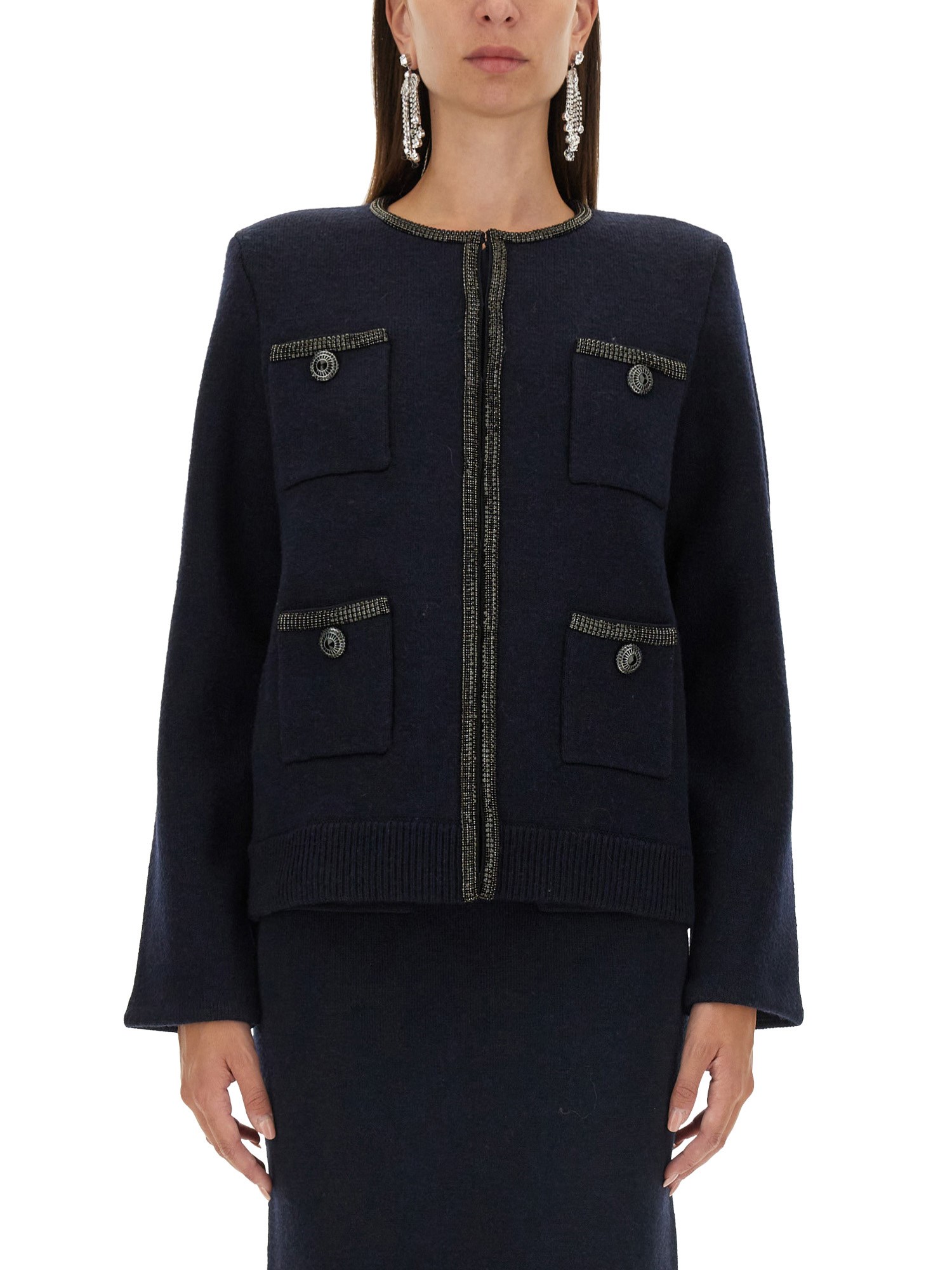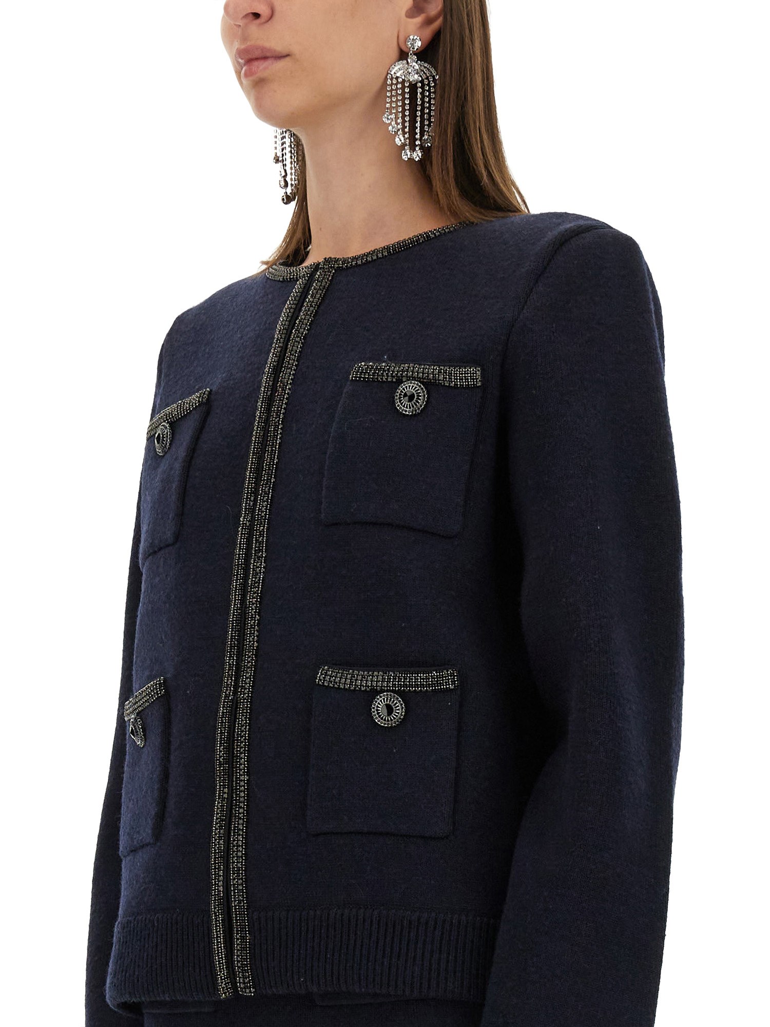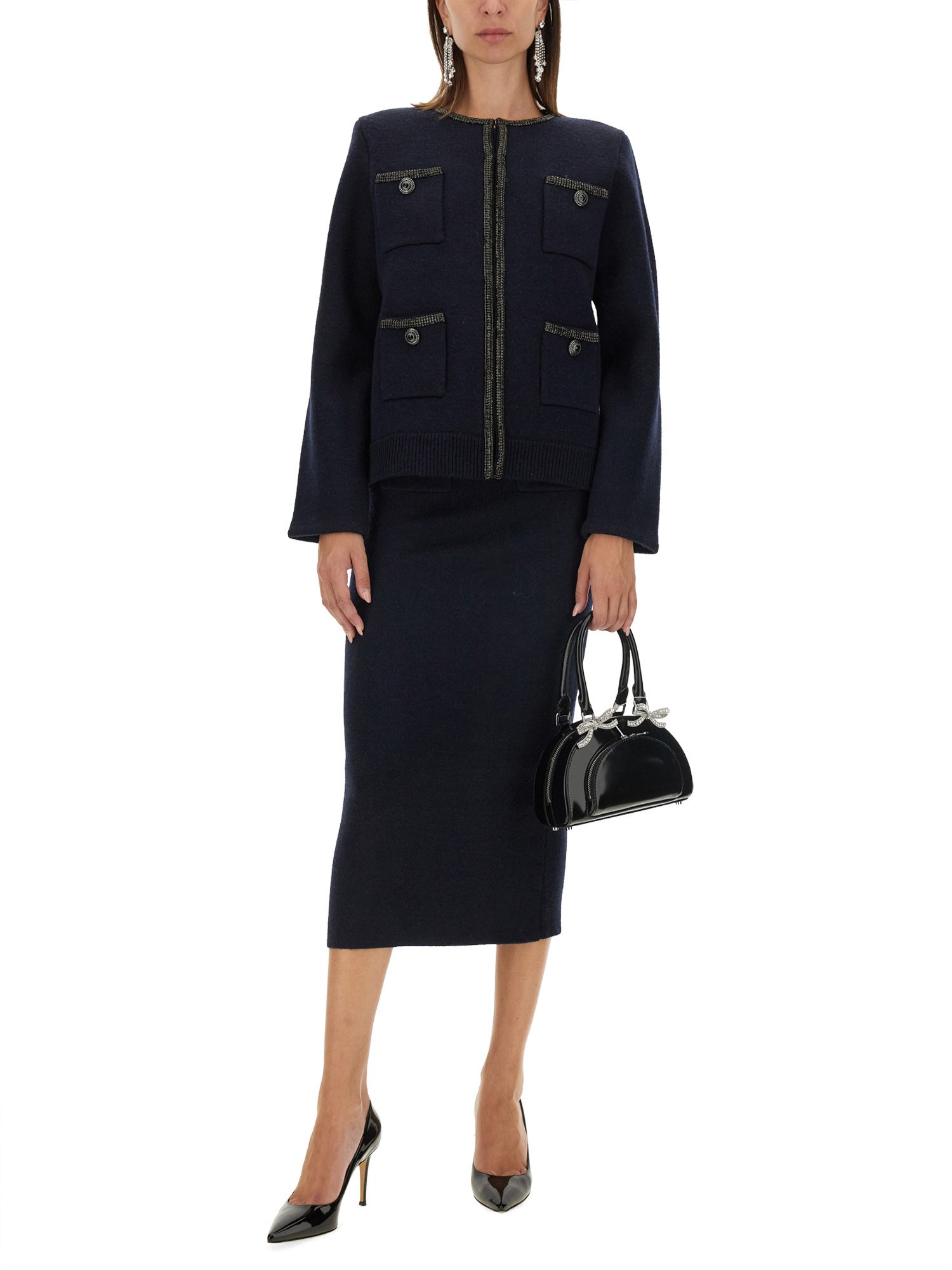 This knitted cardigan from Self-Portrait combines elegance and comfort, featuring a sophisticated design that enhances any wardrobe. Crafted from high-quality materials, it offers a soft texture and a flattering fit, making it ideal for both casual and formal occasions. The intricate knit pattern adds a touch of uniqueness, while the versatile color options ensure it can be easily paired with various outfits. Elevate your style with this essential layering piece that embodies contemporary fashion.