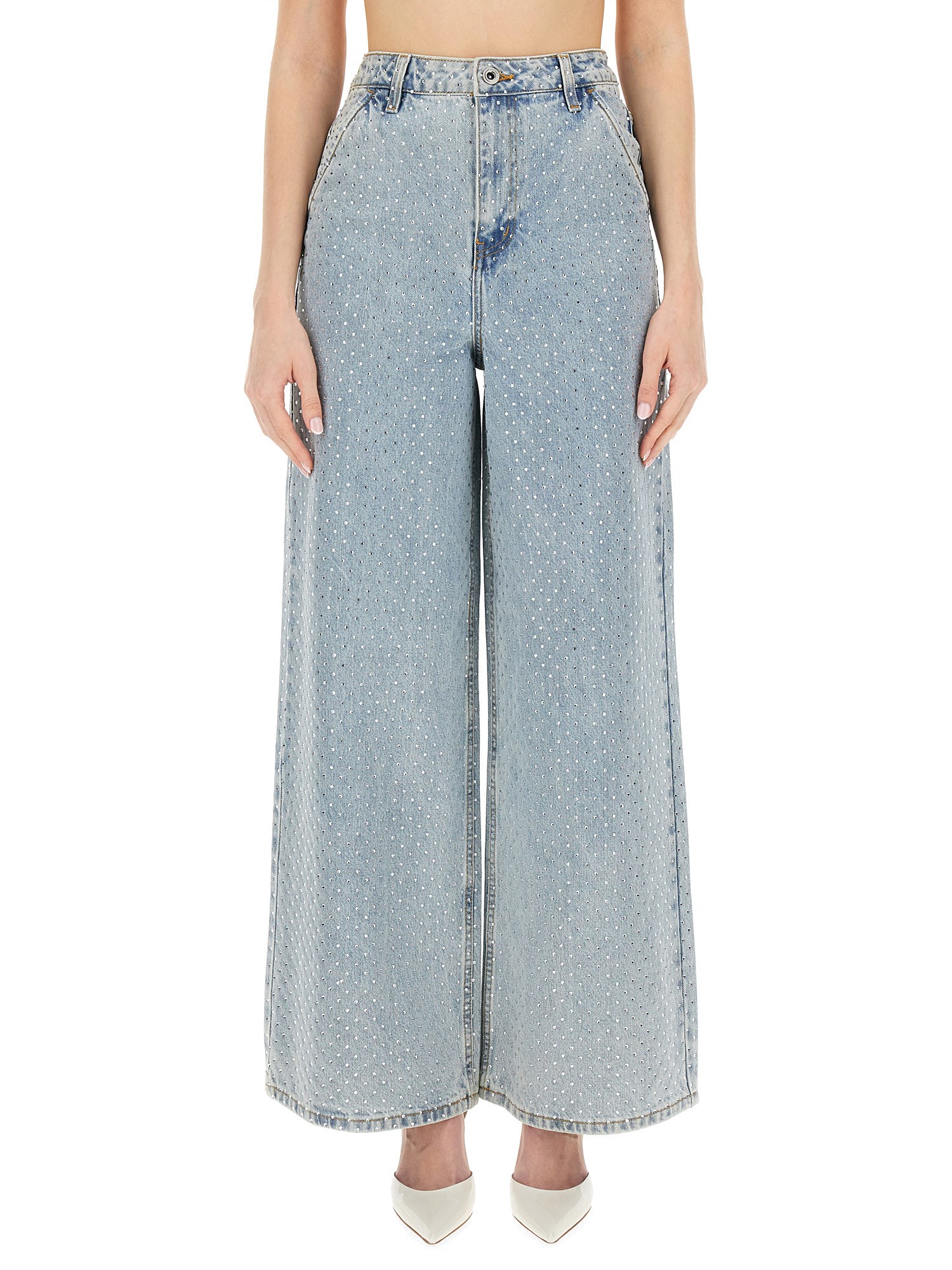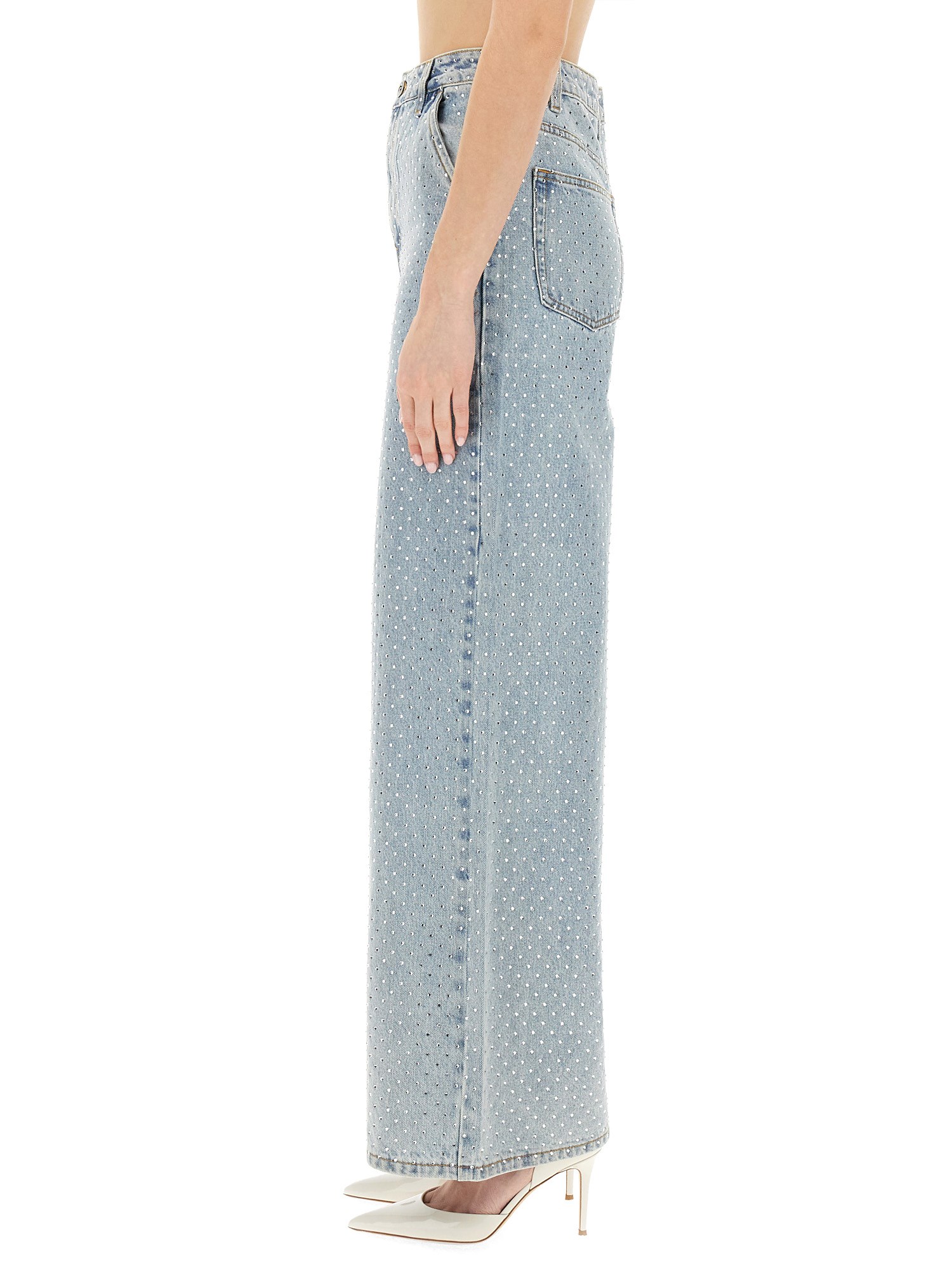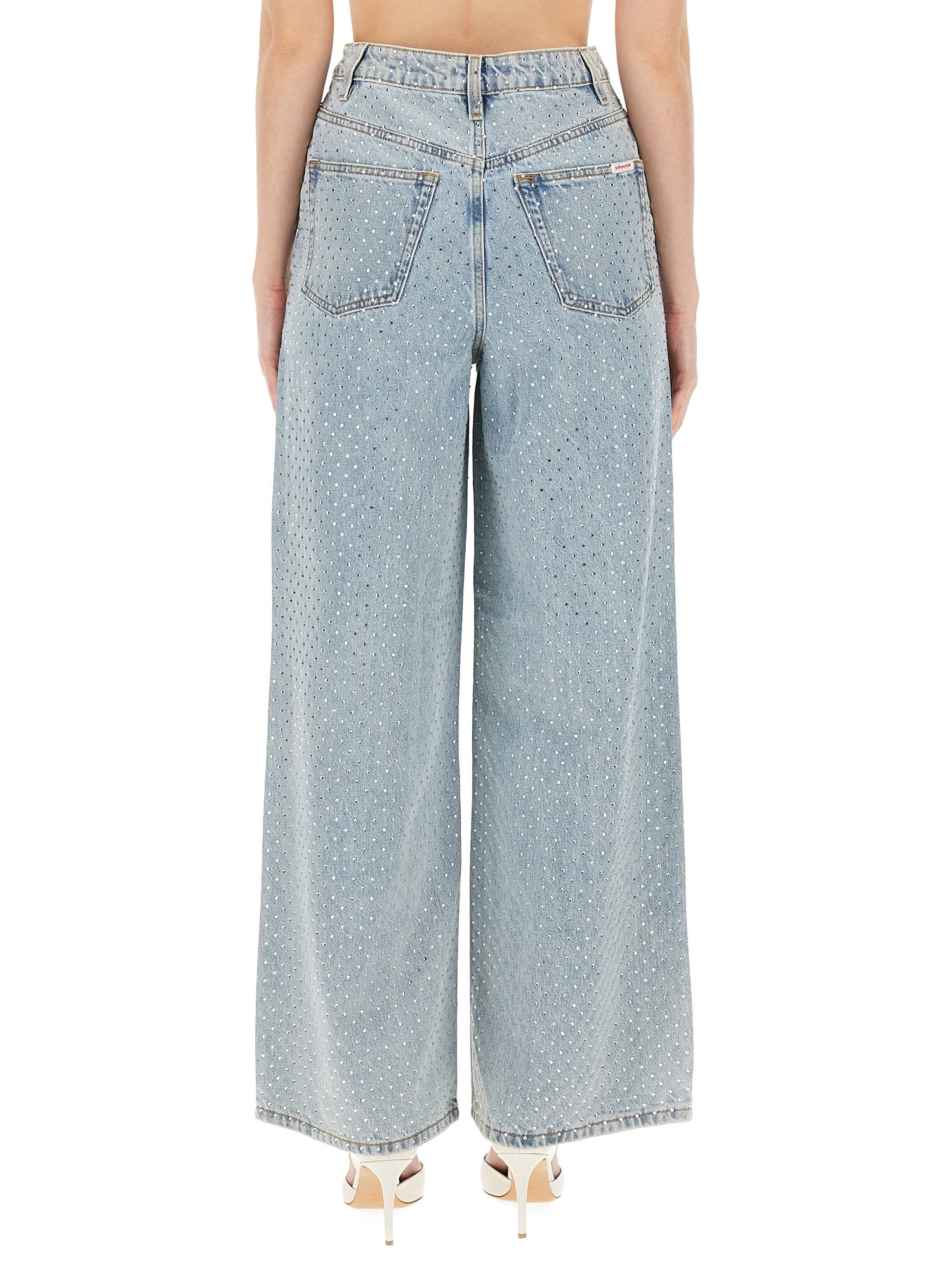 These jeans from Self-Portrait are designed to provide both comfort and a fashionable look that will effortlessly take you from day to night. The wide leg silhouette offers a modern twist to the classic denim jeans, giving you a trendy and chic appearance. Made from high-quality and durable denim fabric, these jeans are built to last. They provide a comfortable fit with just the right amount of stretch, allowing you to move freely throughout your day.