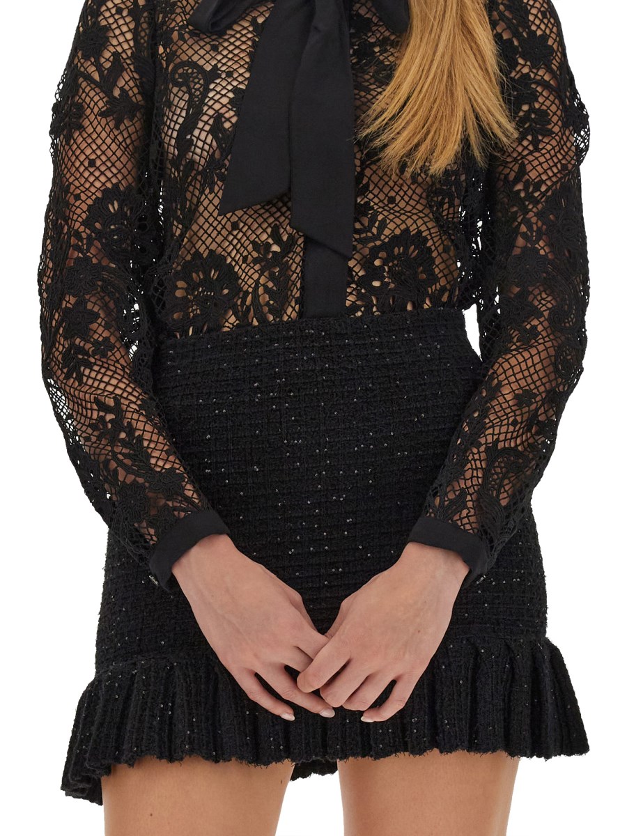 This top adds a polished accent to any ensemble with its decadently feminine feel. The pussy bow necktie brings a playful retro accent, whilst our signature lace dishes up sheer excitement. Pair it with denim for a casual weekend look or wear it with a pencil skirt to your next big work event.
