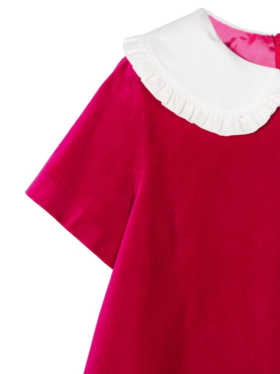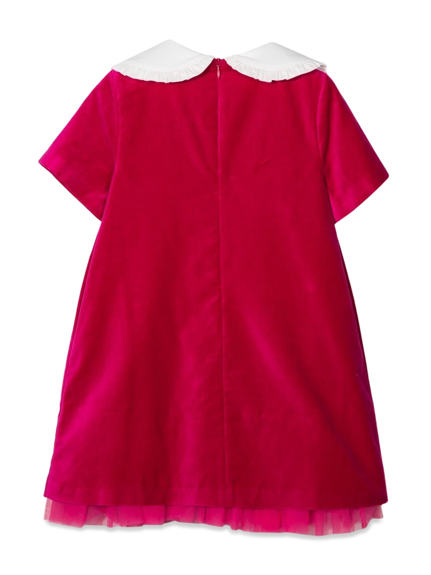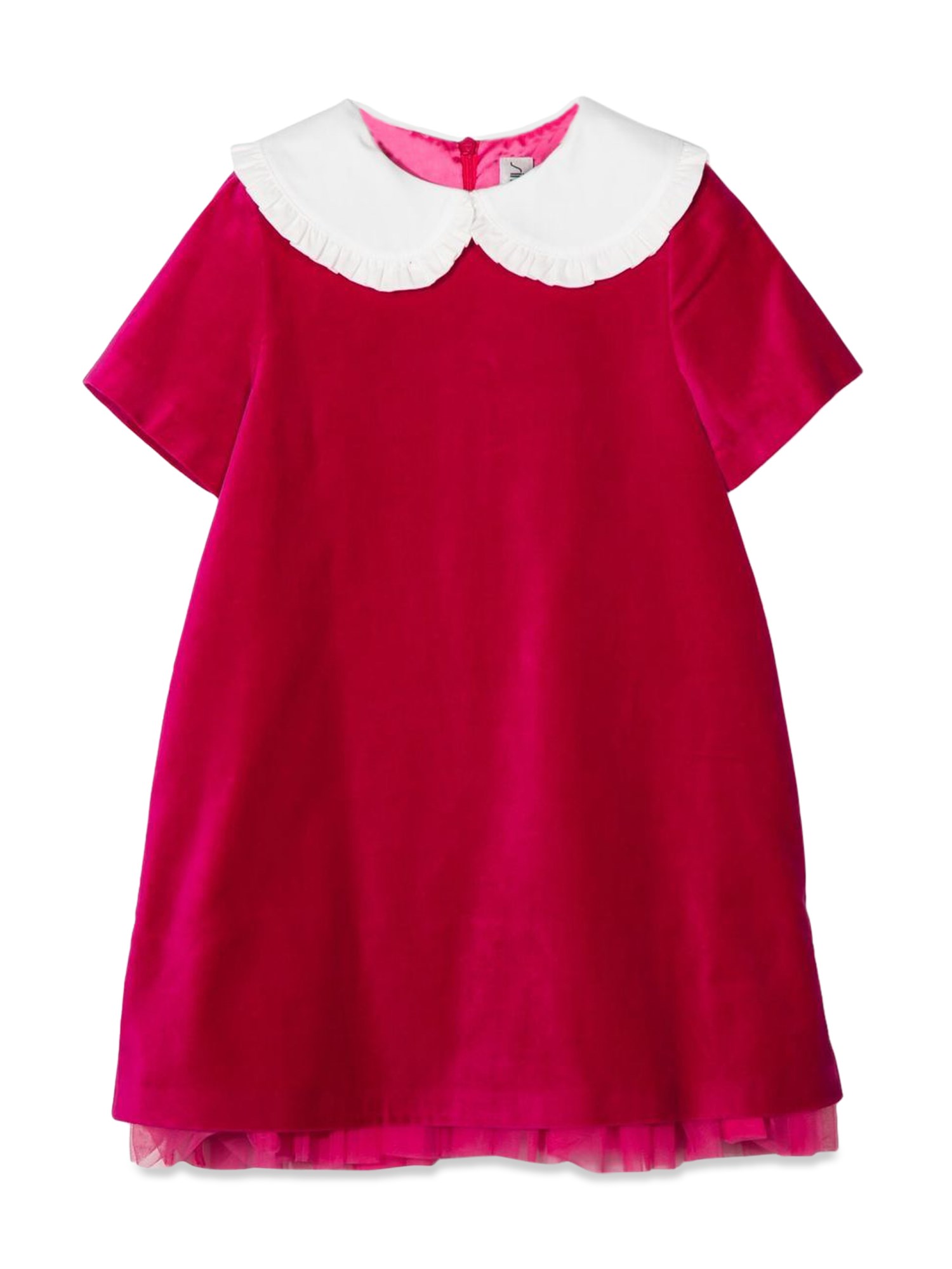 The red, short sleeve, high-collared dress from Simonetta is a classic piece for any young lady's wardrobe. The short sleeves, which are slightly flared, will keep your daughter's arms comfortable and cosy. The loose, wide collar is a stylish way to hide those chubby cheeks and little ears. The dress is made of a cotton blend with a hint of stretch.