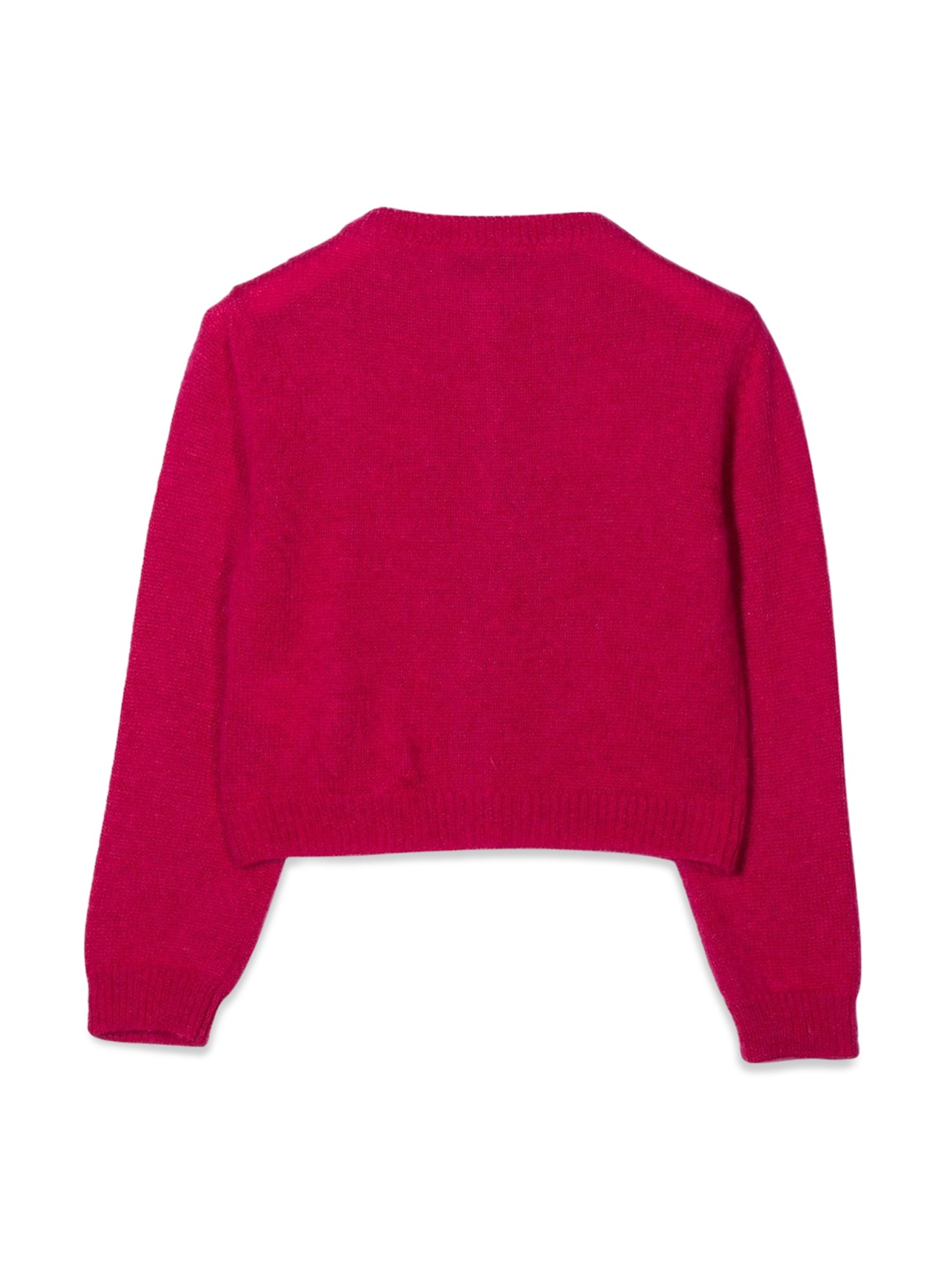 This wool-blend cardigan from Simonetta is a button-up style that is both comfortable and easy to wear. The cardigan has a generous ribbing that is covered in smooth mohair, which will keep you cosy on cool days. The buttons down the front of the cardigan are made of metal, and the sleeves are full, but not too long.