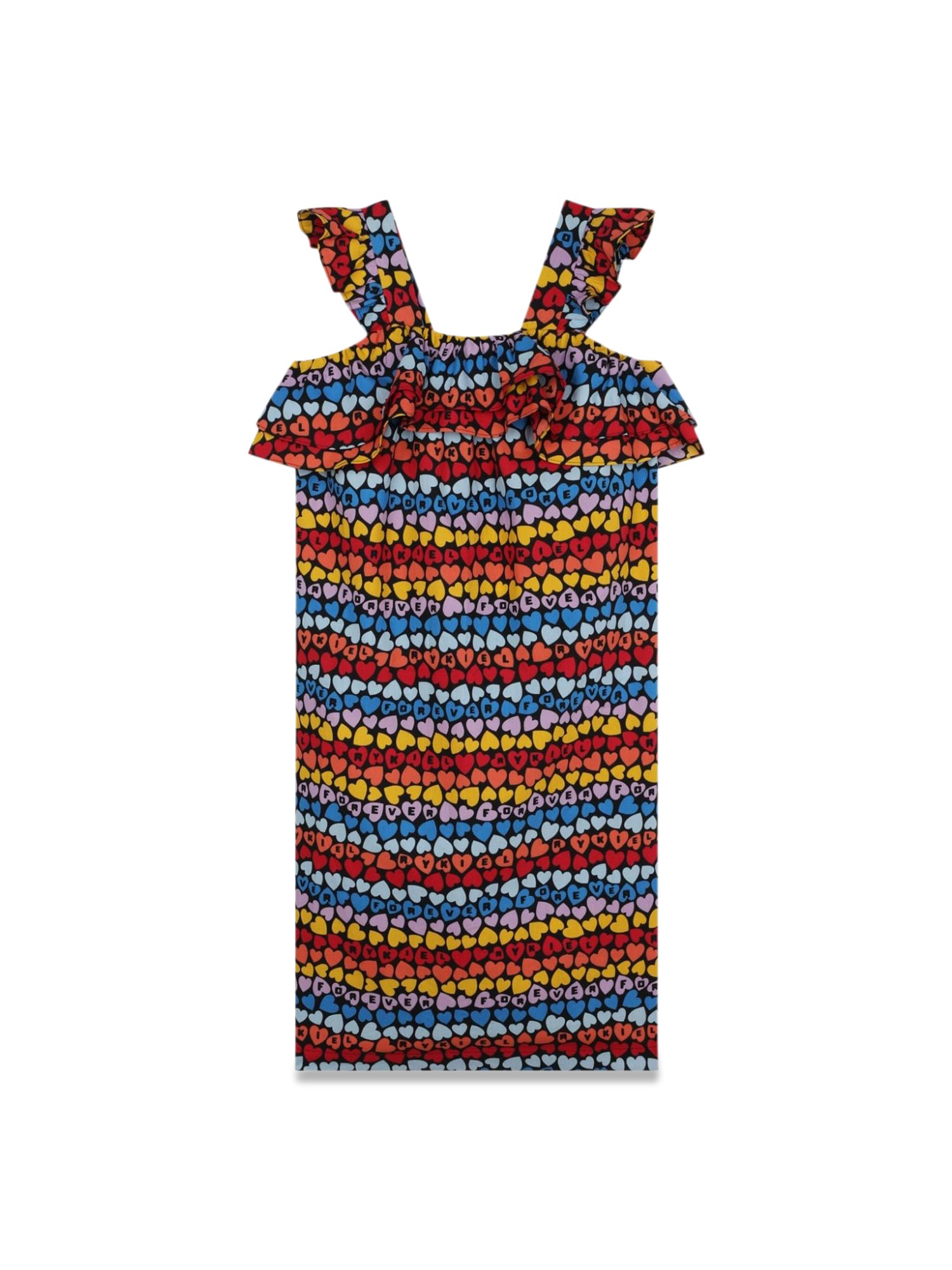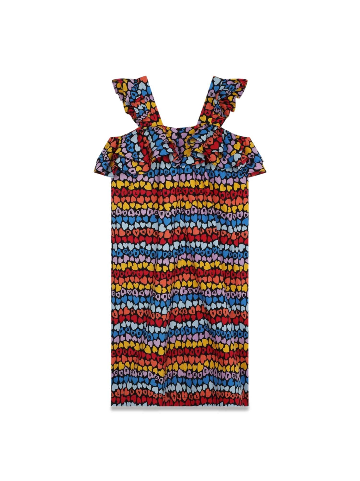 This dress from Sonia Rykiel offers both comfort and style. The vibrant multicolour stripes add a playful touch, making it suitable for any occasion. With its lightweight and breathable material, your child can move freely and stay cool all day long. The dress features a classic design with a round neckline and short sleeves, ensuring a timeless look.