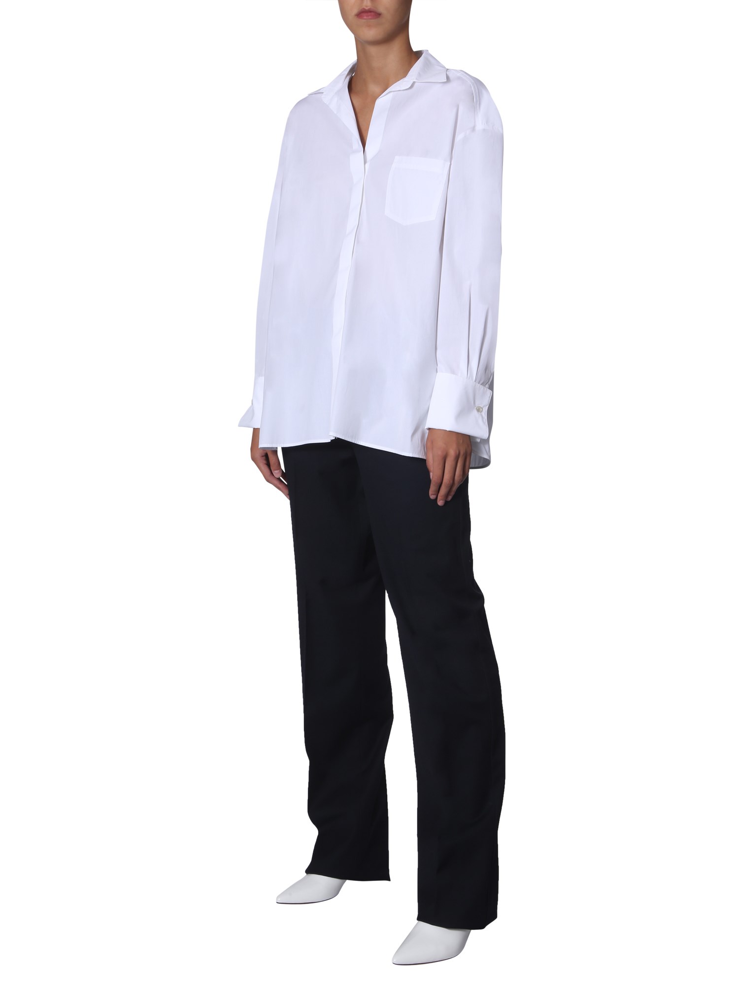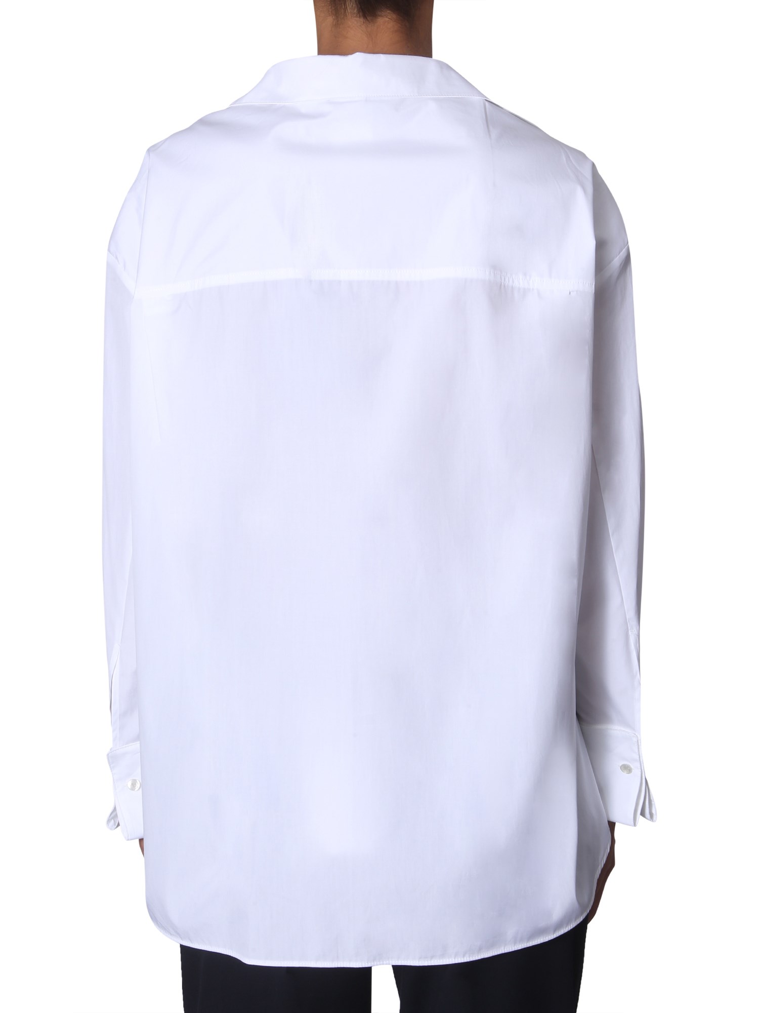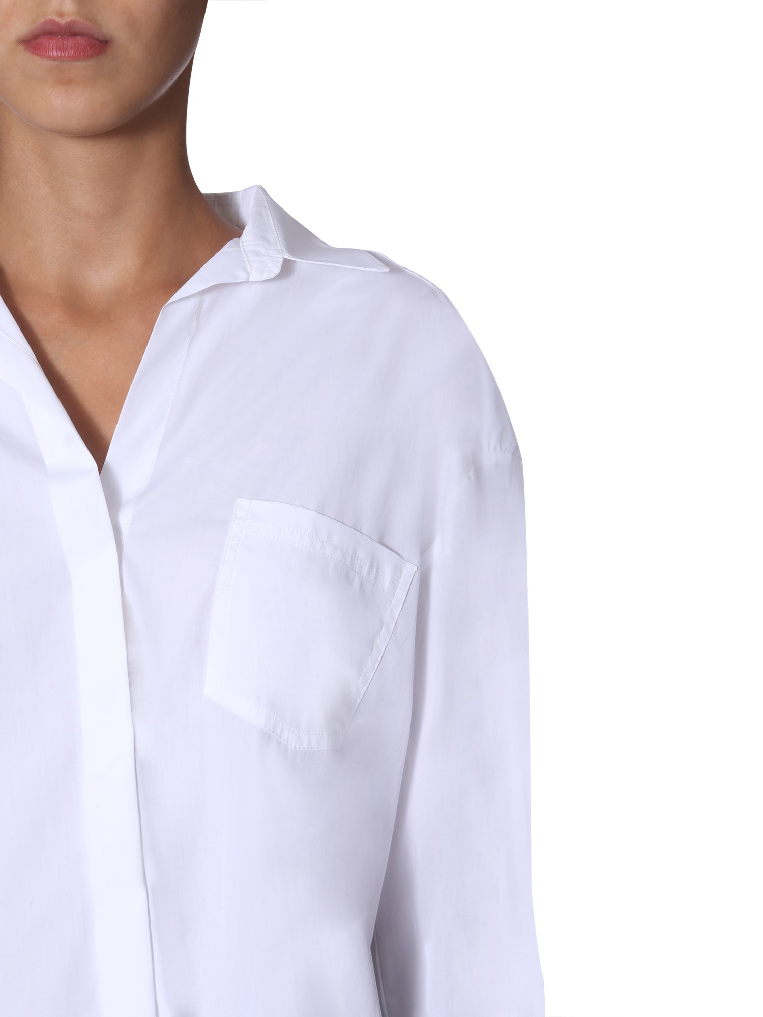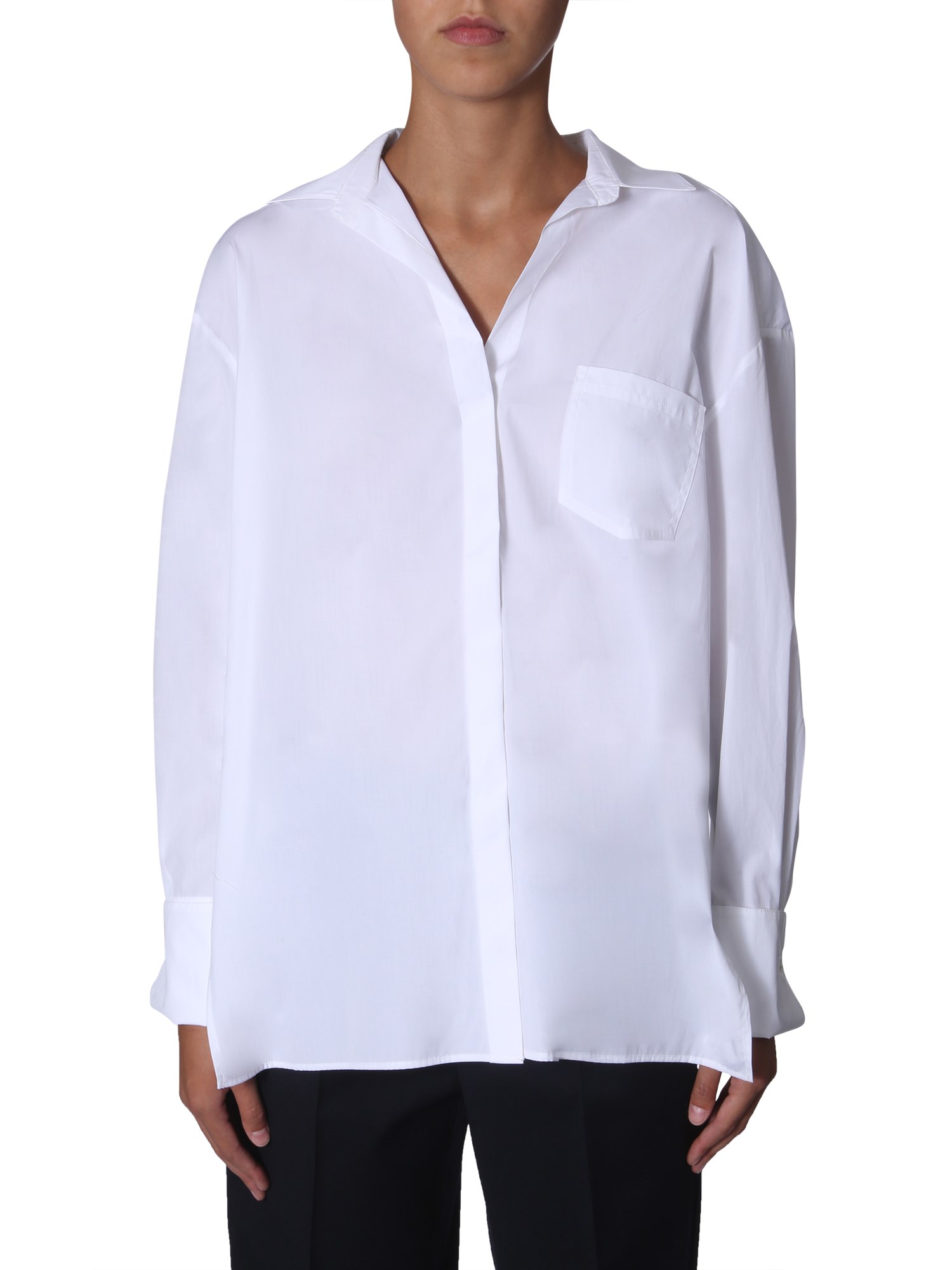 Simple and formal, this "rise" shirt from Sportmax Code will give a fine upgrade to your wardrobe. This plain shirt is made of 100% cotton fabric that stays wrinkle-free for a long time. Cut to an oversize-fit, the shirt has V-neck and button-down closure. Its light colour scheme and subtle design make it apt for all the formal occasions.