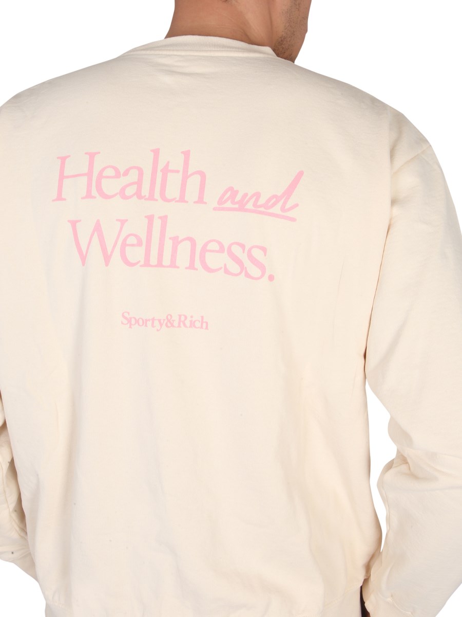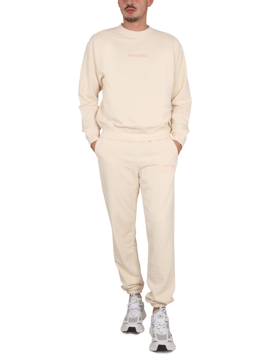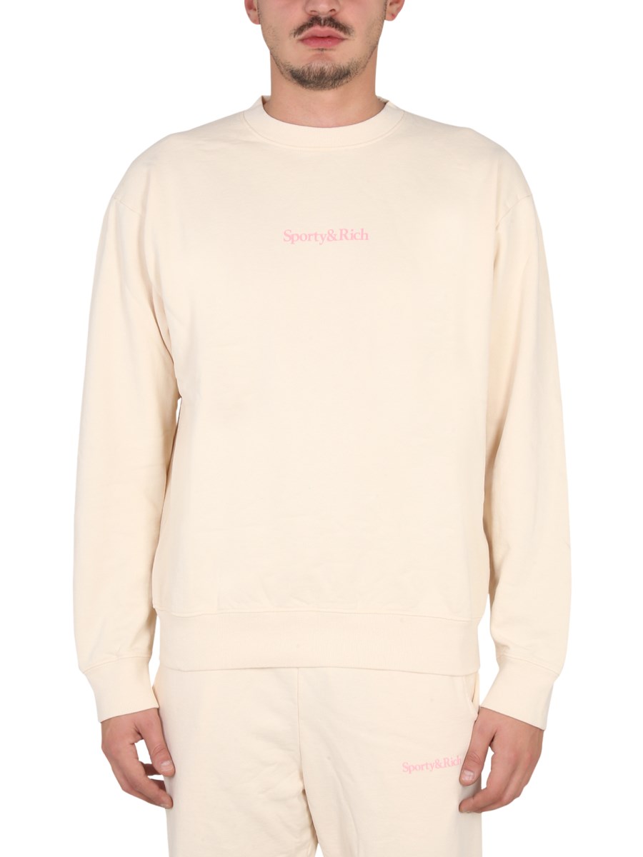 The soft and warm sweatshirt from the house of Sporty & Rich is perfect for staying cosy on a chilly night. It has a crew neckline, long sleeves, and a straight hem. The ribbed detailing on the collar, cuffs, and bottom keeps you warm. The pullover has a logo print adorning the front.