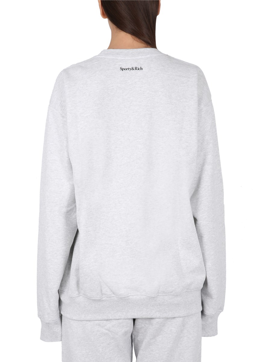 Your search for a stylish, comfortable, and affordable sweatshirt from Sporty&Rich is over. Cotton is a great material for making comfortable, versatile clothes that can be worn in all seasons. You can wear it to run errands in the winter, or out on the town in the summer. This fleece sweatshirt has a front flocked logo and is a regular fit.