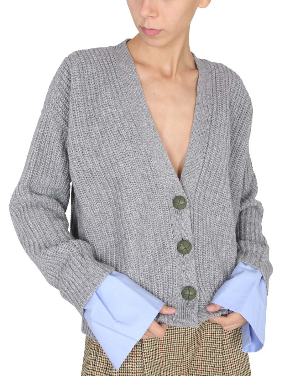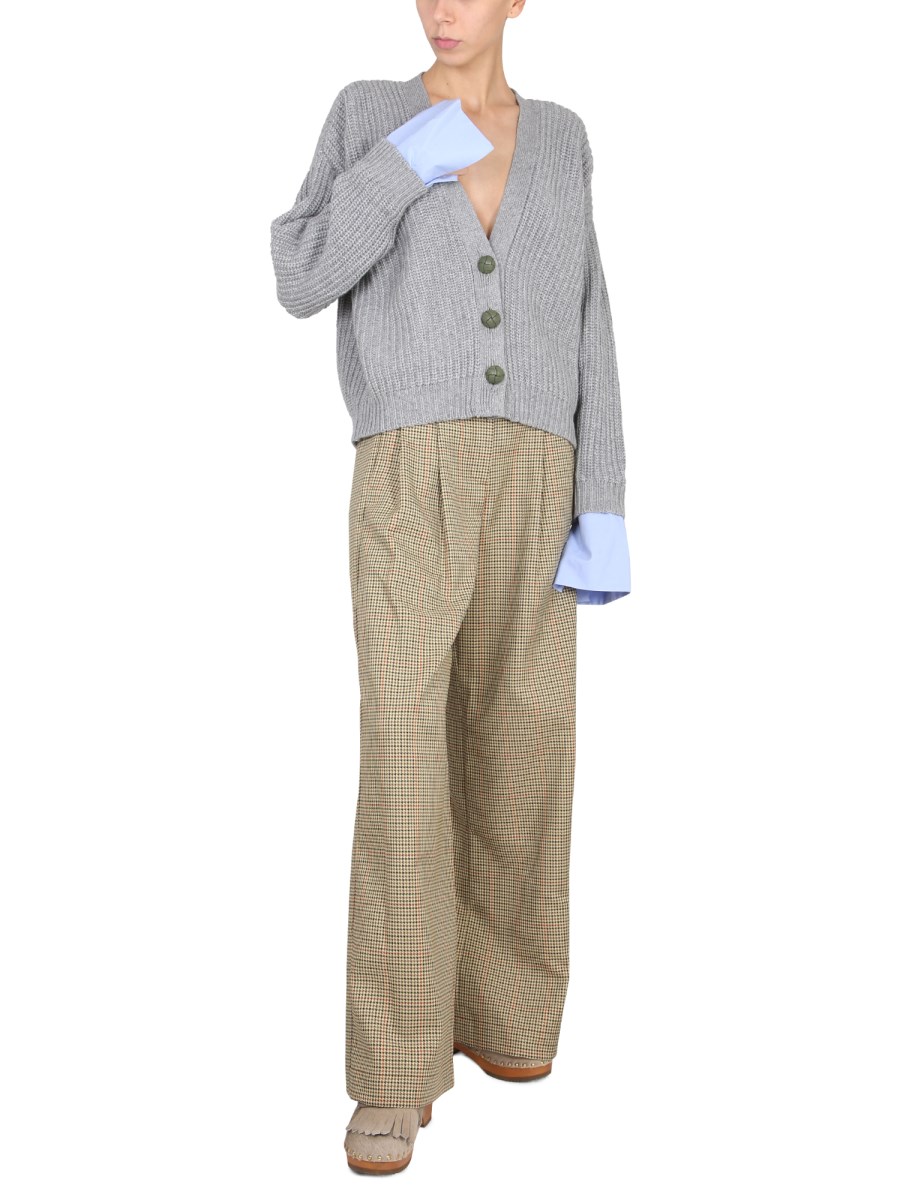 The wool “Tilda” cardigan from the house of Jejia is a soft, warm, and cosy cardigan that you can wear all year long. It's made of a stretchy wool blend fabric and features a V-neck, oversized sleeves, and front button closure. The cardigan has cuffs with check print panels. The Tilda is designed to be the perfect layering piece that looks good with anything.