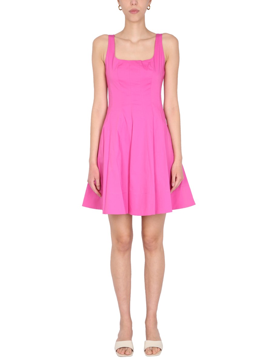 - ROUND SHOULDER- BACK ZIPPER CLOSURE- PLEATED SKIRT- UNLINED INNER- 100% COTTON- MODEL IS 180 CM TALL AND WEARS SIZE 4 US