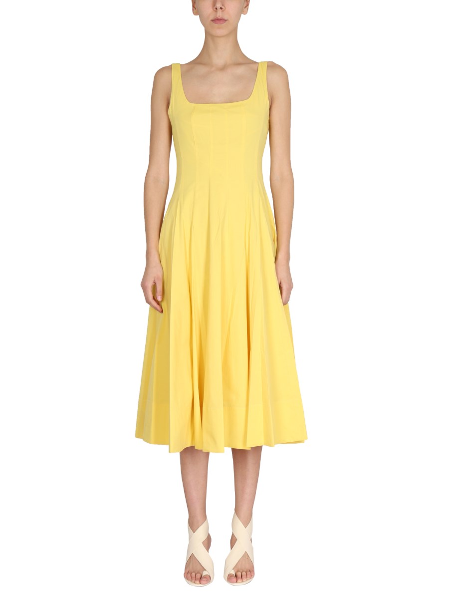- ROUND NECKLINE- BACK CLOSURE WITH INVISIBLE ZIPPER- LINED INSIDE- 98% COTTON, 2% ELASTANE- THE MODEL IS 180 CM TALL AND WEARS SIZE 2 US