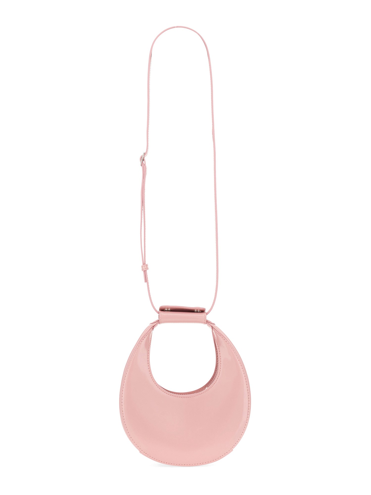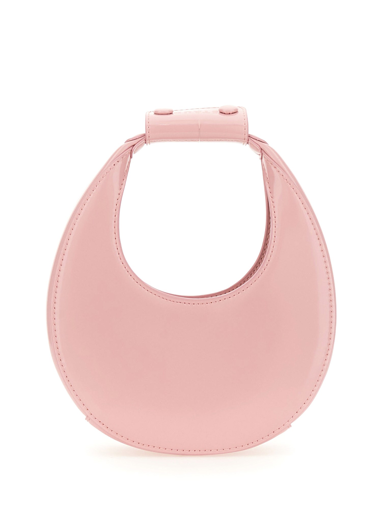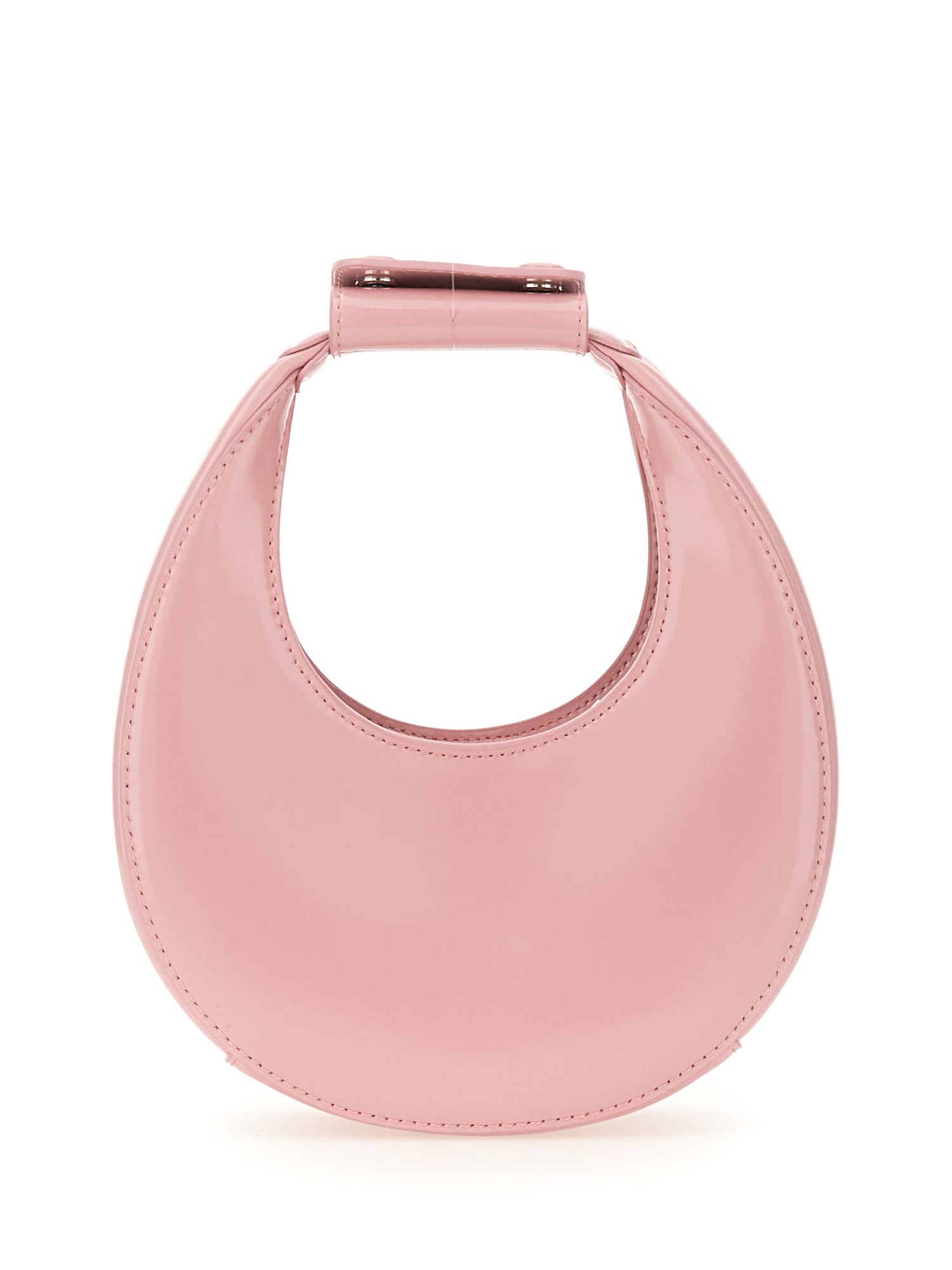 This baby pink moon-shaped bag from Staud features a single handle for easy carrying and a unique design that is both stylish and functional. The compact size makes it perfect for carrying essentials while on the go, and the soft pink colour adds a touch of sweetness to any outfit. Whether you're running errands or heading out for a night on the town, this bag is sure to become your new favourite accessory.