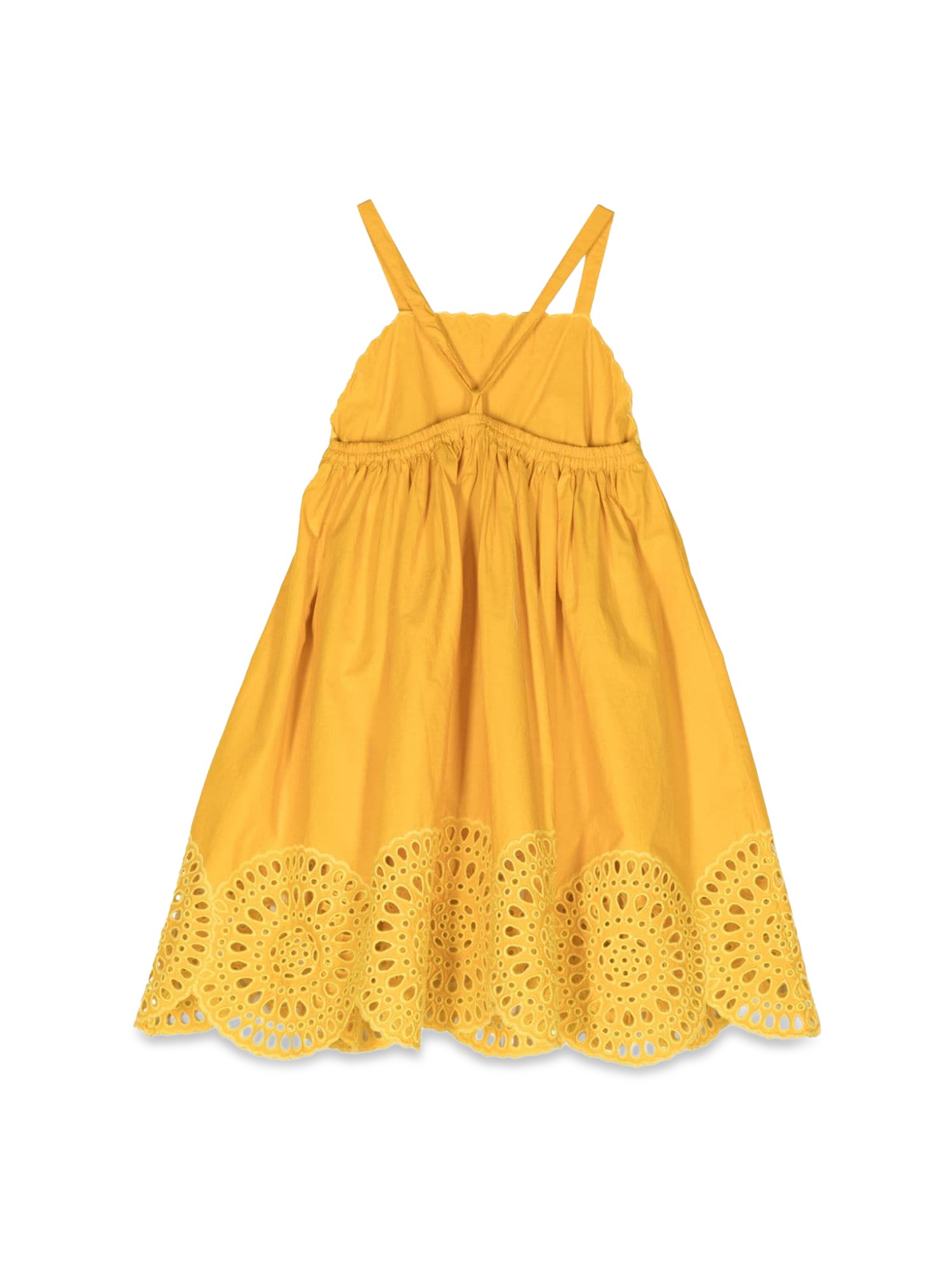 Introducing the vibrant yellow woven dress for kids from Stella McCartney, a perfect addition to your little one's wardrobe. Crafted with meticulous attention to detail, this dress showcases a woven fabric that exudes both comfort and style. The bright yellow hue adds a cheerful touch, making it ideal for any occasion. Designed by Stella McCartney, a renowned fashion designer, this dress embodies her commitment to sustainable and ethical fashion. With its playful yet elegant silhouette, this dress is perfect for your child to twirl and play in.