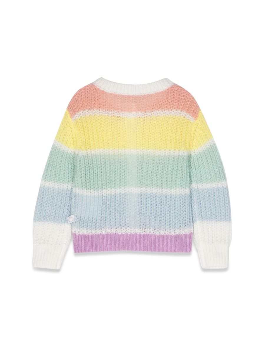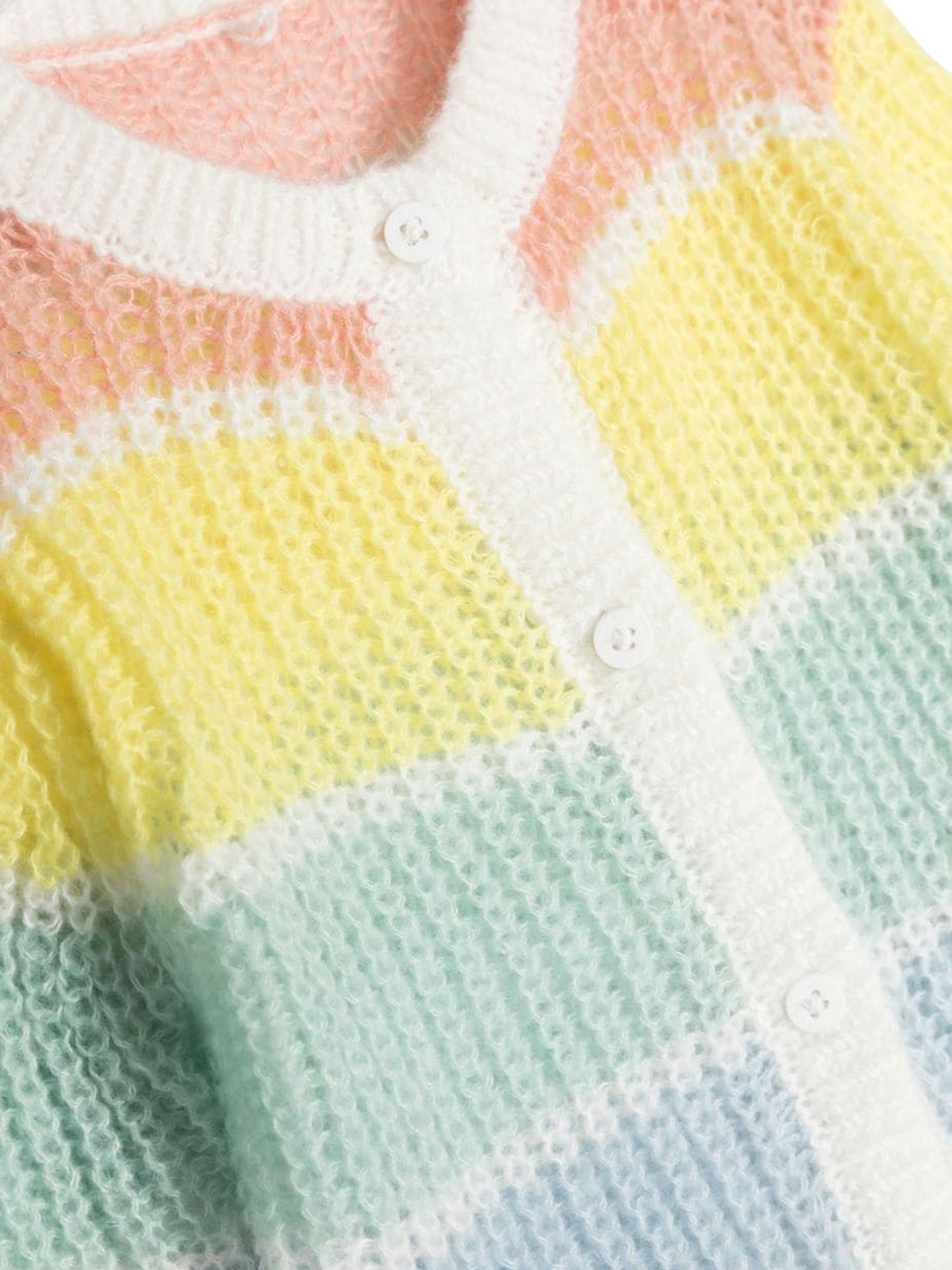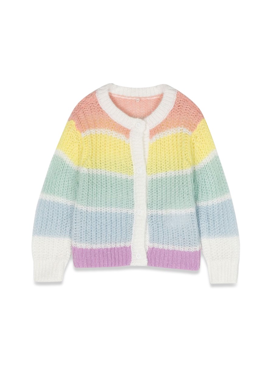 A multicolour striped polyester cardigan from Stella McCartney is the perfect winter garment. The lightweight material is ideal for layering, and the long-sleeved design is perfect for staying warm while looking chic. The full-length zip up front and elastic waistband make this cardigan easy to wear and comfortable.