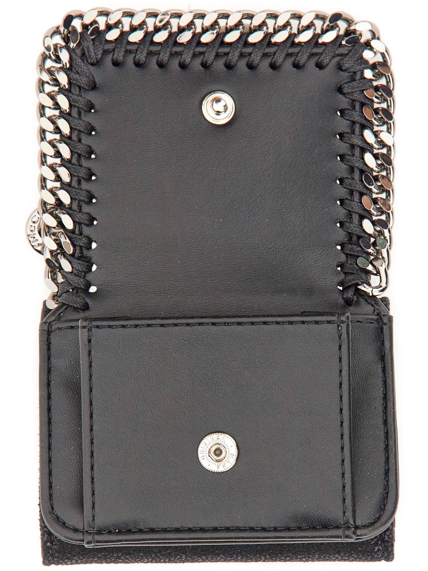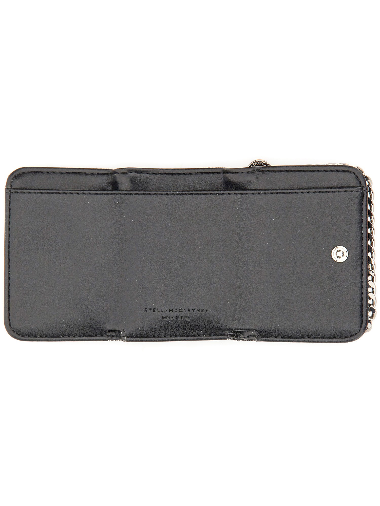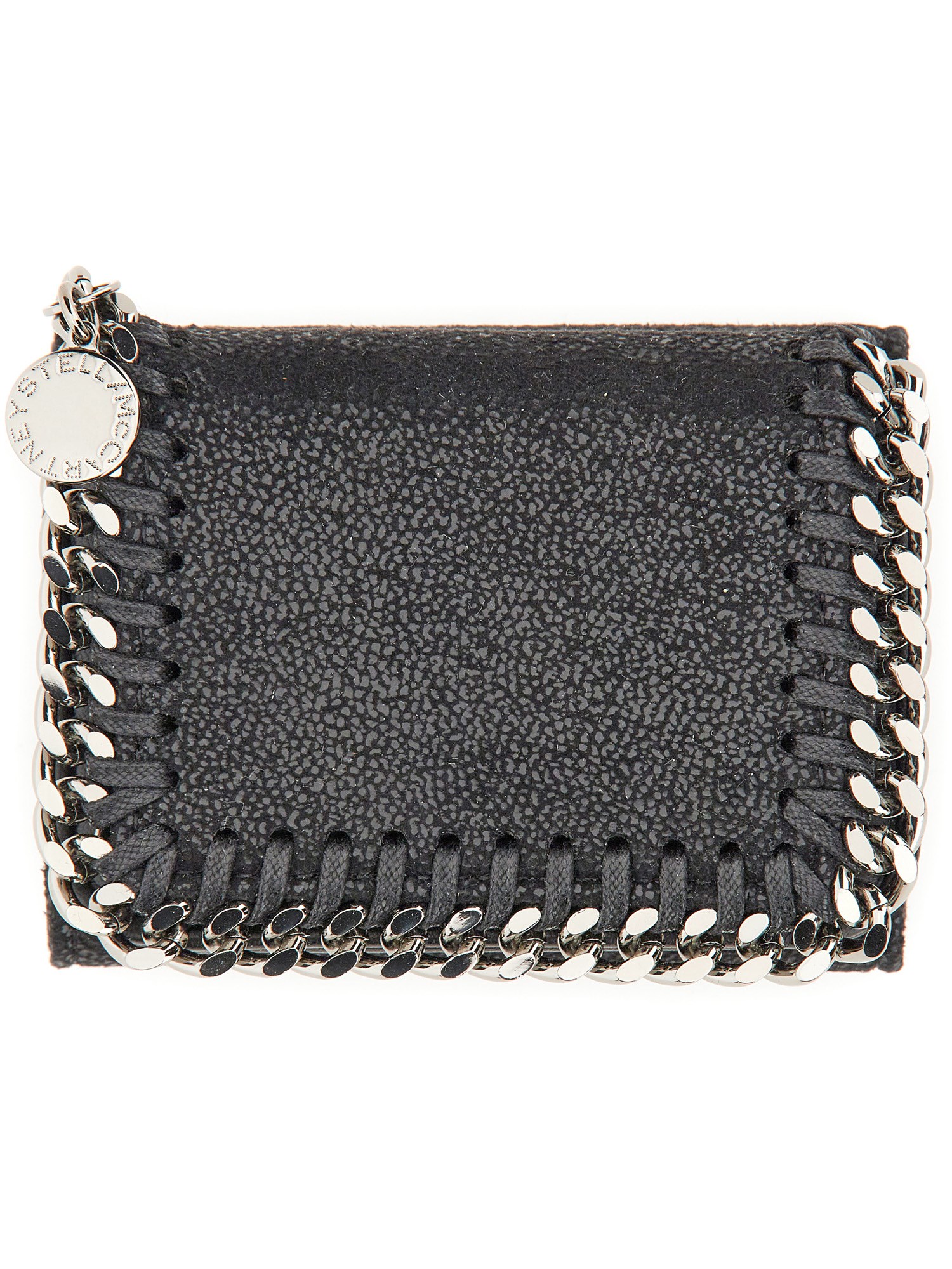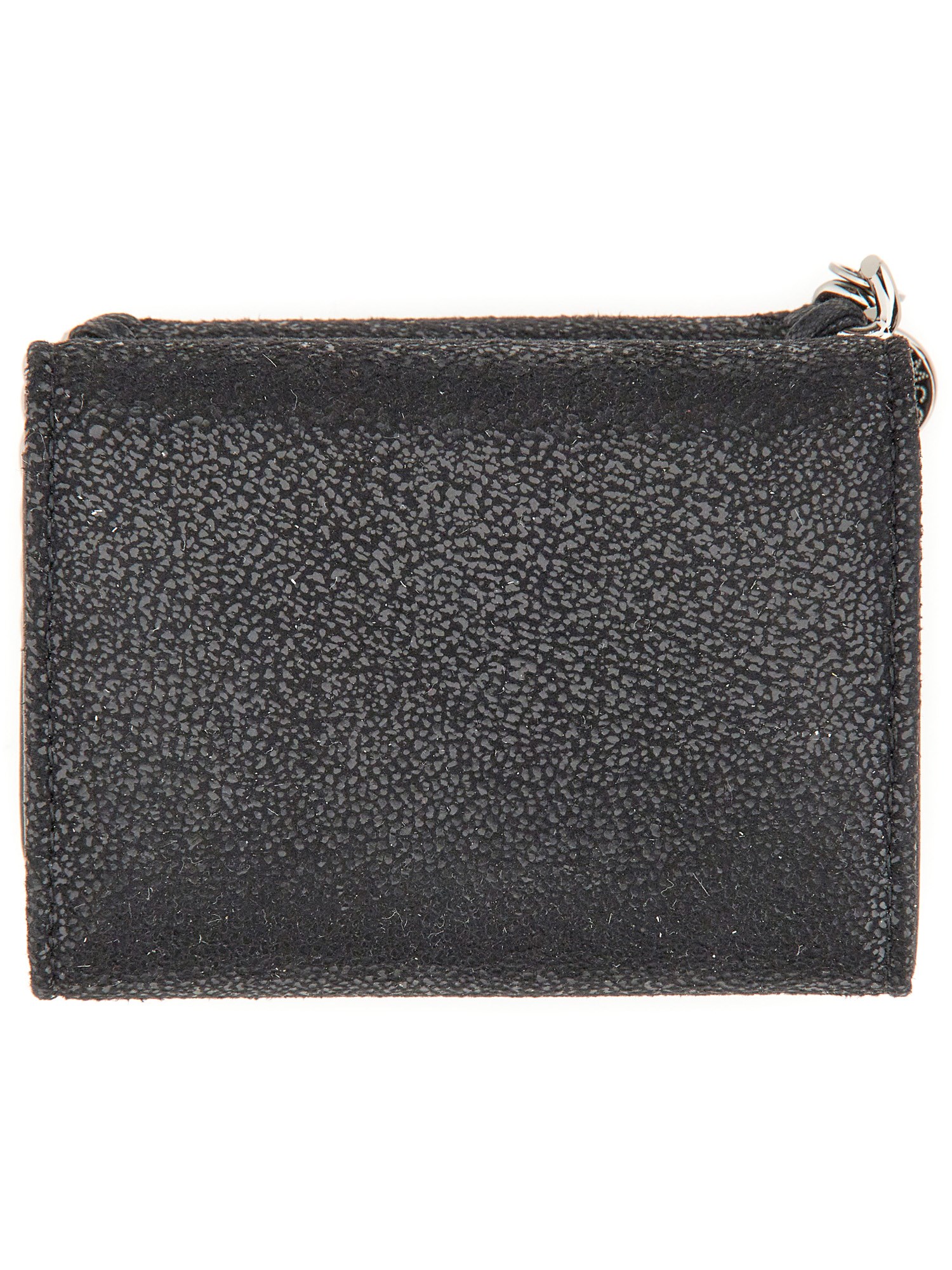 Crafted from the signature vegan Shaggy Deer fabric, the Falabella tri-fold wallet is kitted out with plenty of card slots, a coin pocket and a bills slip. It is framed with an iconic Falabella diamond-cut chain in ruthenium recycled brass and aluminium.