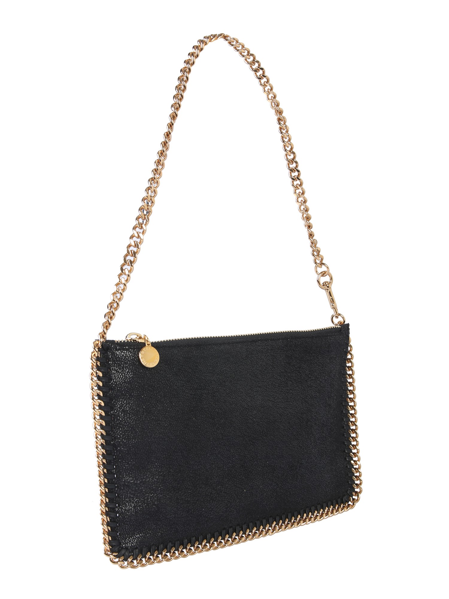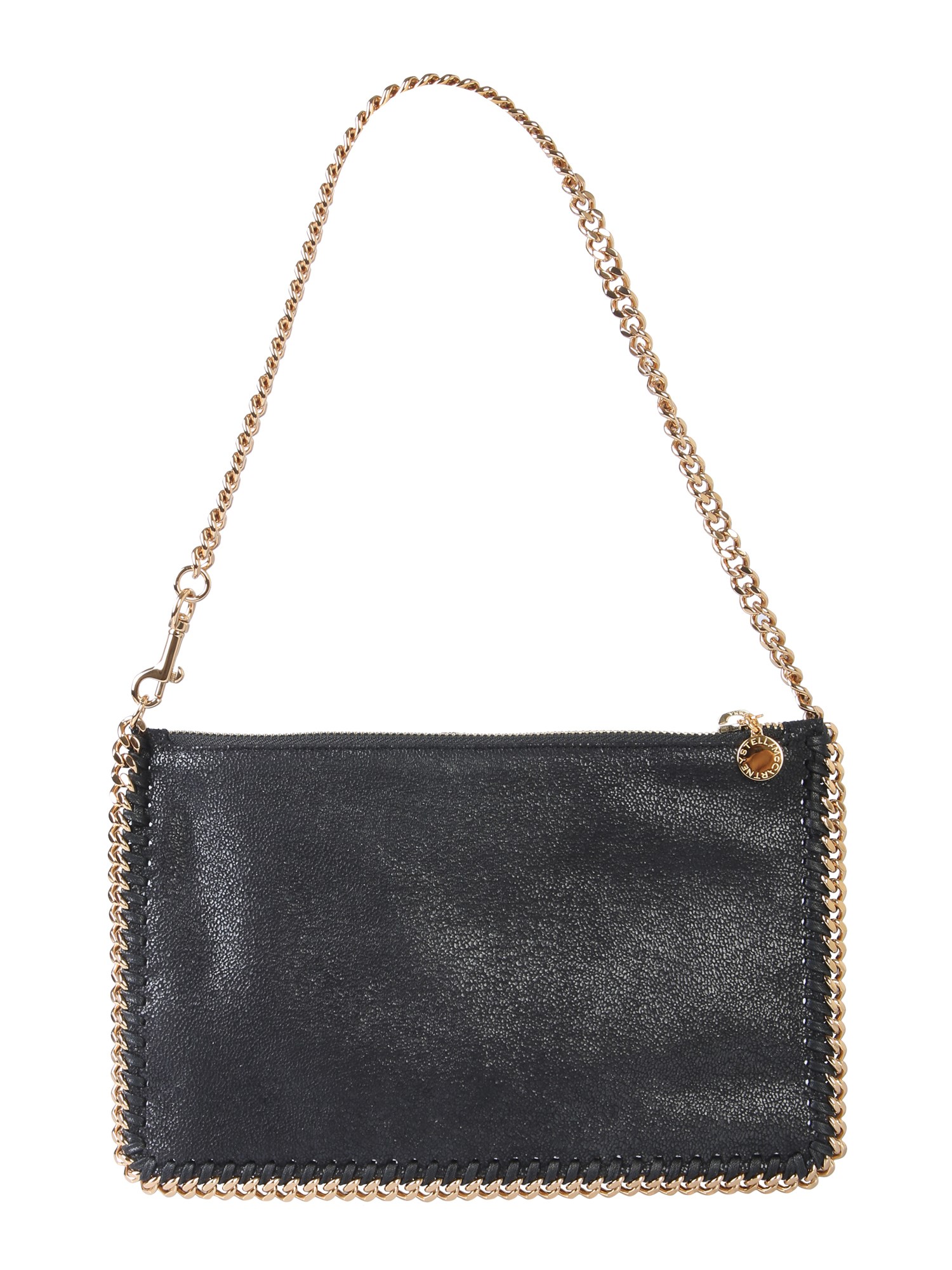 Let everyone know your amazing choice in accessories with this Falabella pouch from the house of Stella McCartney. Displaying a shiny and textured surface, the pouch will be a fine addition to your wardrobe. It comes with a chain outline around the edges that completes its stylish design. It offers ample space to keep your daily essentials that are further secured with zip closure.
