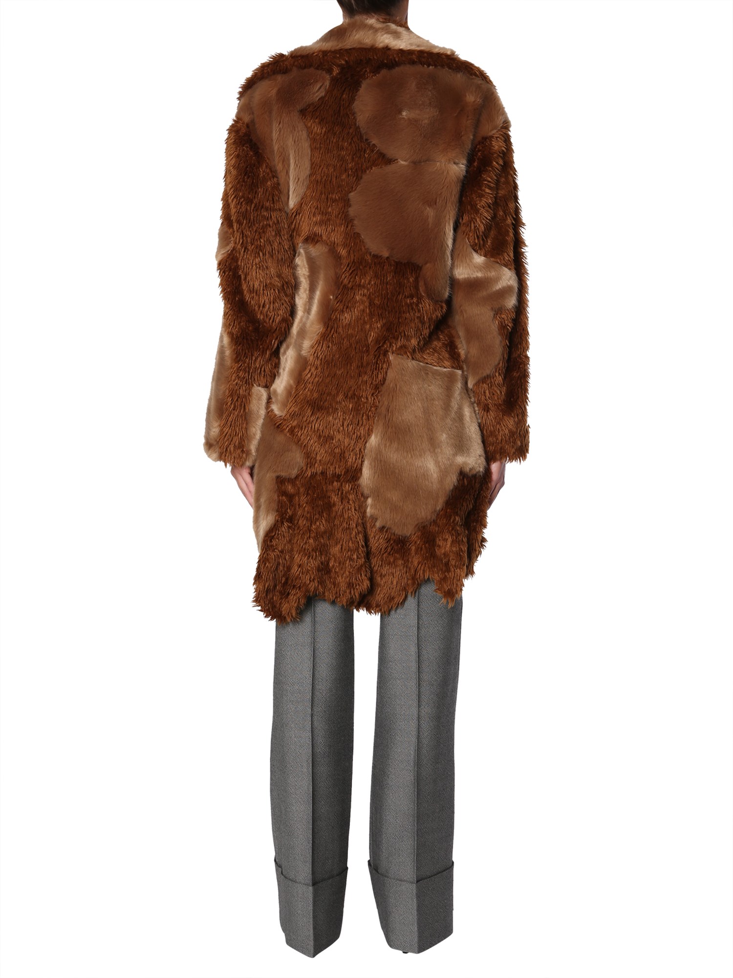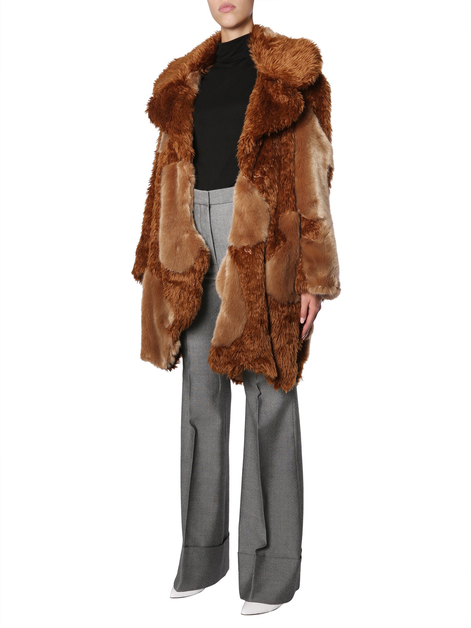 Crafted in viscose and acrylic, this faux fur coat is “the” choice for an elevated, extravagant street-style look. This Stella McCartney coat perfects its contemporary design with wide and notched lapels, panelled long sleeves, and contrasting highlighted patches all over the fur coat. This oversize winter clothing is an essential for a fashionista to stand out in the crowd.