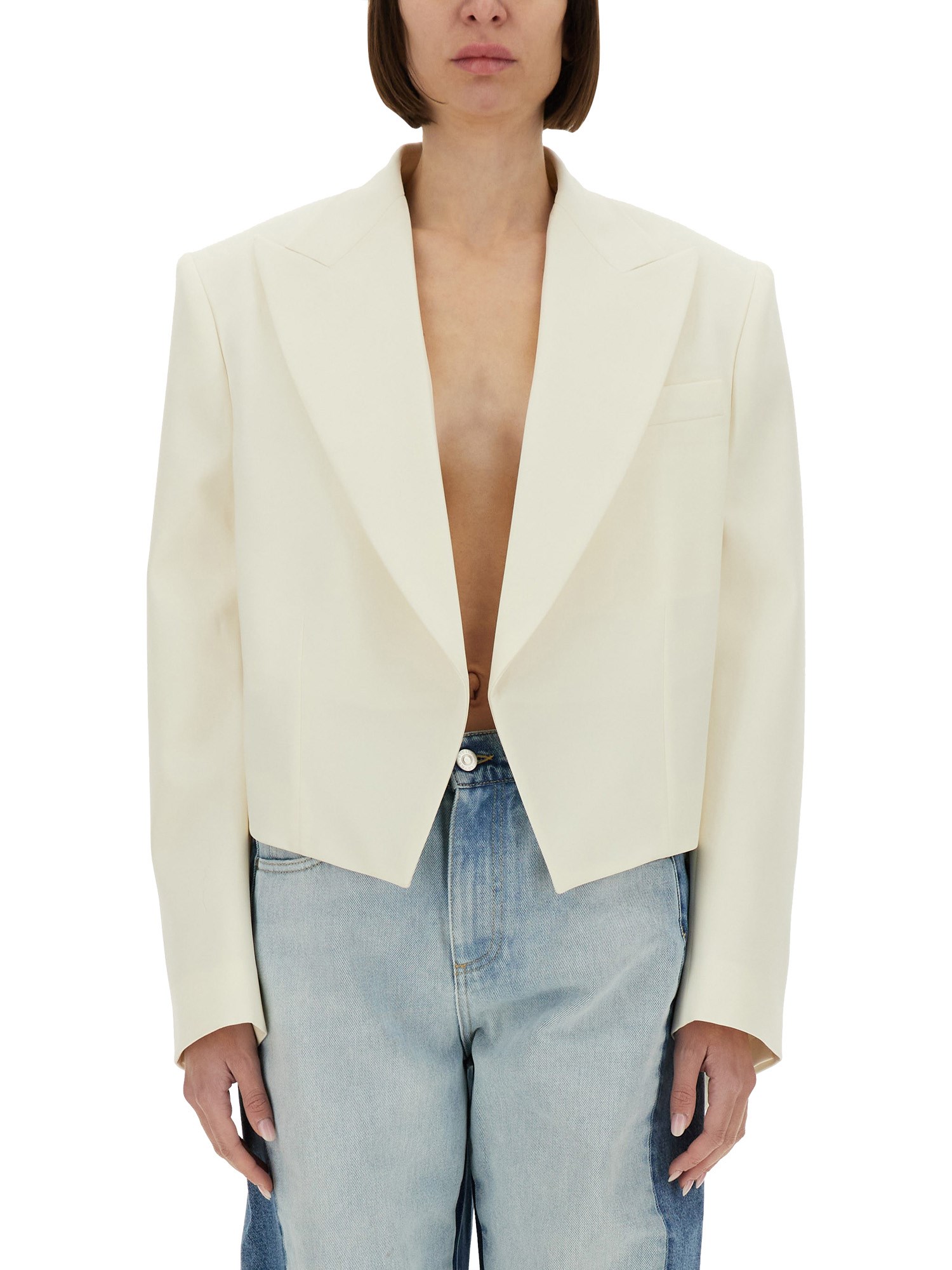 Elevate your wardrobe with the Cropped Blazer from Stella McCartney, a perfect blend of sophistication and modern style. This tailored piece features a chic cropped silhouette that flatters the figure while offering versatility for both casual and formal occasions. Crafted from sustainable materials, it embodies Stella McCartney's commitment to eco-friendly fashion without compromising on elegance. Pair it effortlessly with high-waisted trousers or a sleek dress for a polished look that makes a statement.