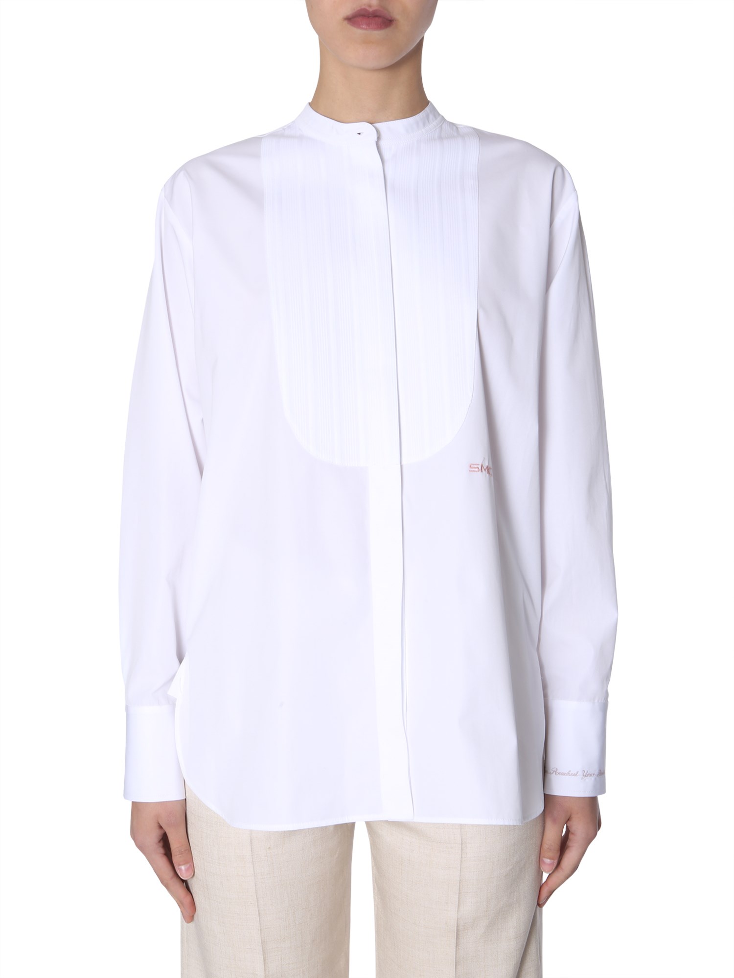This summer add this oversize fit shirt from Stella McCartney to your wardrobe. Made from good quality cotton, the shirt ensures breathability. The shirt looks simple with a plain surface and classic Chinese collar design. Its minimal features let you wear it for casual as well as official settings.